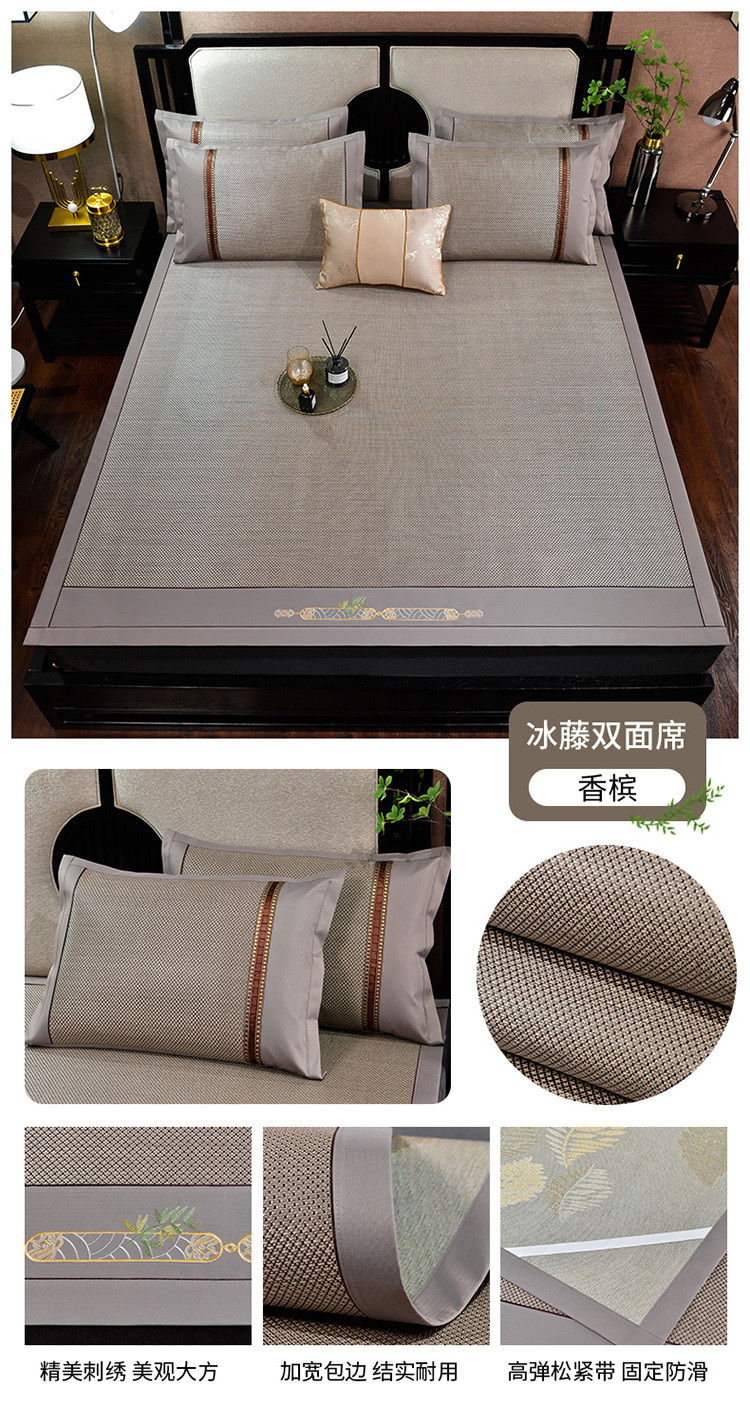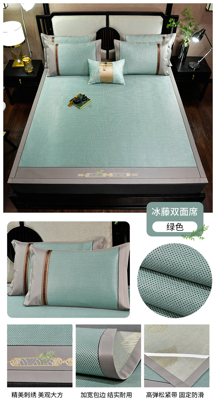 2023新款夏日冰点-冰藤双面席凉席藤席竹席冰丝席乳胶席,咖色,蓝色,绿色,香槟