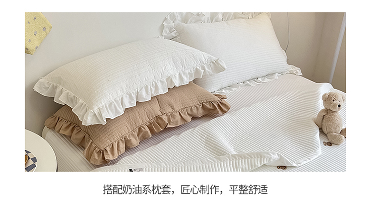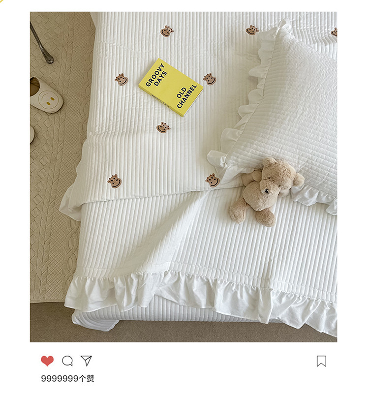 商品名称:漫调ins风韩版荷叶边水洗全棉绗缝刺绣夏被/床盖三件套牛白