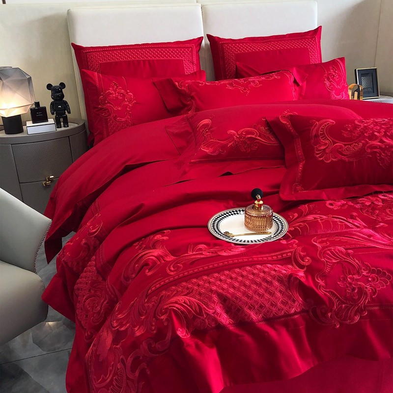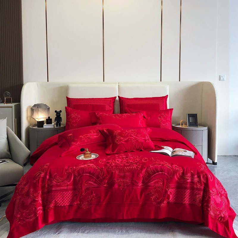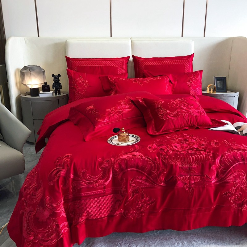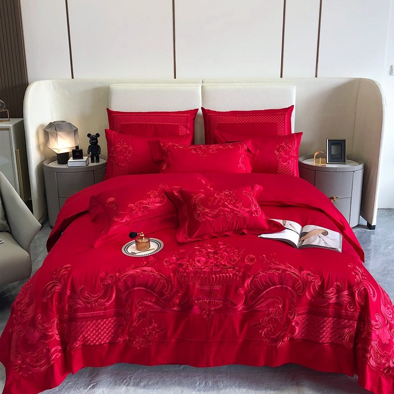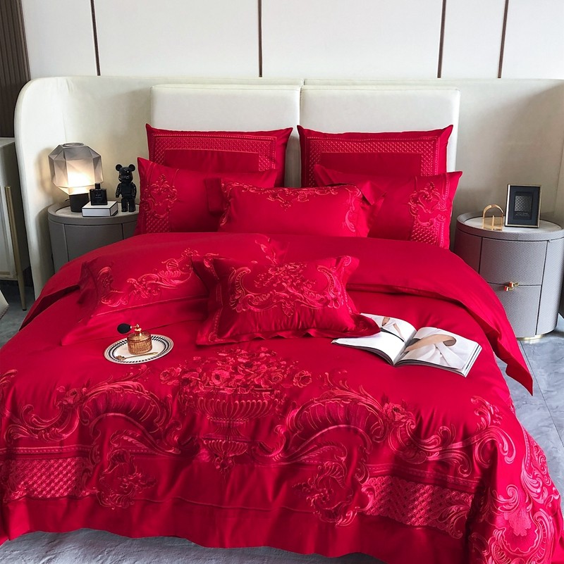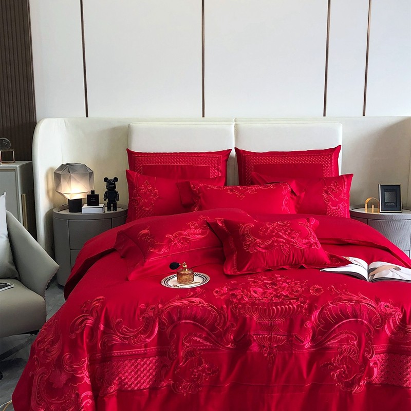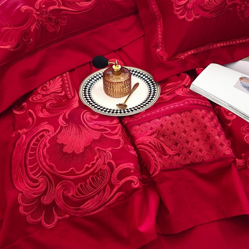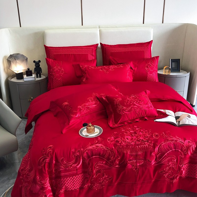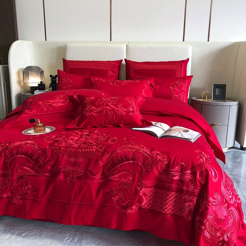 馨蕊家居2022新款140S全棉长绒棉刺绣婚庆四件套繁花似锦