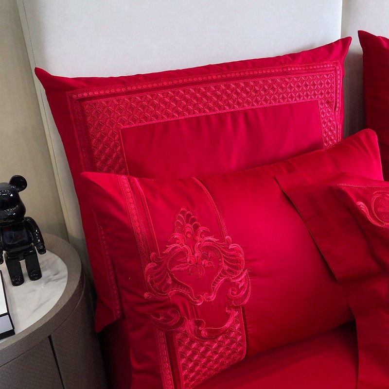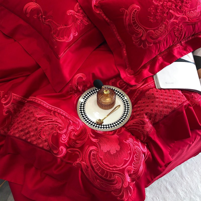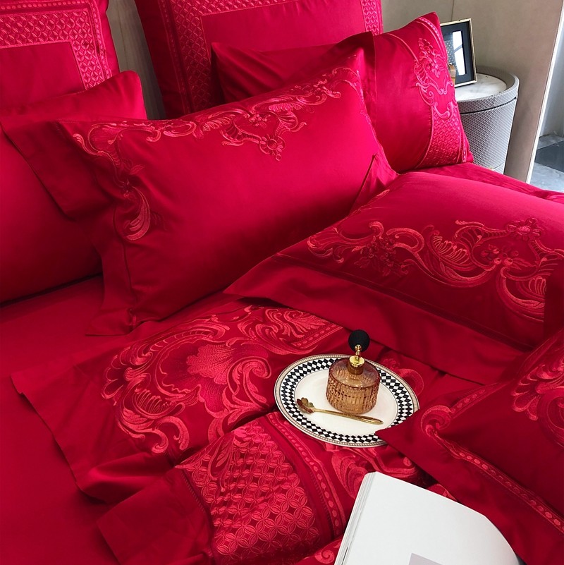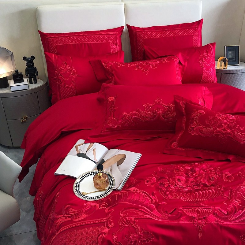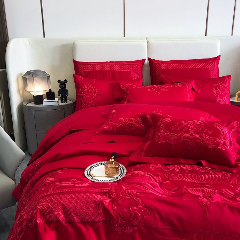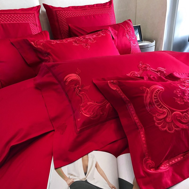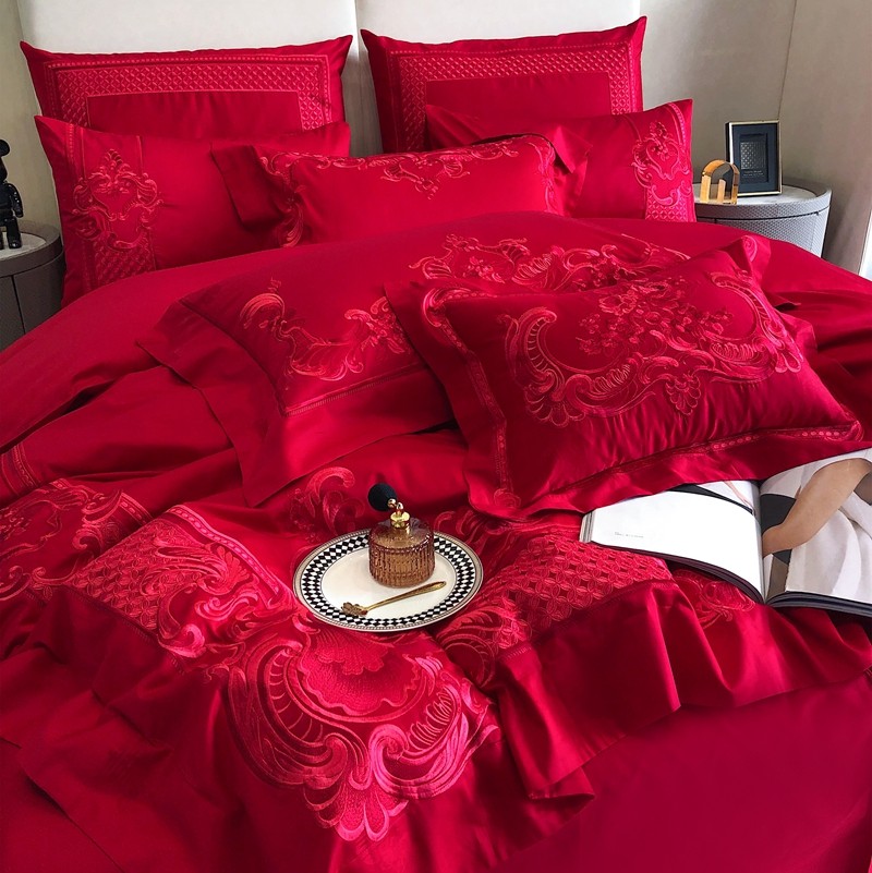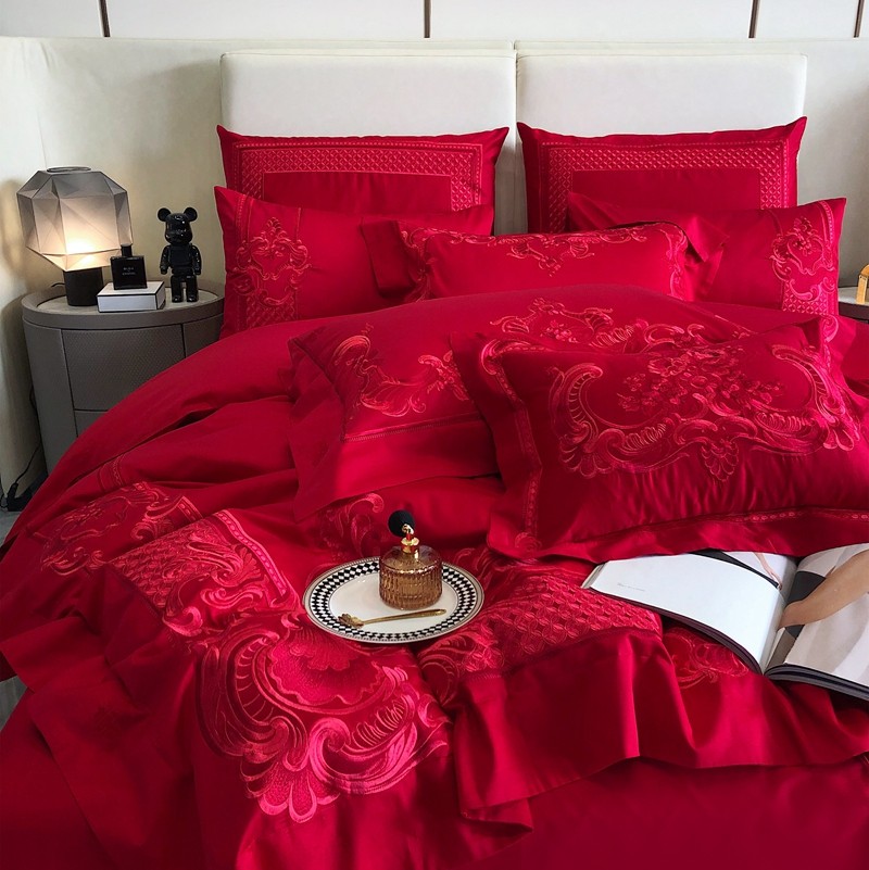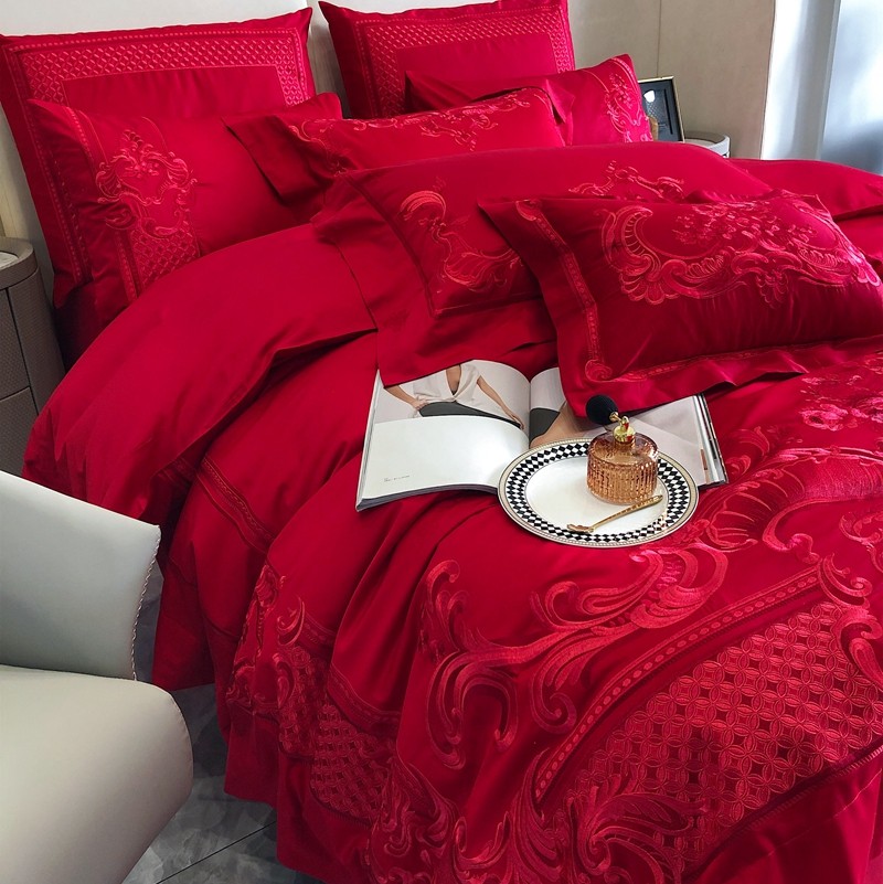 馨蕊家居2022新款140S全棉长绒棉刺绣婚庆四件套繁花似锦