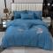 优姿家纺 2022新款全棉磨毛绣花四件套 香水百合-清澈蓝