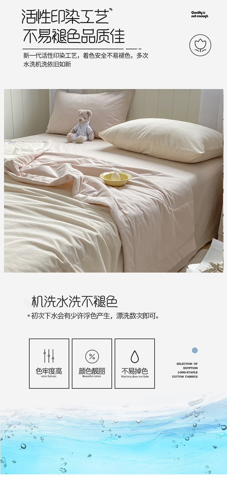 (总)三朵家纺 2026新款ins风全棉纯色双拼水洗棉四件套极简风系列,风青月白,焦糖曲奇,蓝韵雾纱,流光奶绿,抹茶奶黄,浅蓝芝士,香芋奶昔,烟墨灰,云纱可可
