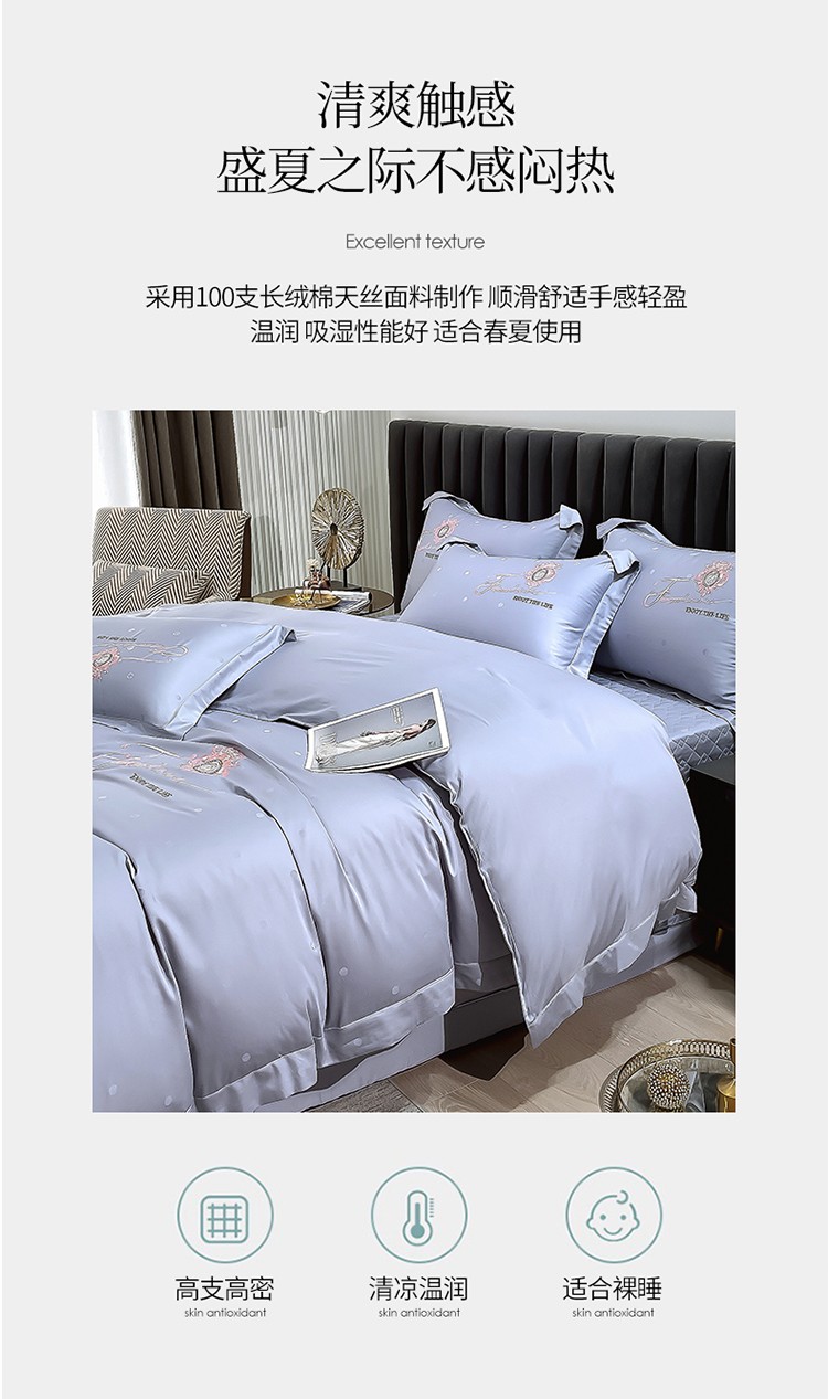 商品名称:小时代2022款100支长绒棉天丝床盖四件套曲意风华 冰紫色