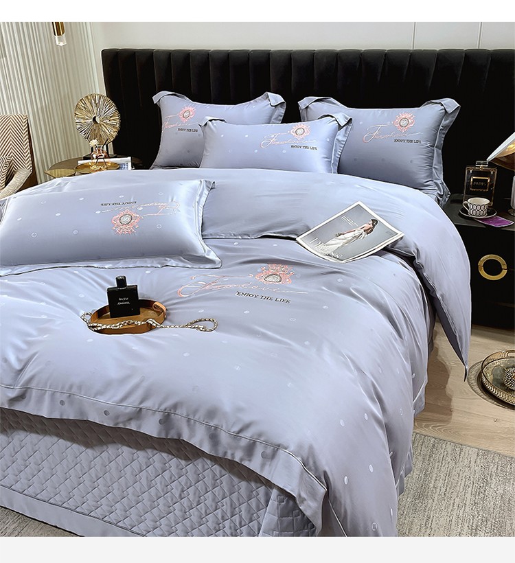 小时代2022款100支长绒棉天丝床盖四件套曲意风华 冰紫色