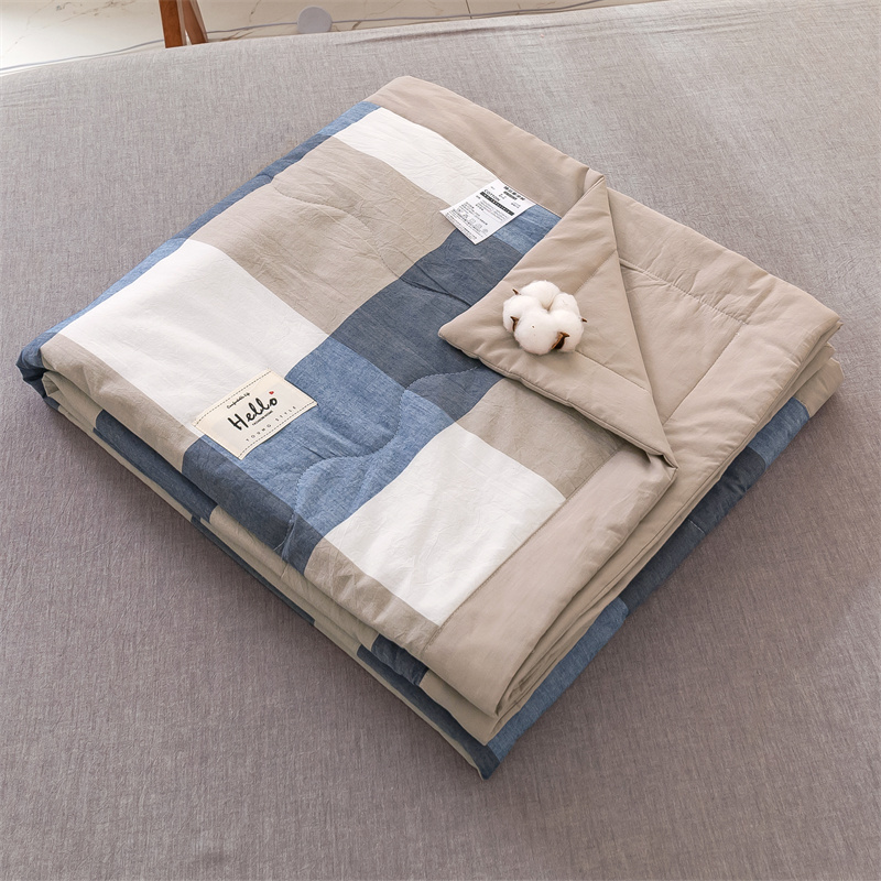 简色坊 2023新款全棉色织水洗棉夏凉被格子款 优雅格调-蓝