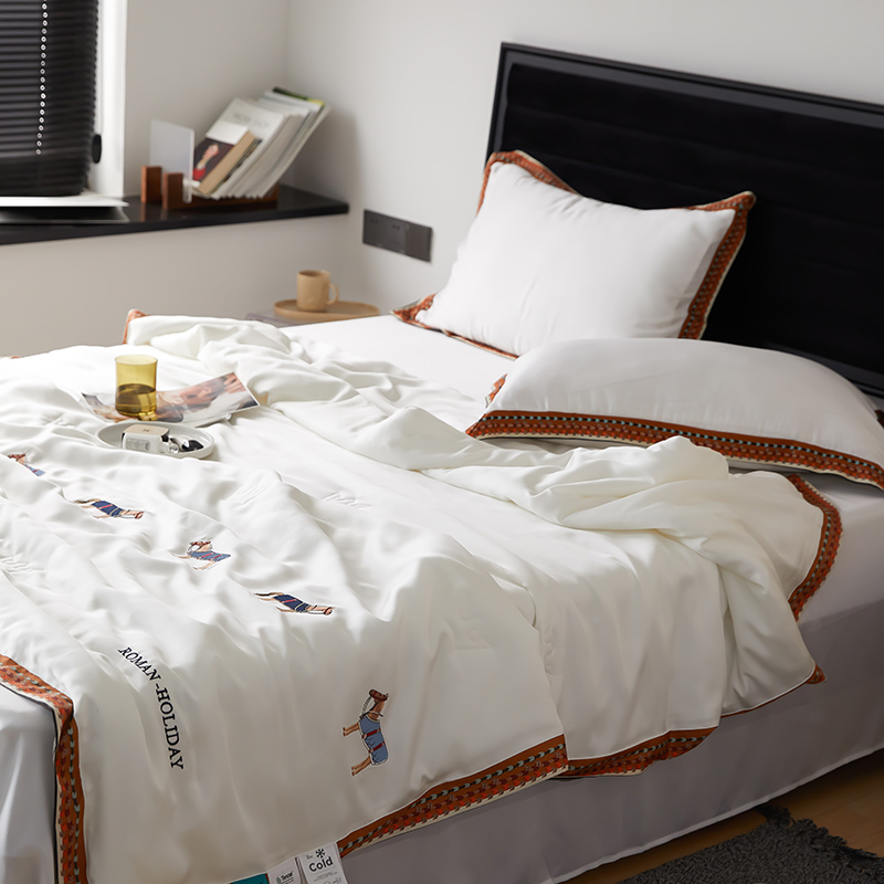 汇庭 2022新款奥地利60天丝数码花边夏被-马德里 马德里白色