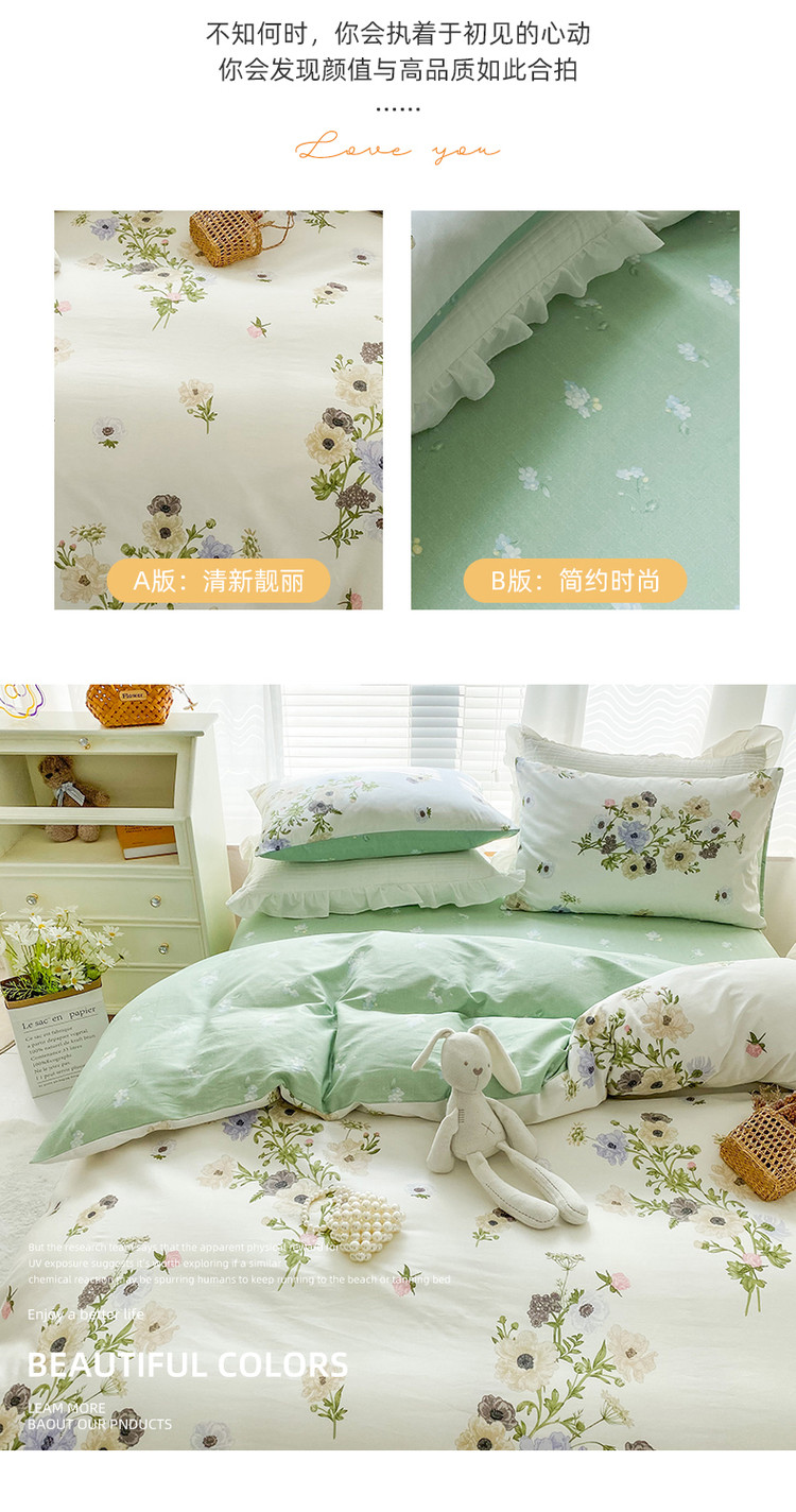 商品名称:优彩 新款全棉13372法式田园风情浪漫碎花四件套 沁兰