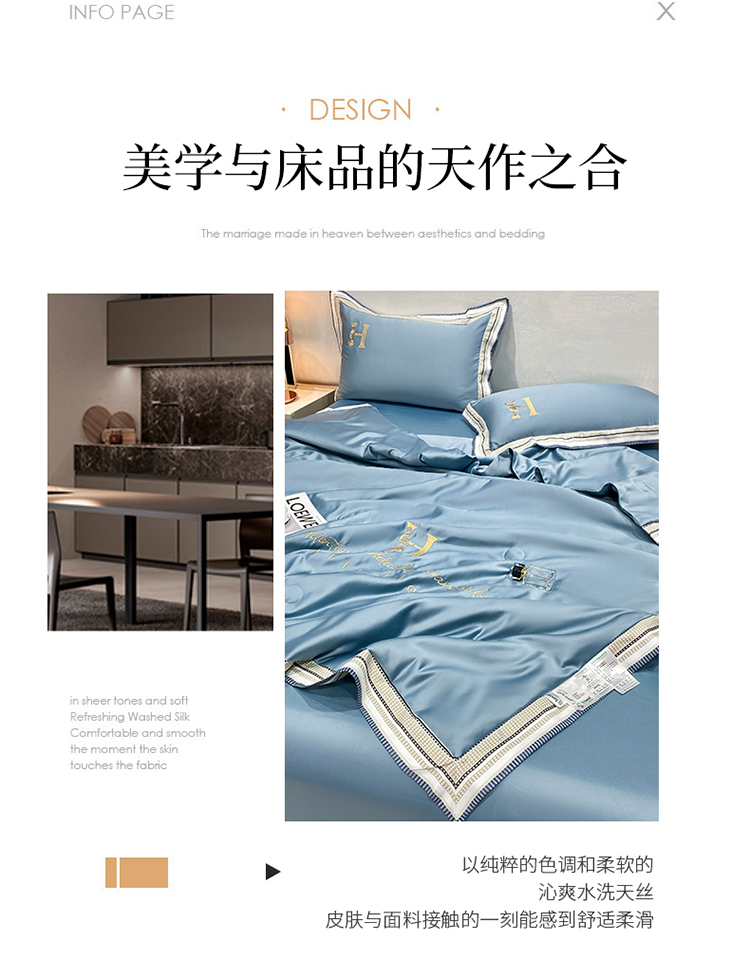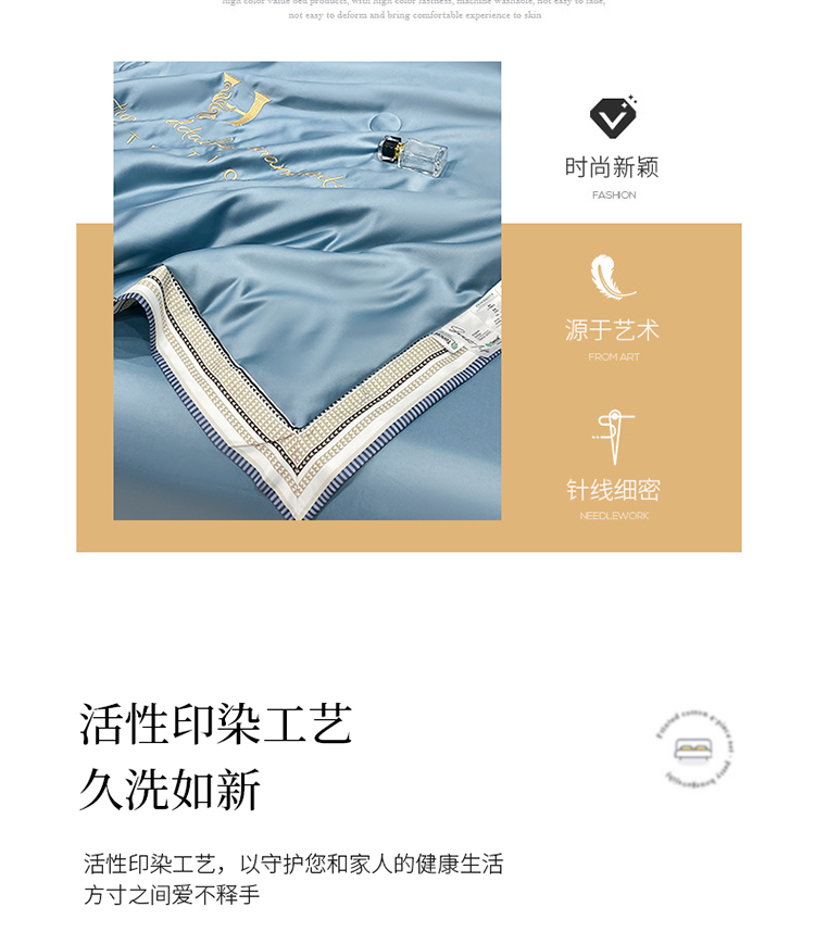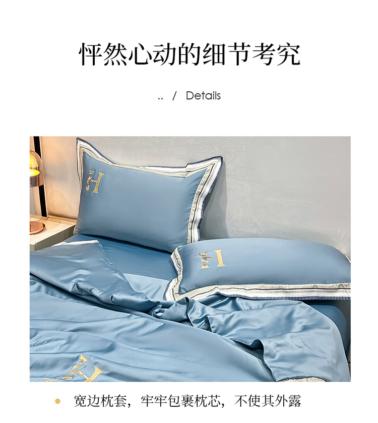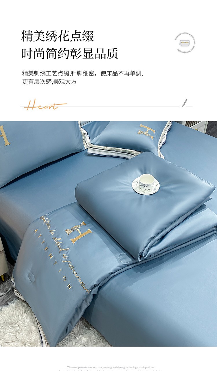 丽卡家纺 2023新款水洗天丝刺绣夏被四件套 华尔兹-景蓝