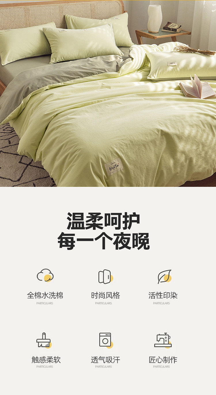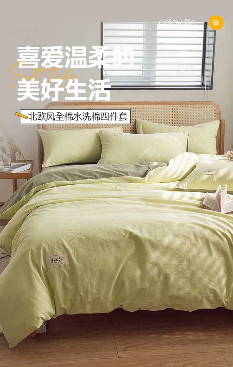 当前位置: 91家纺网 > 商品网购 > 床品套件 > 四件套 > 水洗棉四件套 > AB家纺 2022新款全棉水洗棉四件套 荧光绿-深绿