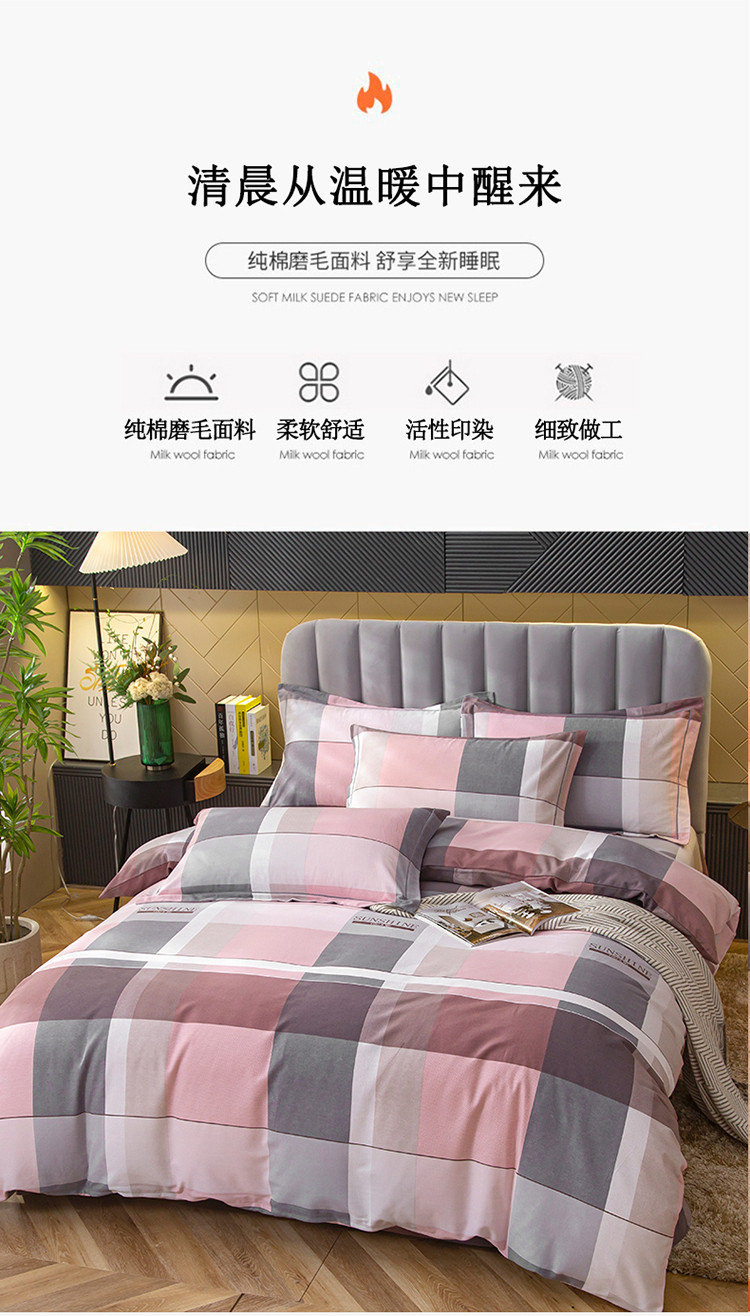 当前位置: 91家纺网 > 商品网购 > 床品套件 > 四件套 > 全棉普通四件套 > 简冠家纺 2022新款全棉加厚生态磨毛四件套 莫格-粉