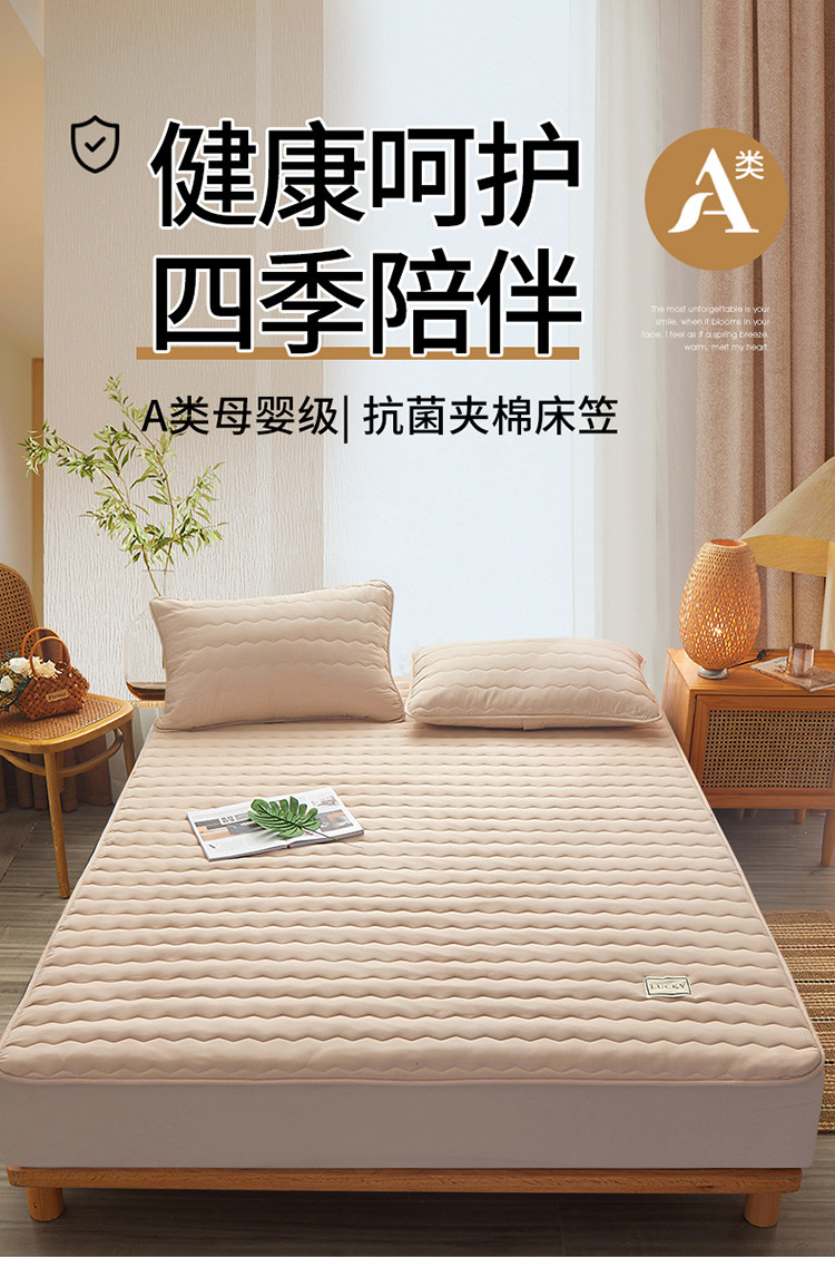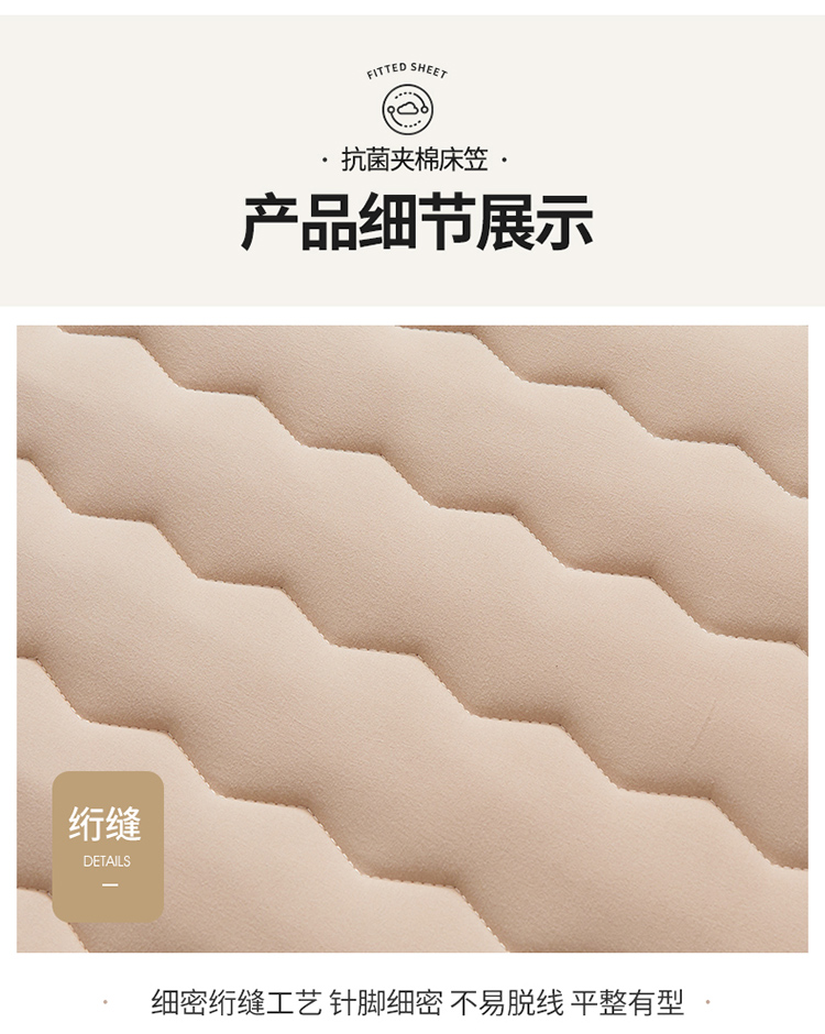 • 91家纺网 家纺一手货源 找家纺 芬晴 2023新款A类全棉母婴级抗菌防螨夹棉床笠 波浪-卡其