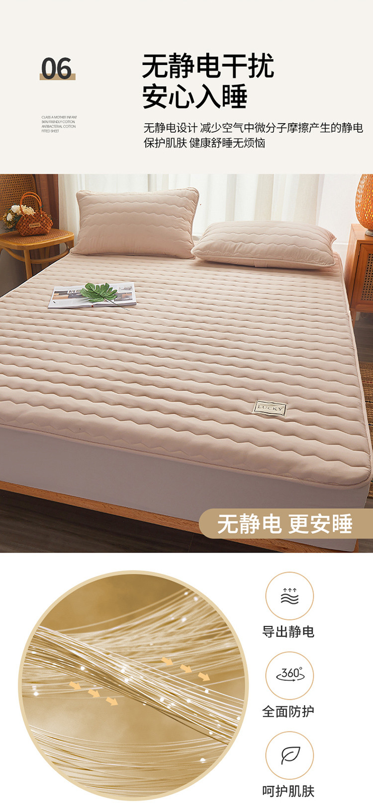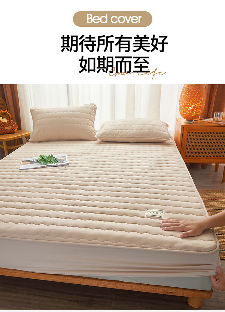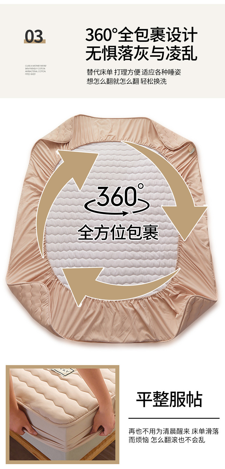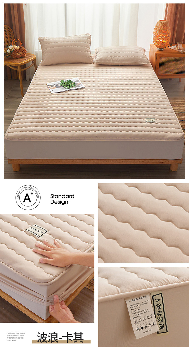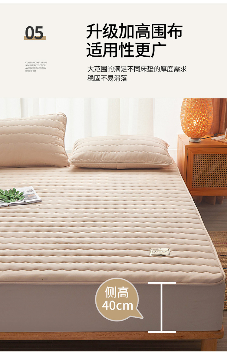 芬晴 2023新款A类全棉母婴级抗菌防螨夹棉床笠 波浪-卡其