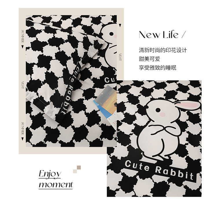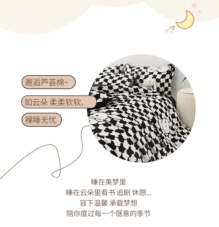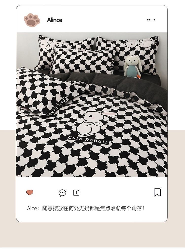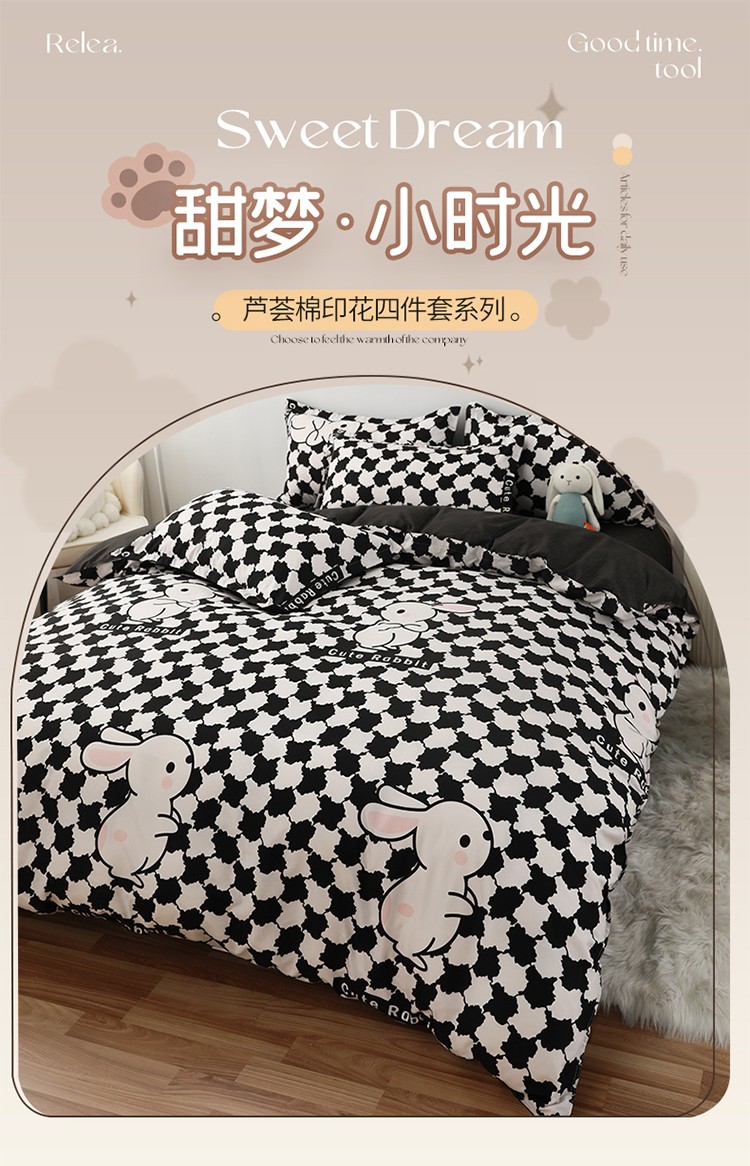 妖妖家纺 2023新款芦荟棉AB双版印花四件套 兔崽