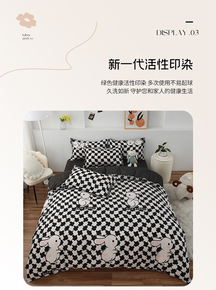 商品名称:妖妖家纺 2023新款芦荟棉AB双版印花四件套 兔崽