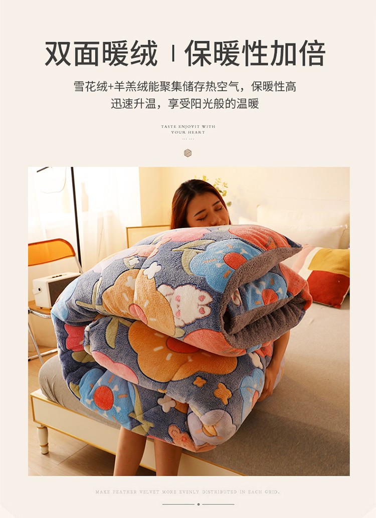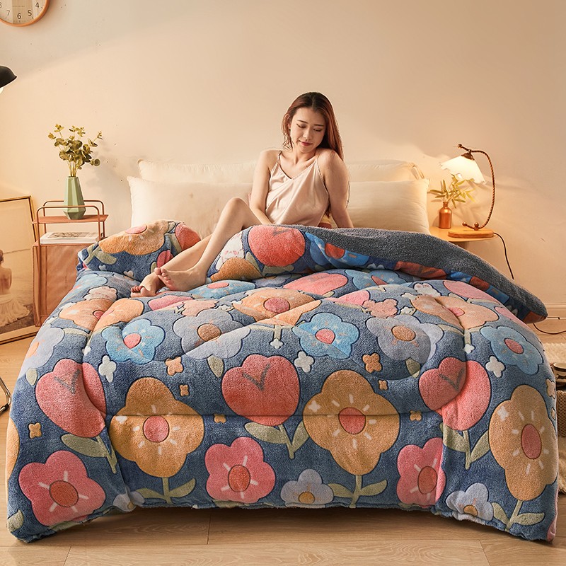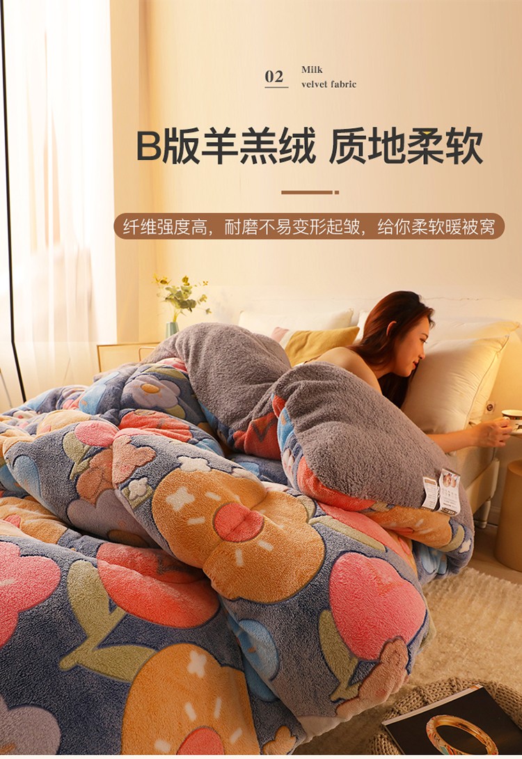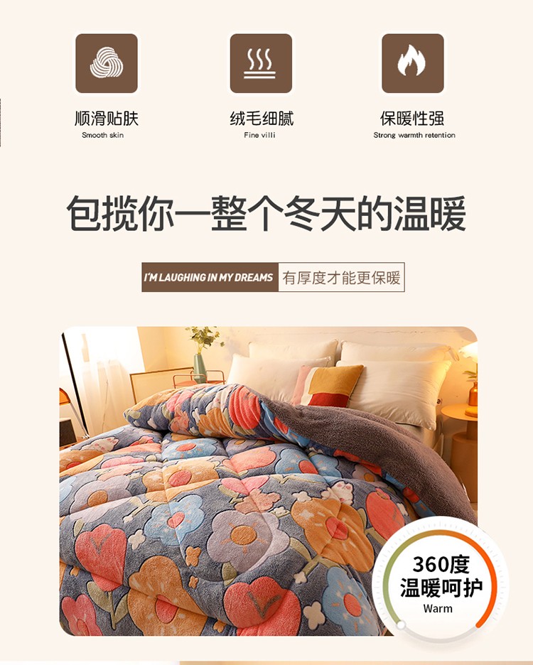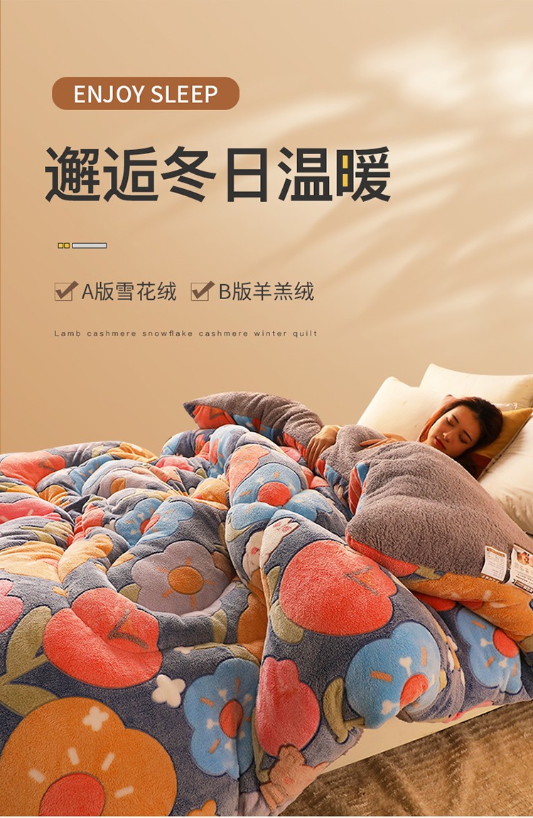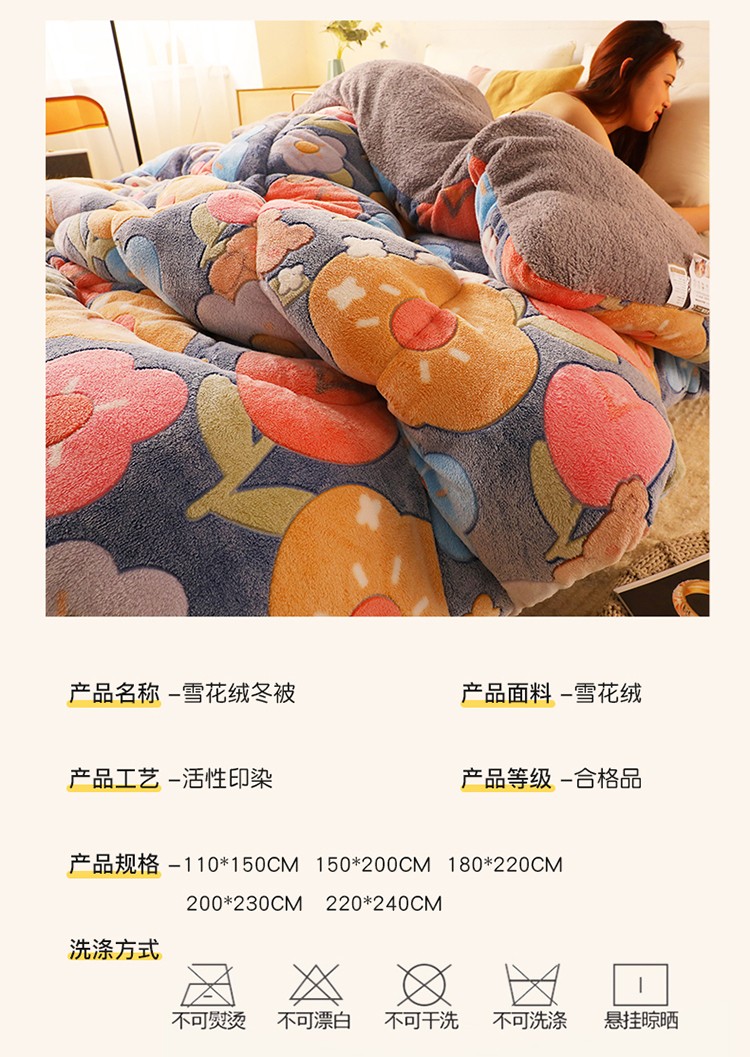 商品名称:梦初语 2022新款加厚保暖雪花绒加羊羔绒冬被花儿朵朵