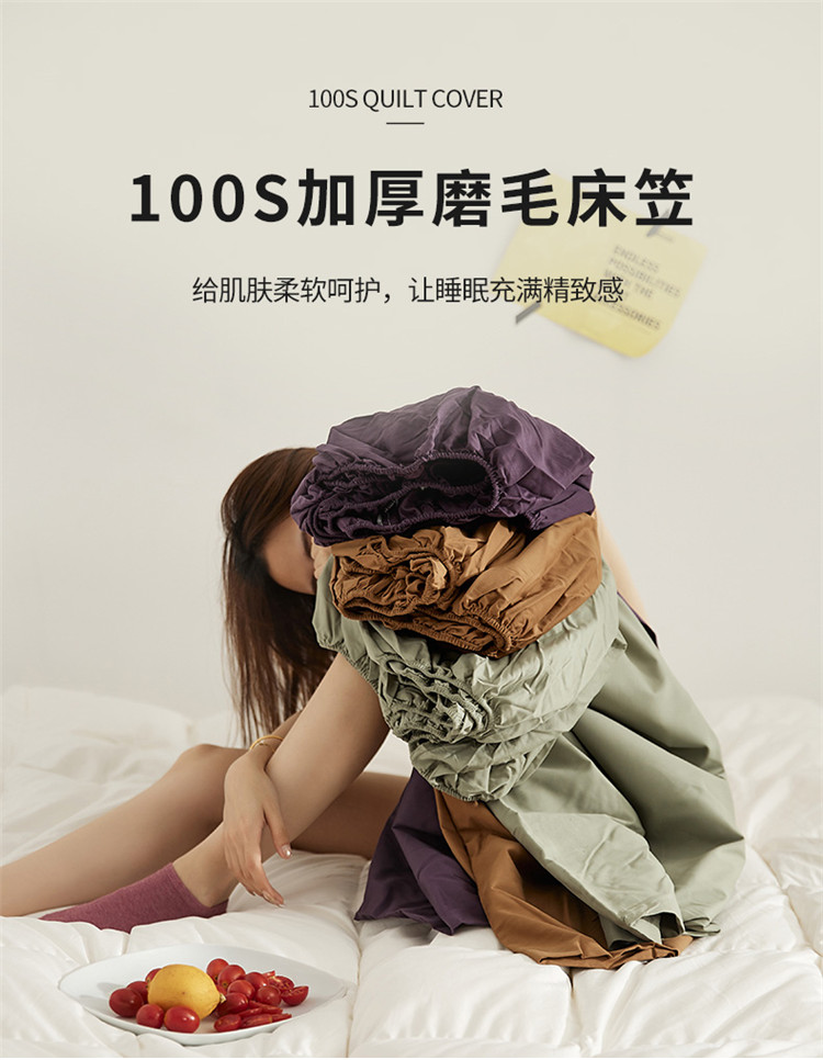 (总)EH家居2025新款50*50双股长绒棉纯棉系列床笠单件-单床笠,草籽灰,初雪咖,淡青色,黑加仑紫,梅子粉,暮色灰,清雅绿,仙草玉粉,组合图仅供展示