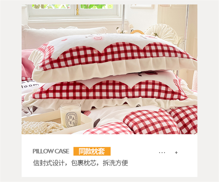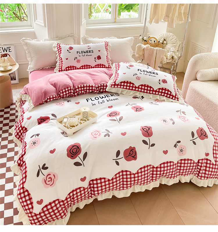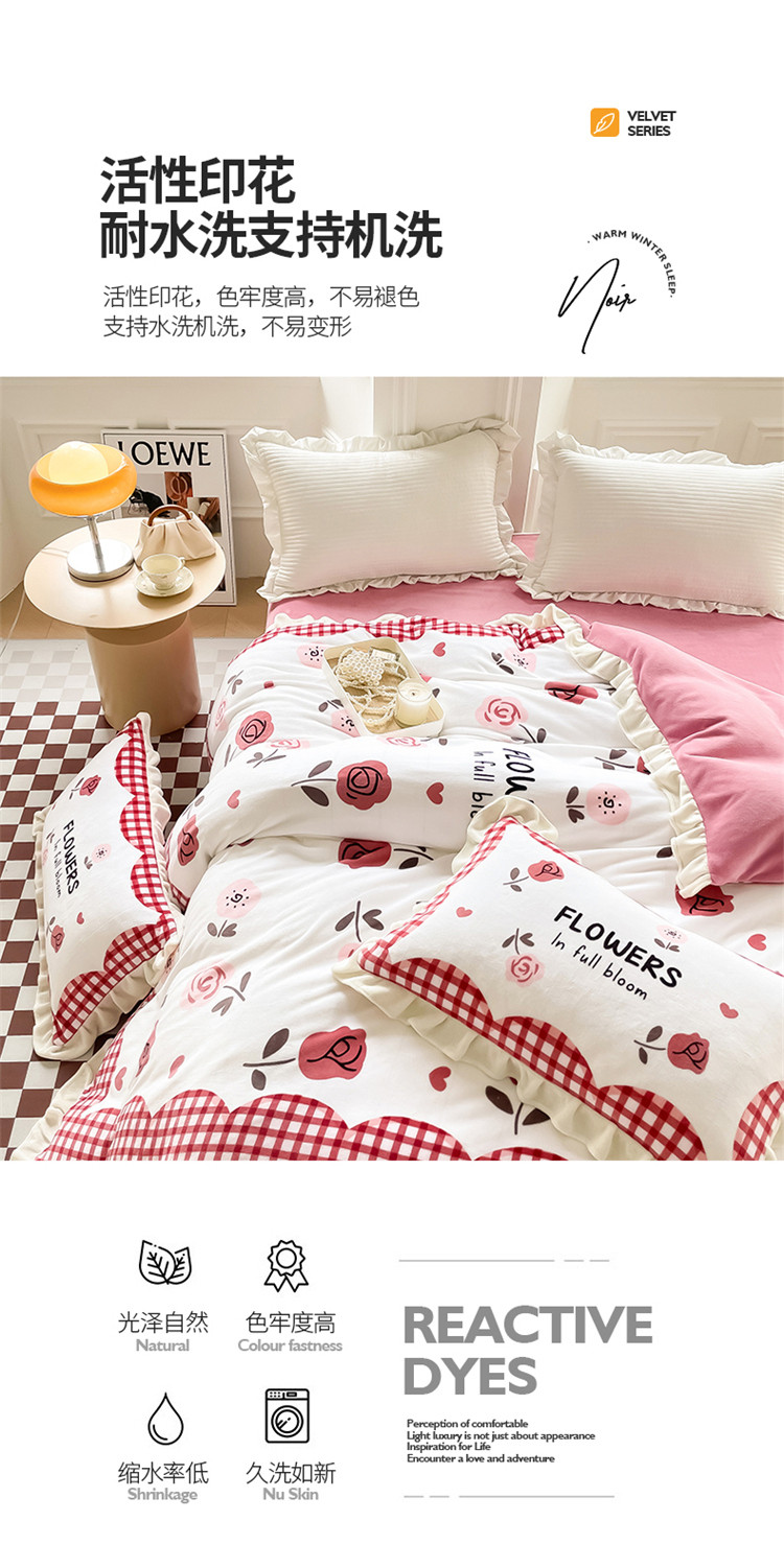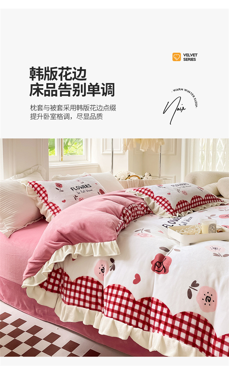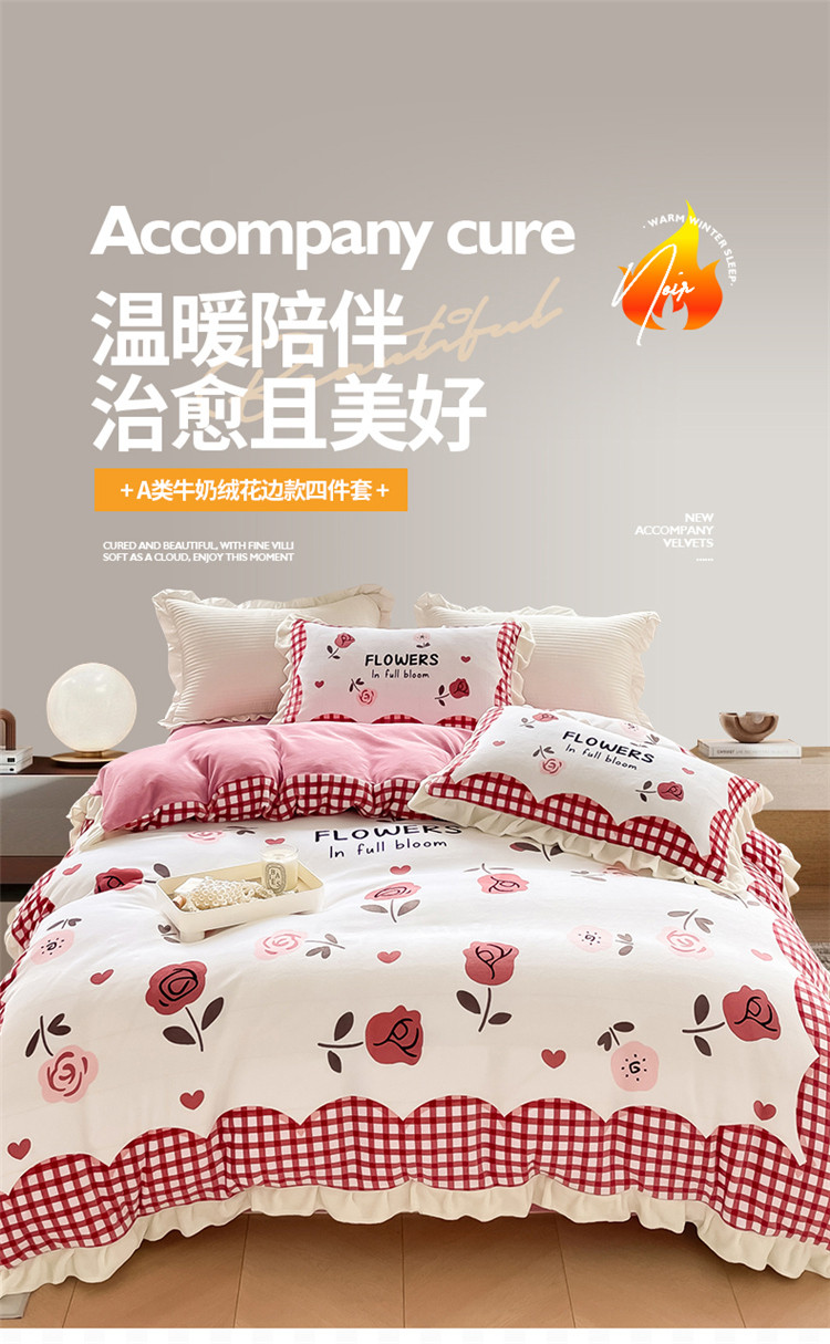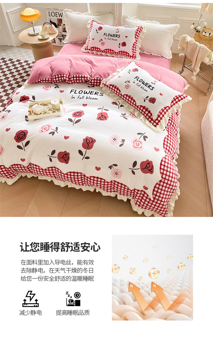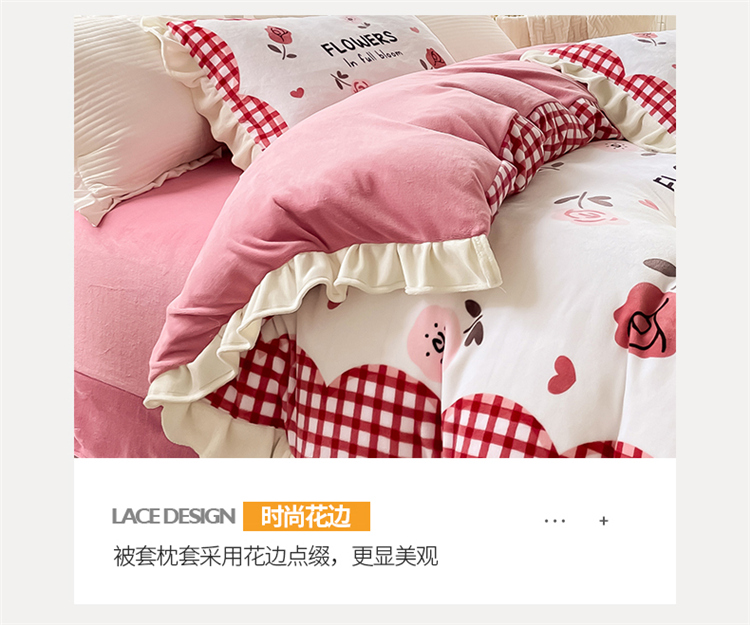 商品名称:懒猫 2022新款大版牛奶绒花边款四件套 眷恋