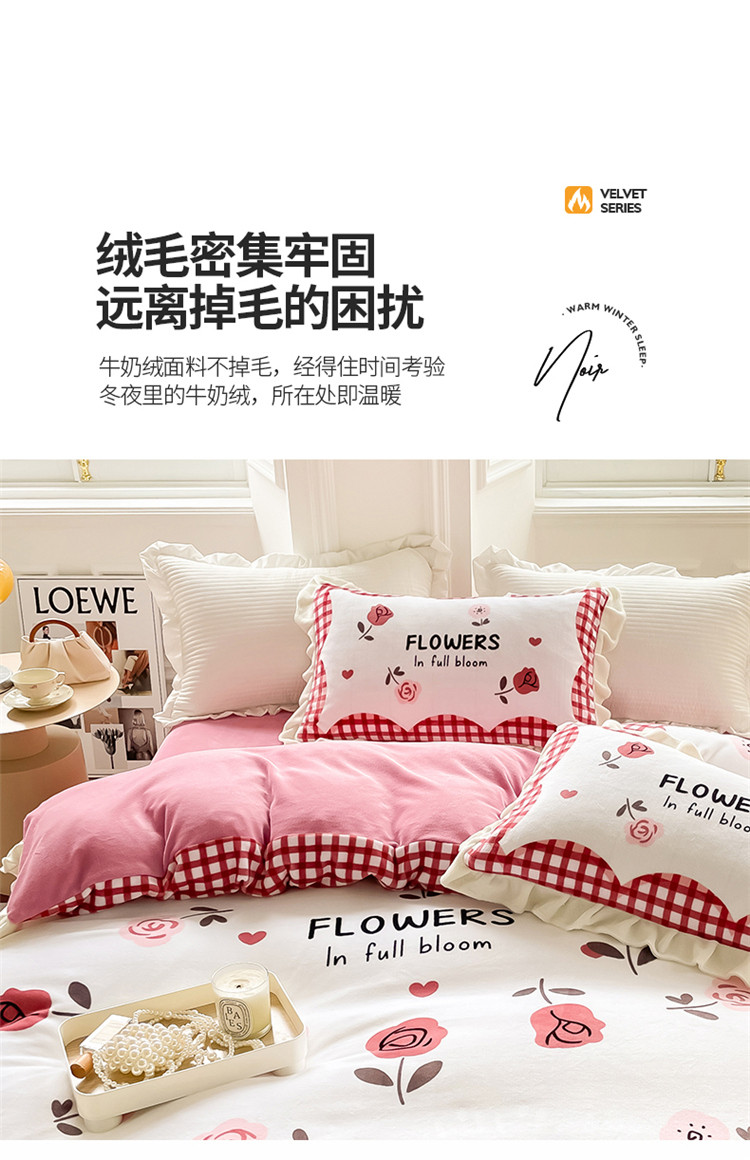 (总)懒猫家纺 2025新款亲肤舒适牛奶绒四件套-可可小姐系列,可可小姐-瓷白,可可小姐-水粉