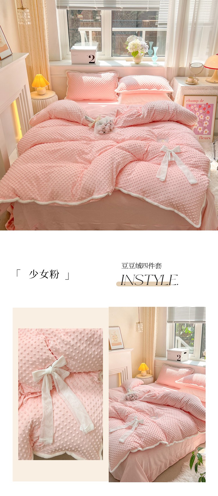当前位置: 91家纺网 > 商品网购 > 床品套件 > 四件套 > 牛奶绒四件套 > 总淑女公社22秋冬新款豆豆绒牛奶绒兔毛花边蝴蝶结款四件套