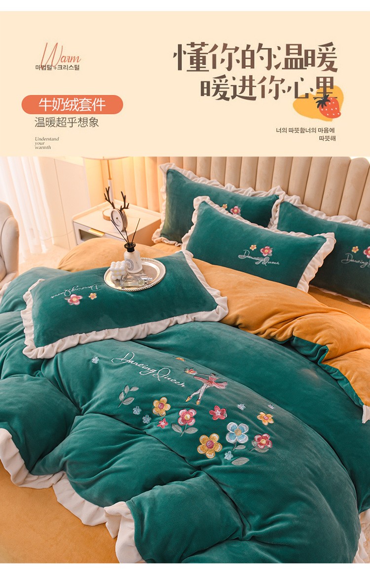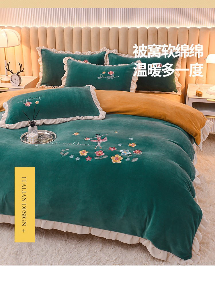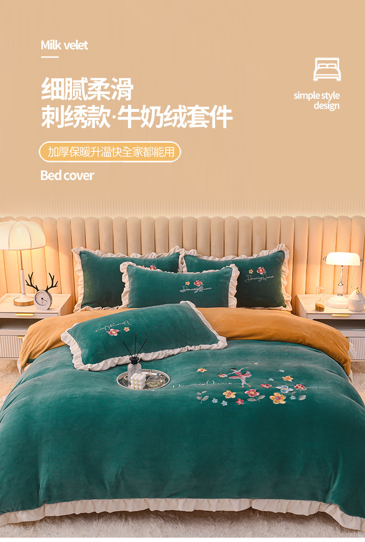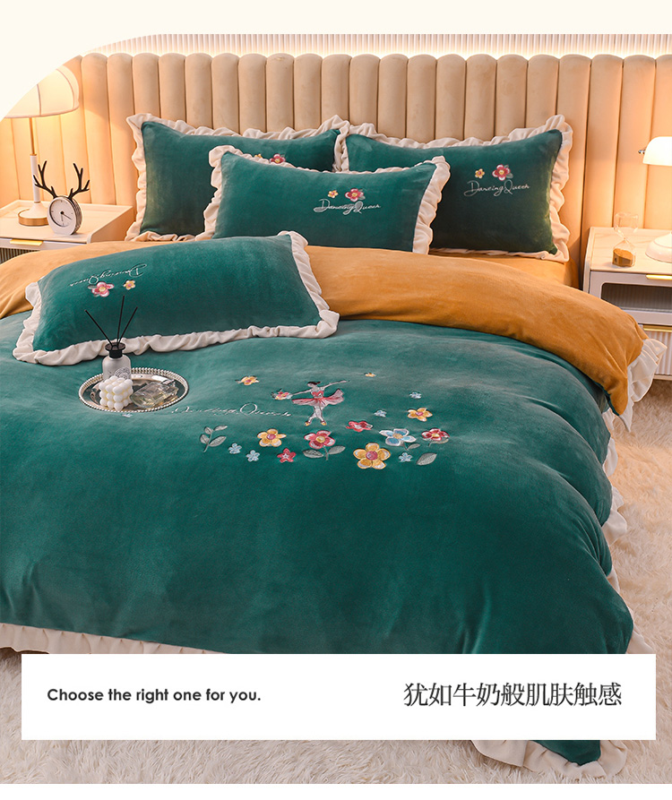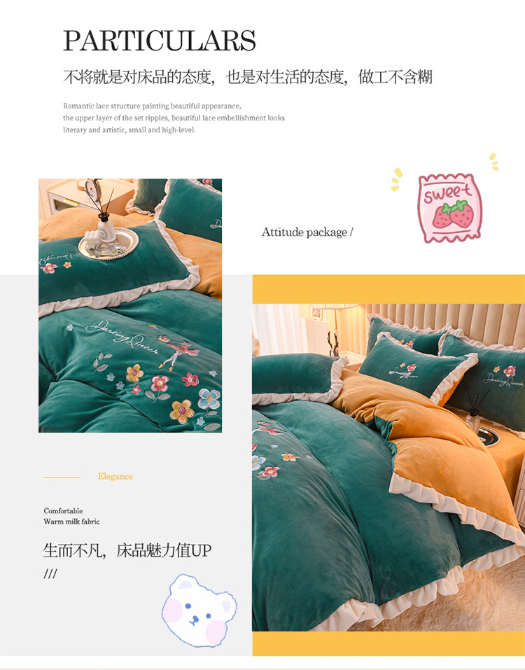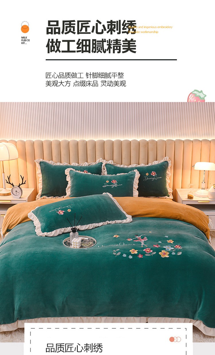 商品名称:芃成 2022新款加厚保暖牛奶绒绣花四件套 芭蕾女孩 玛瑙绿
