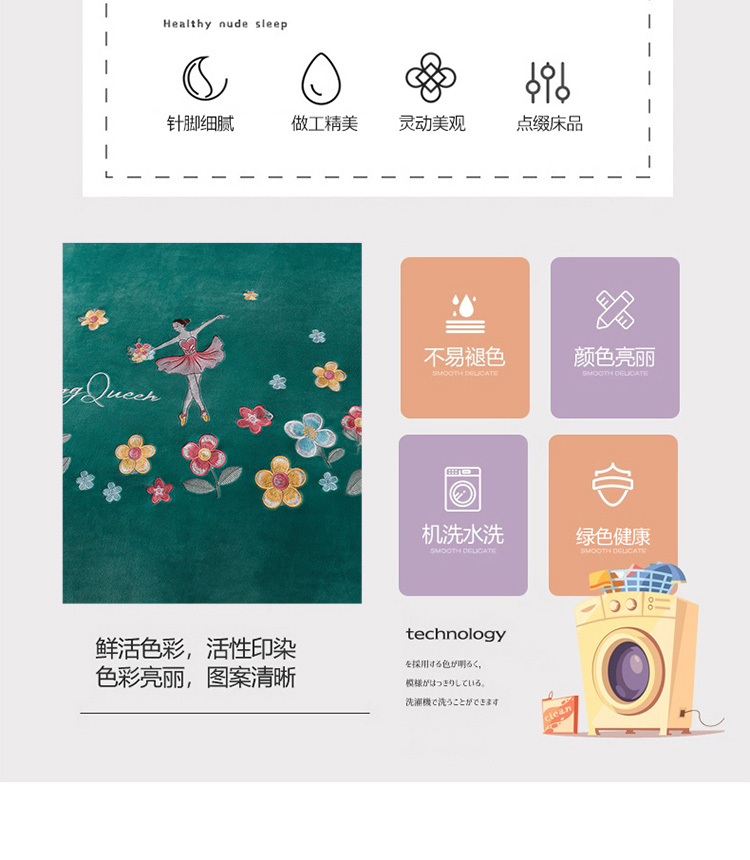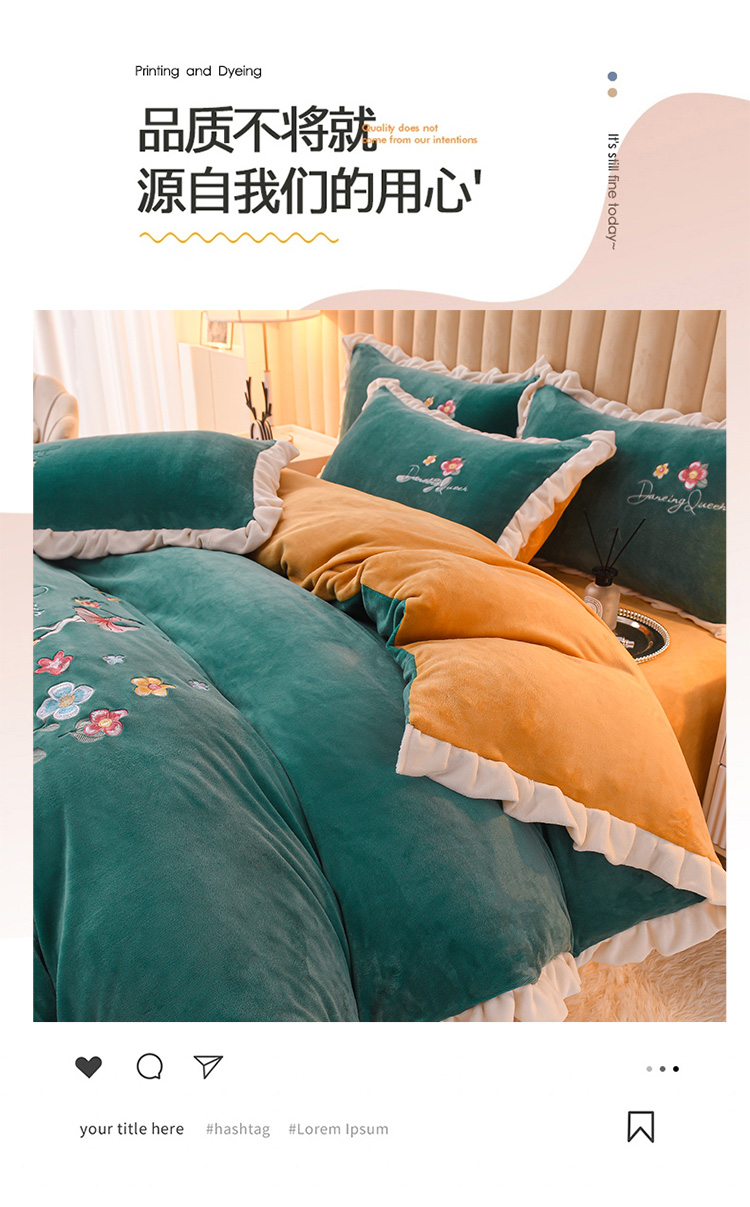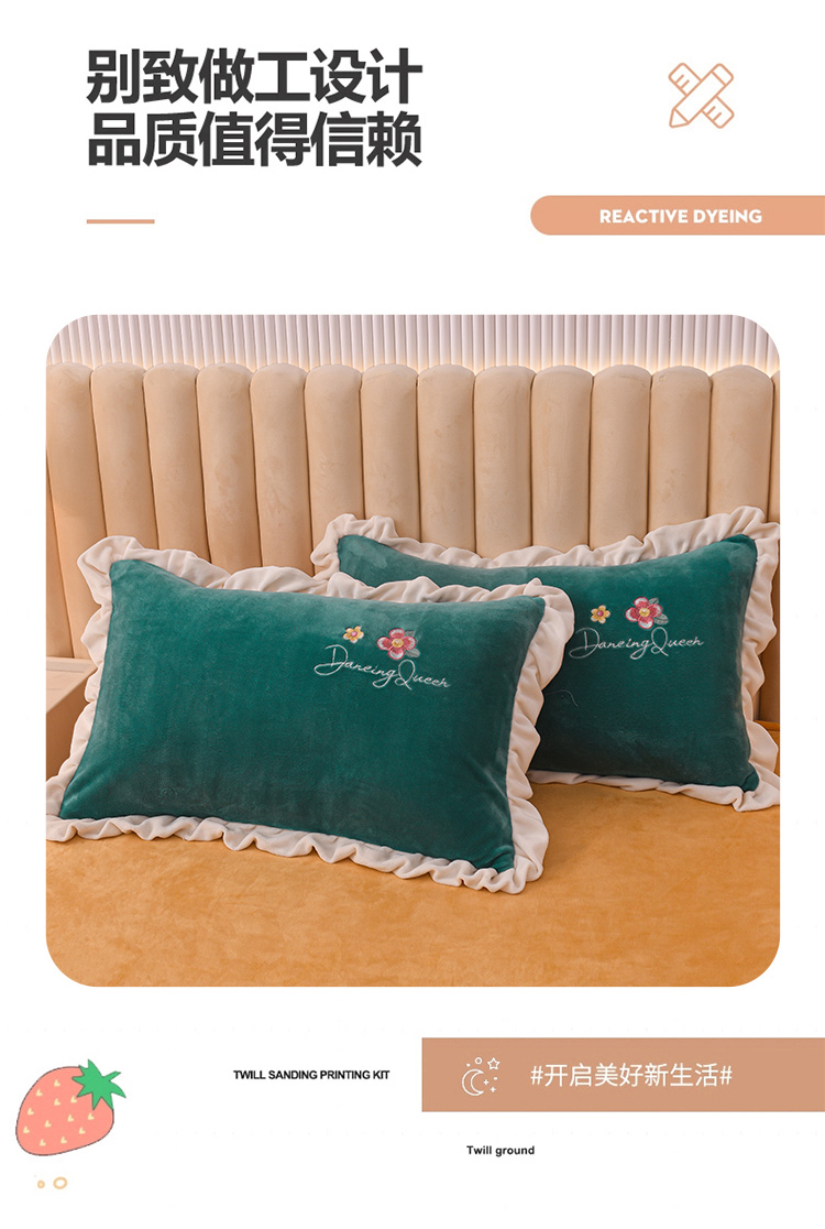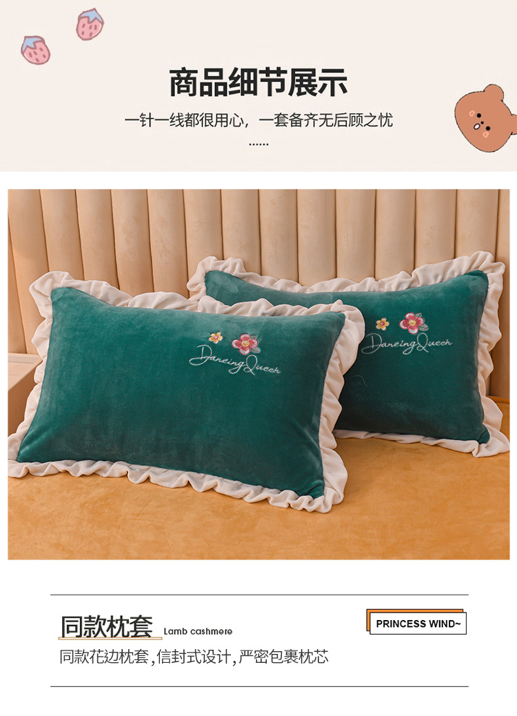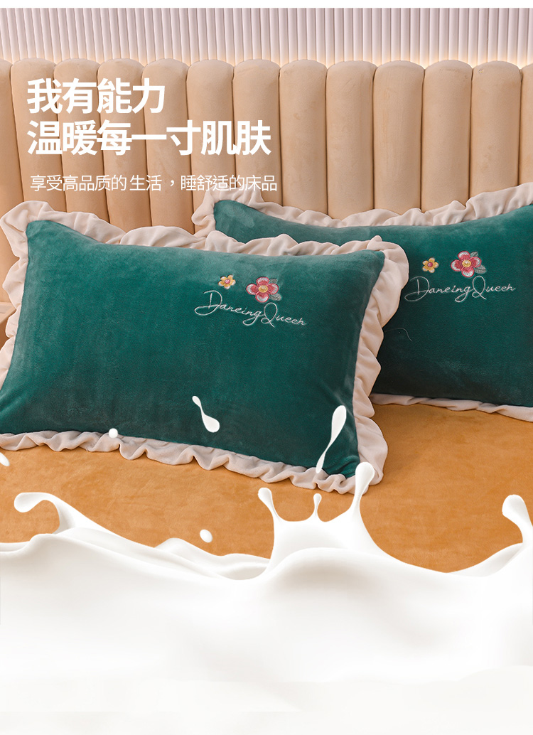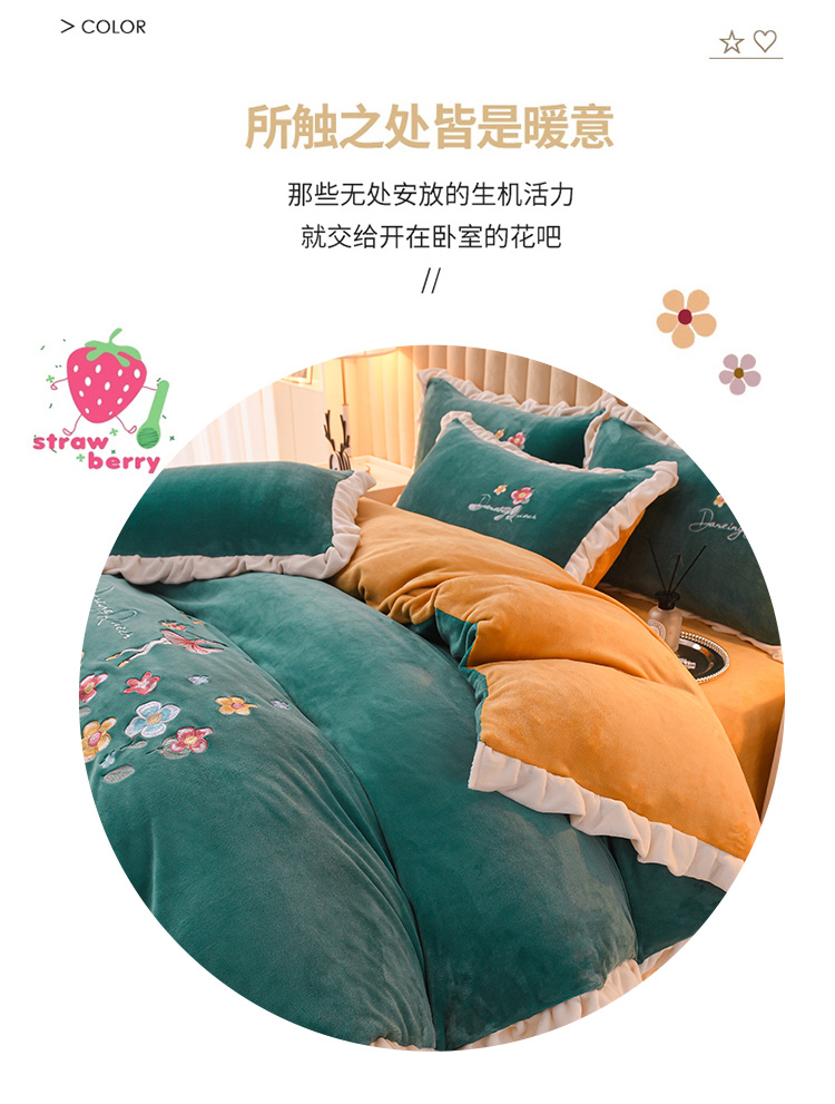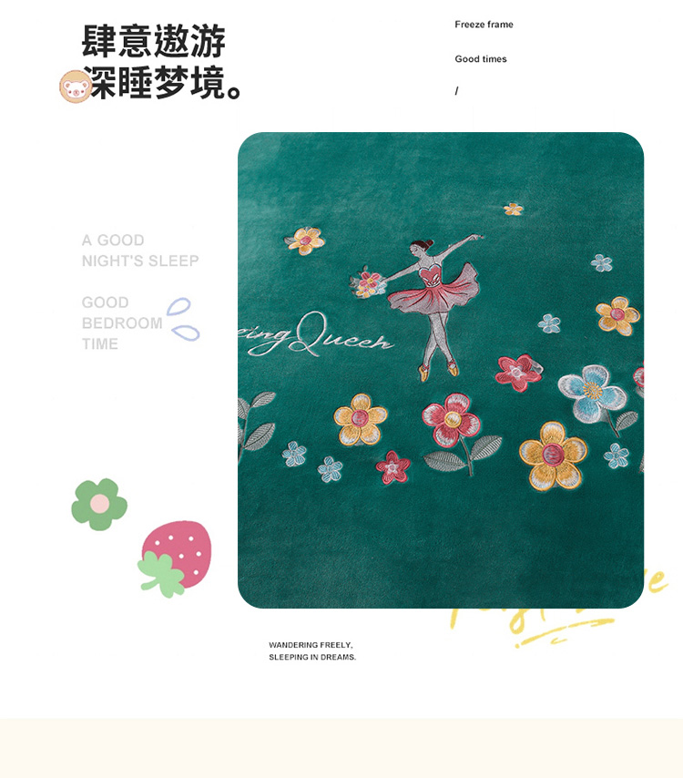 商品名称:芃成 2022新款加厚保暖牛奶绒绣花四件套 芭蕾女孩 玛瑙绿
