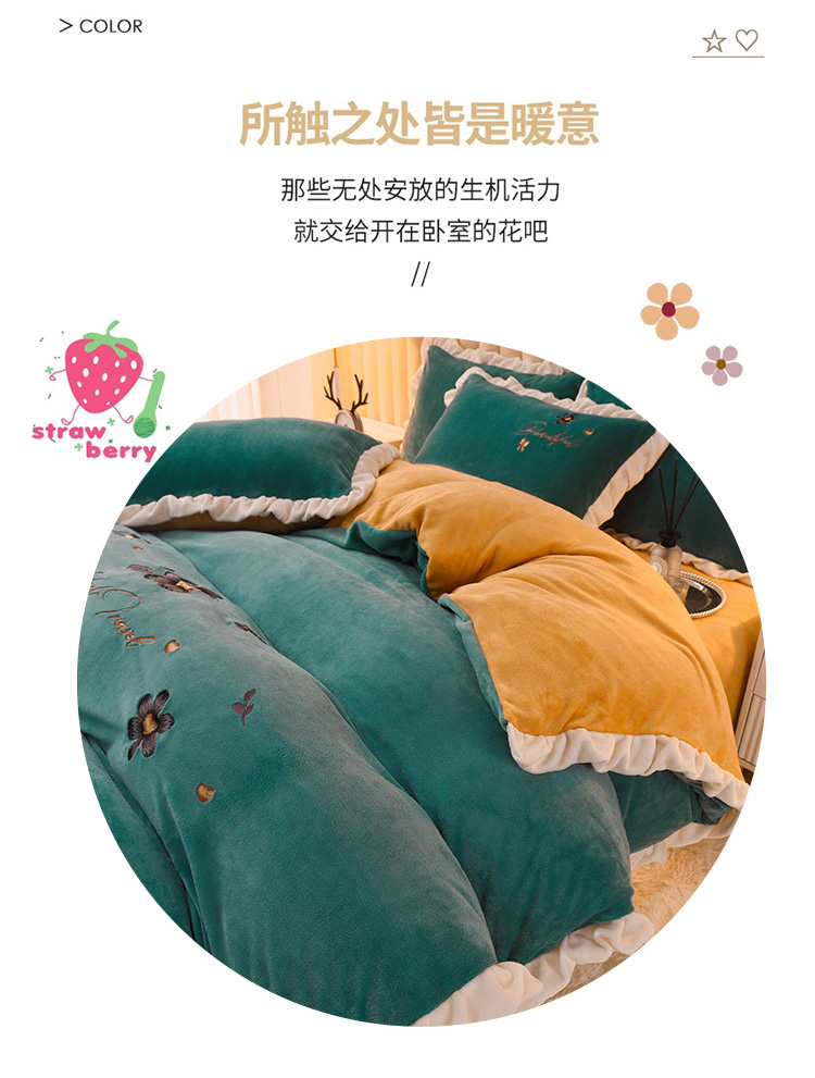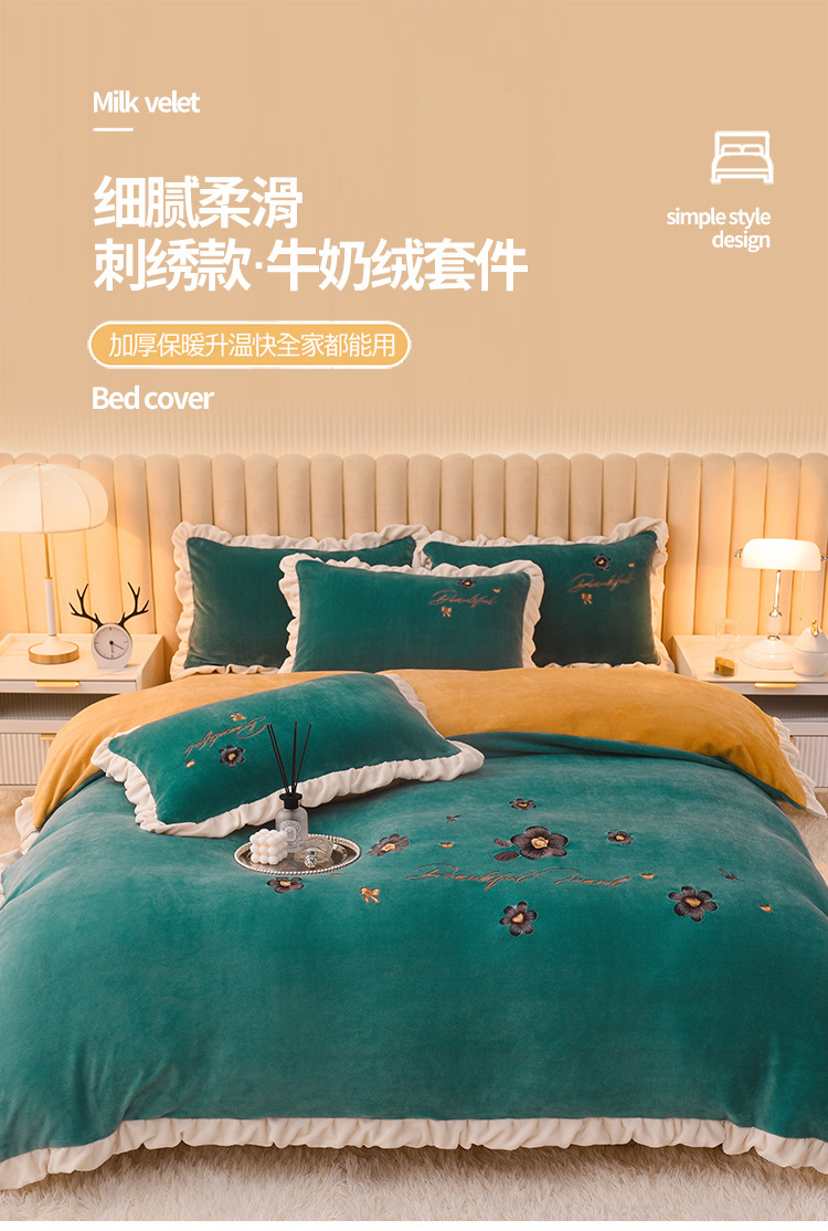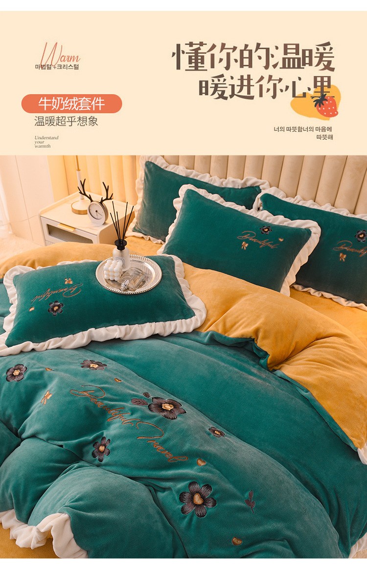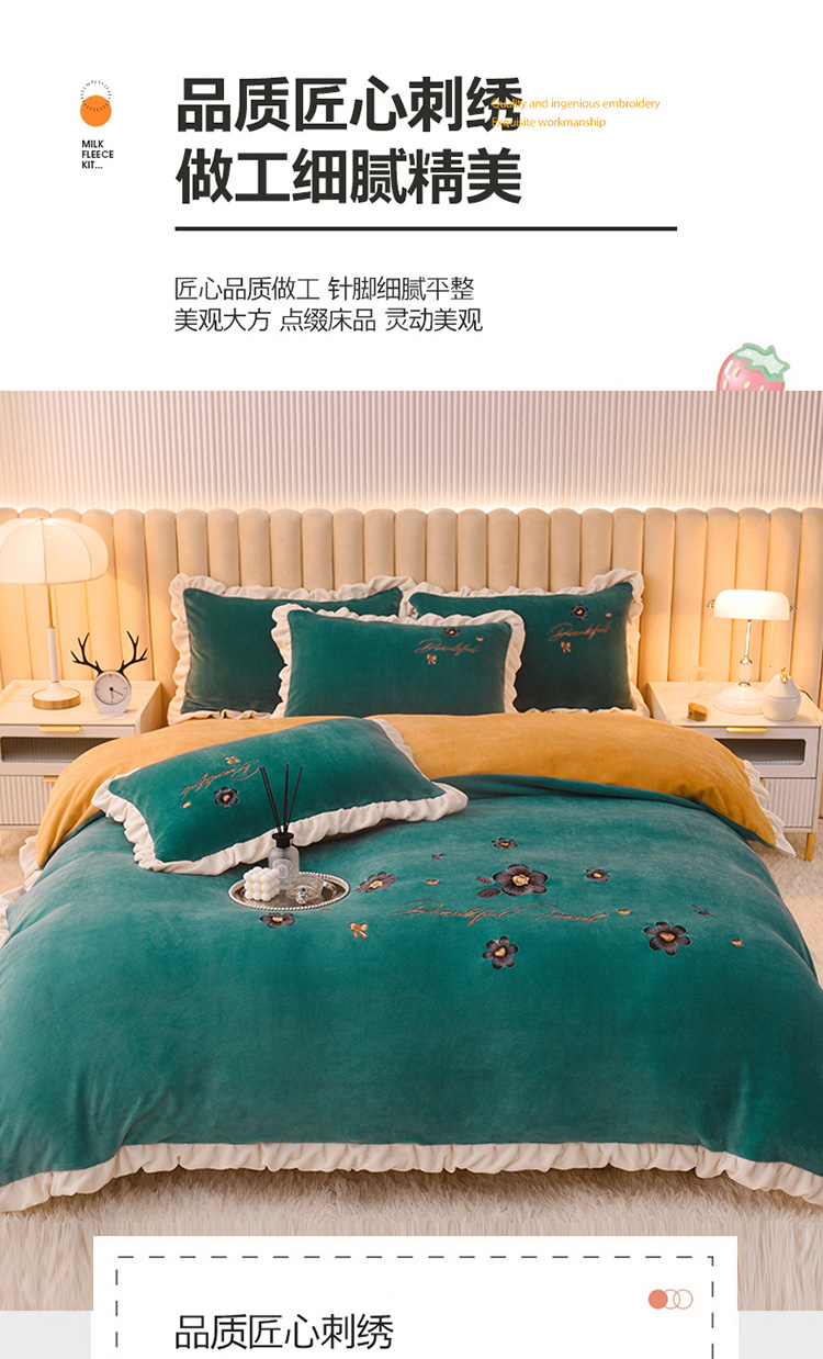 商品名称:芃成 2022新款加厚保暖牛奶绒绣花四件套 花漾 玛瑙绿