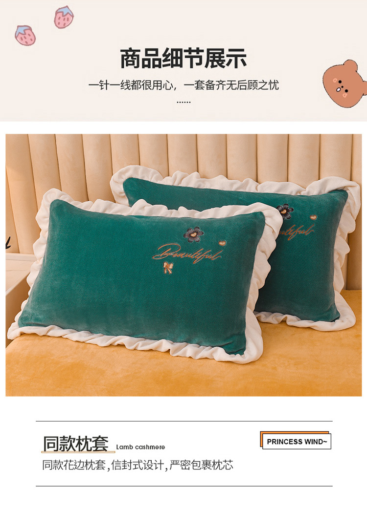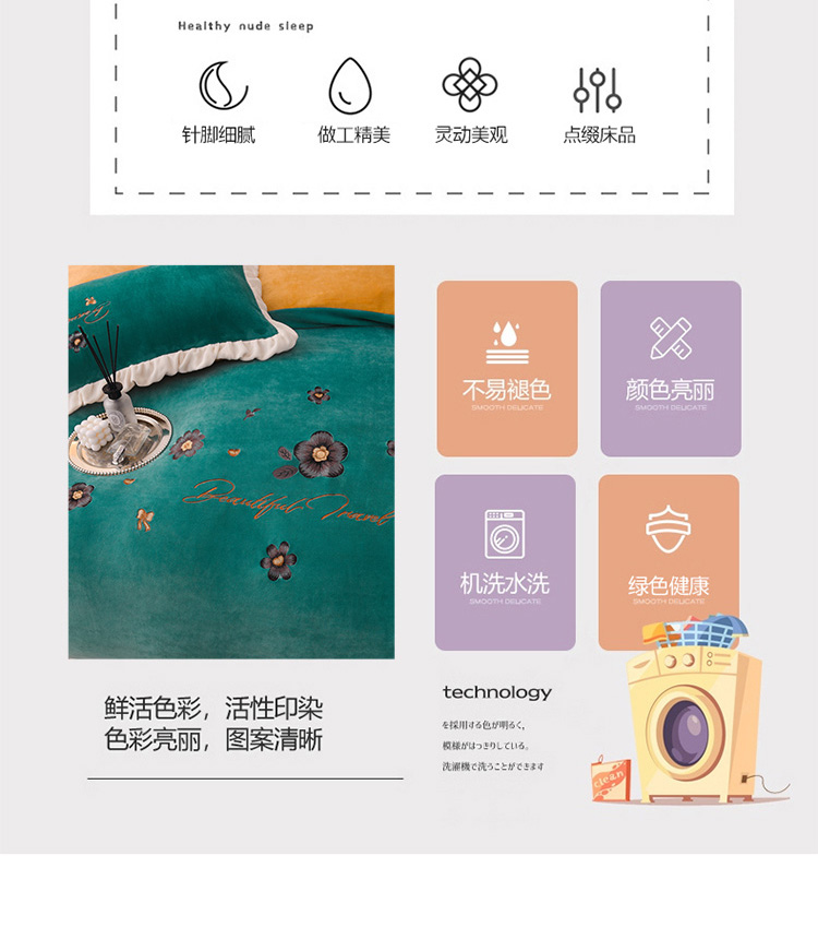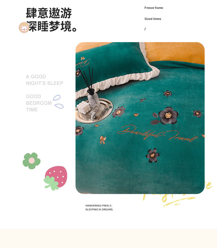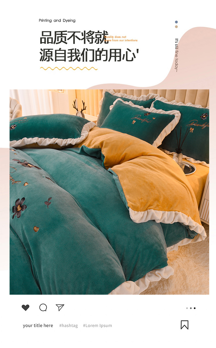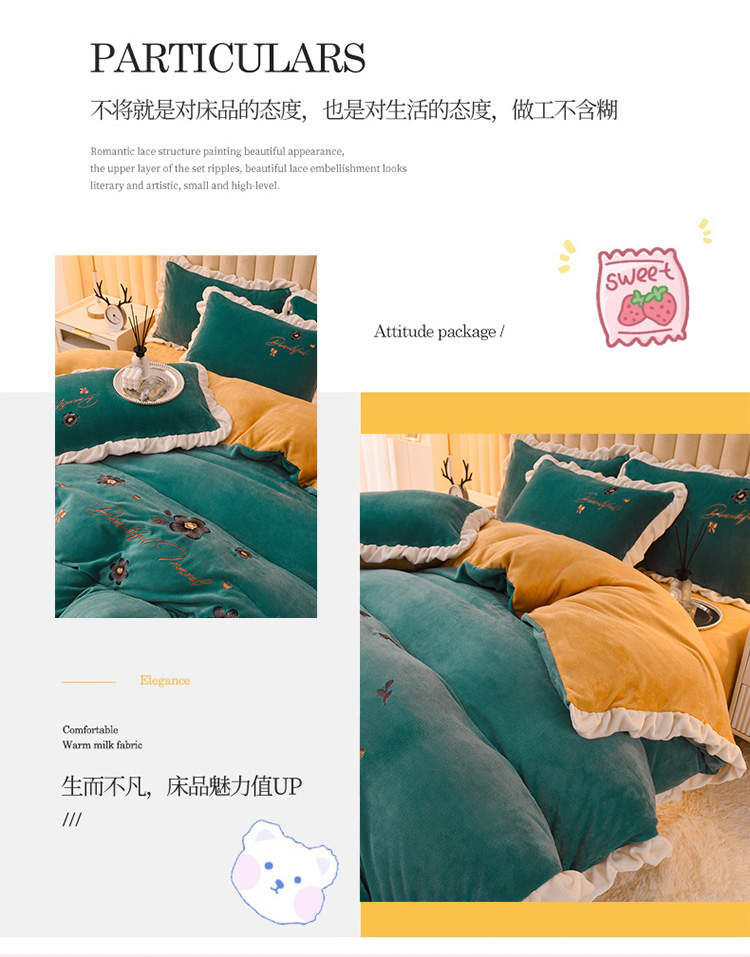 商品名称:芃成 2022新款加厚保暖牛奶绒绣花四件套 花漾 玛瑙绿