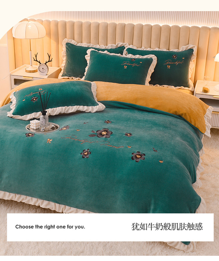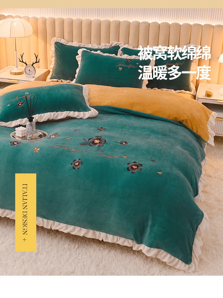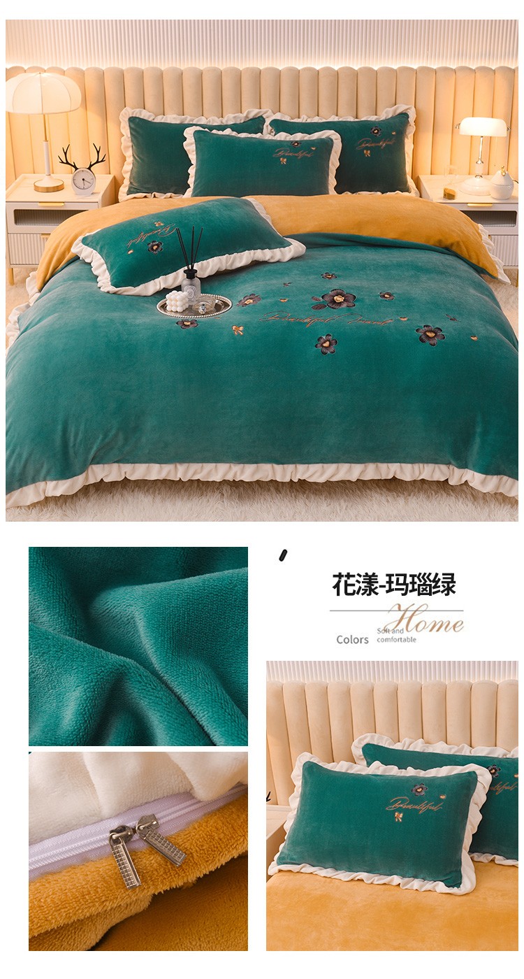芃成 2022新款加厚保暖牛奶绒绣花四件套 花漾 玛瑙绿