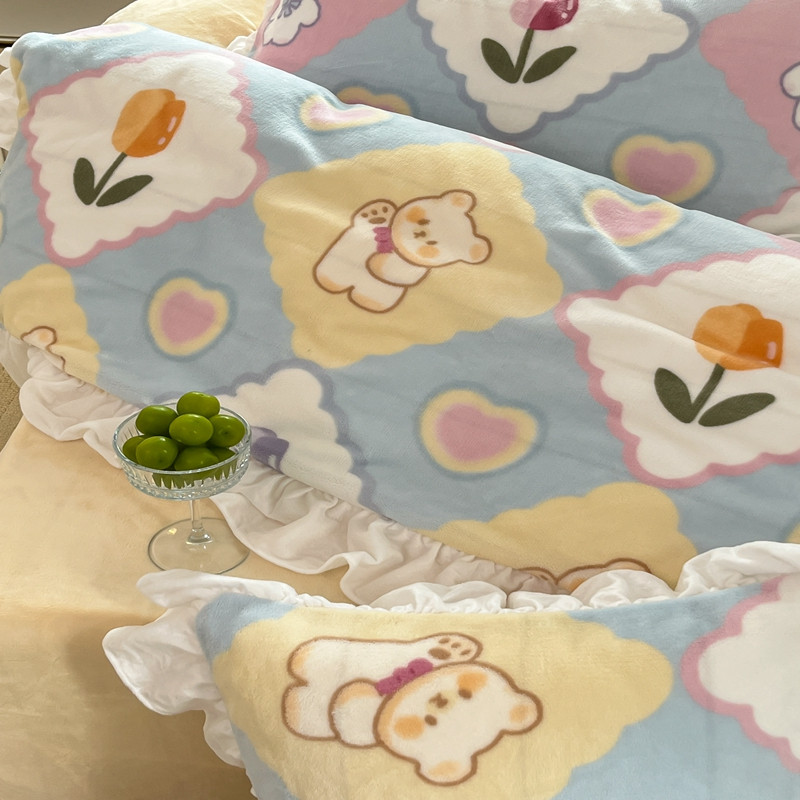(总)昔可家纺 2024新款印花牛奶绒四件套系列-洛丽塔风,萝莉小兔,小熊烘焙屋,小熊玩偶屋