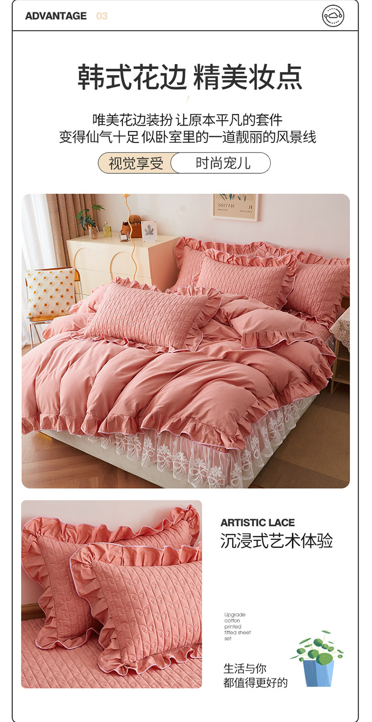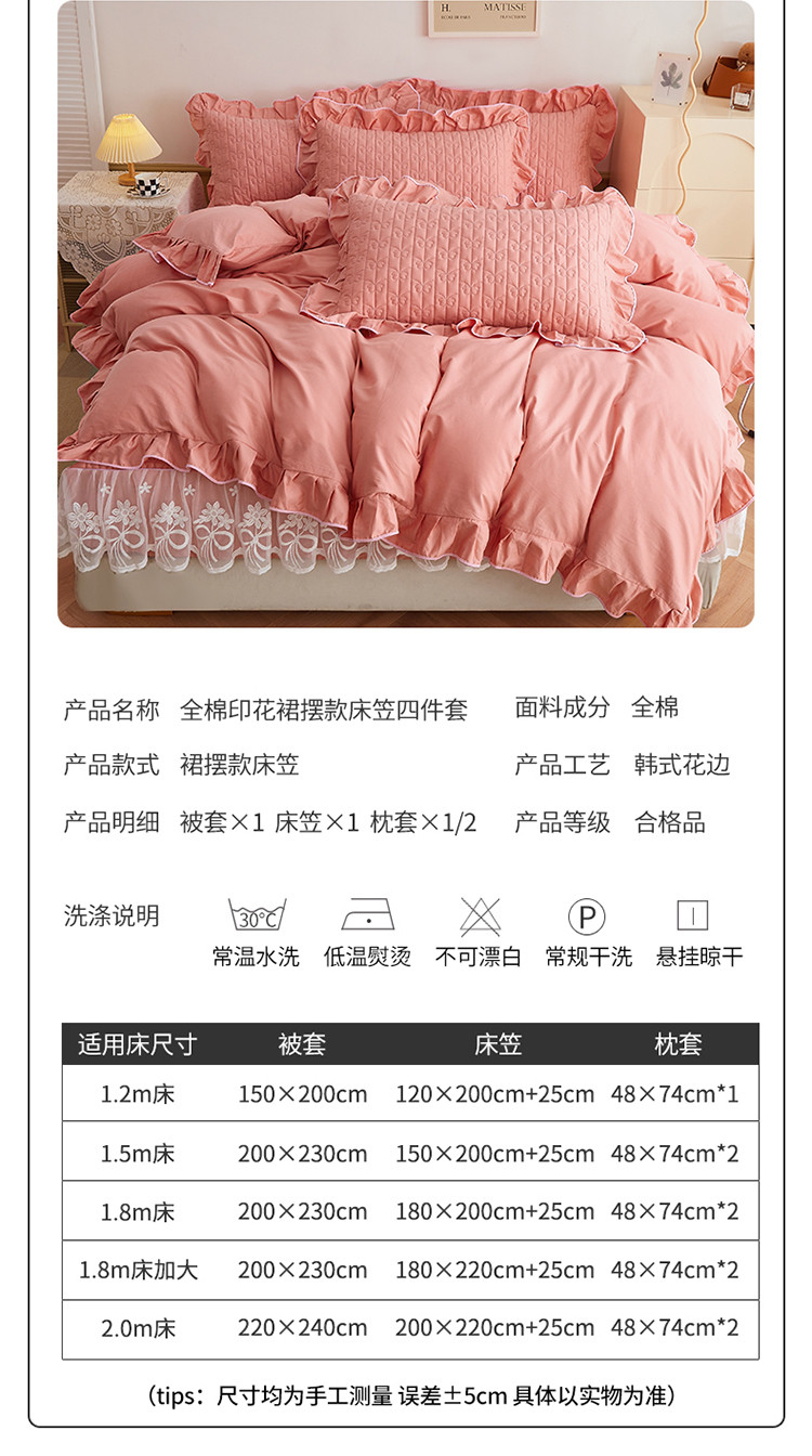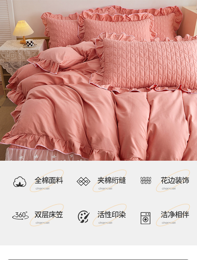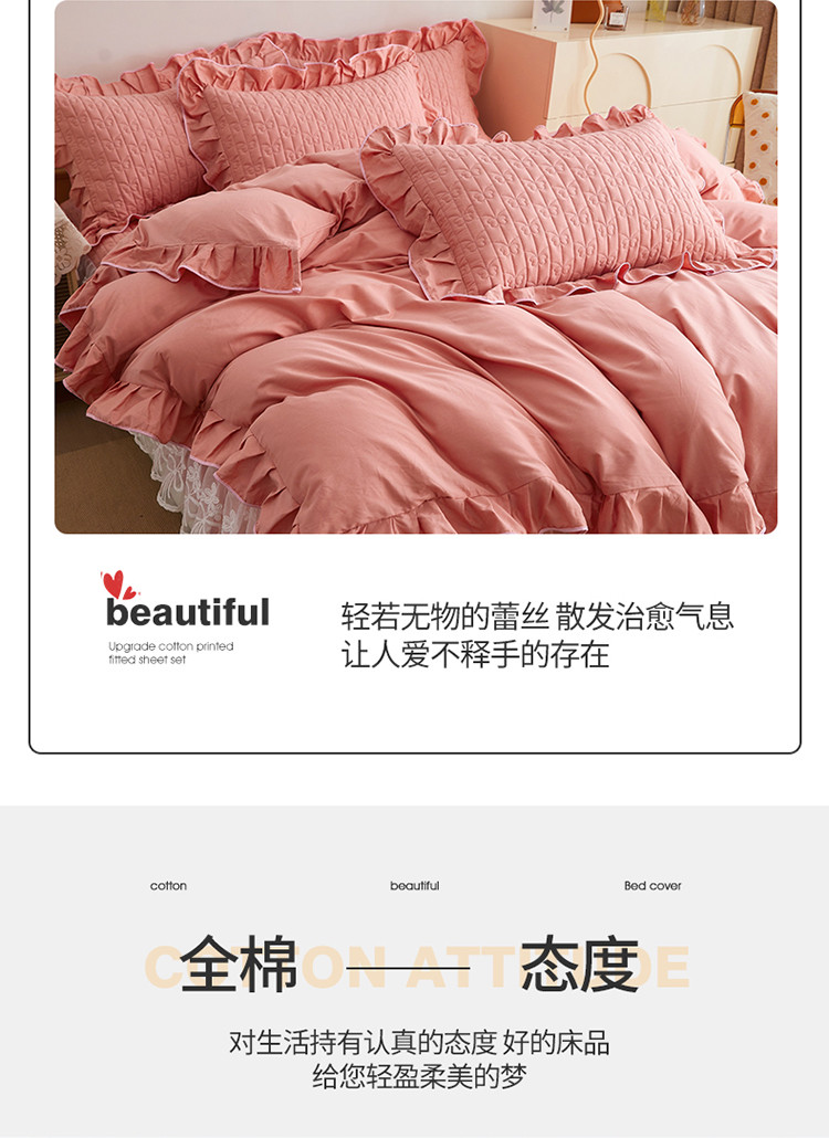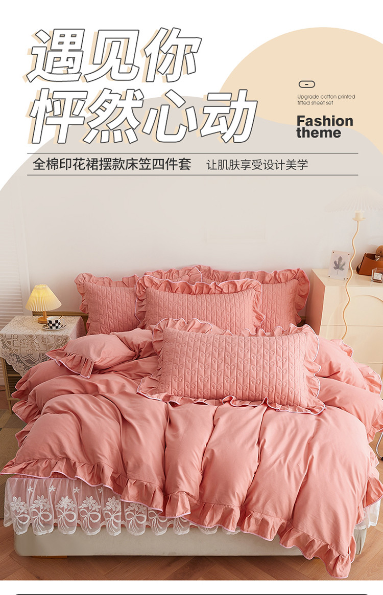 当前位置: 91家纺网 > 商品网购 > 床品套件 > 四件套 > 全棉普通四件套 > 宜凡 2023新款四季款夹棉小清新床笠四件套 春禾集 脂粉