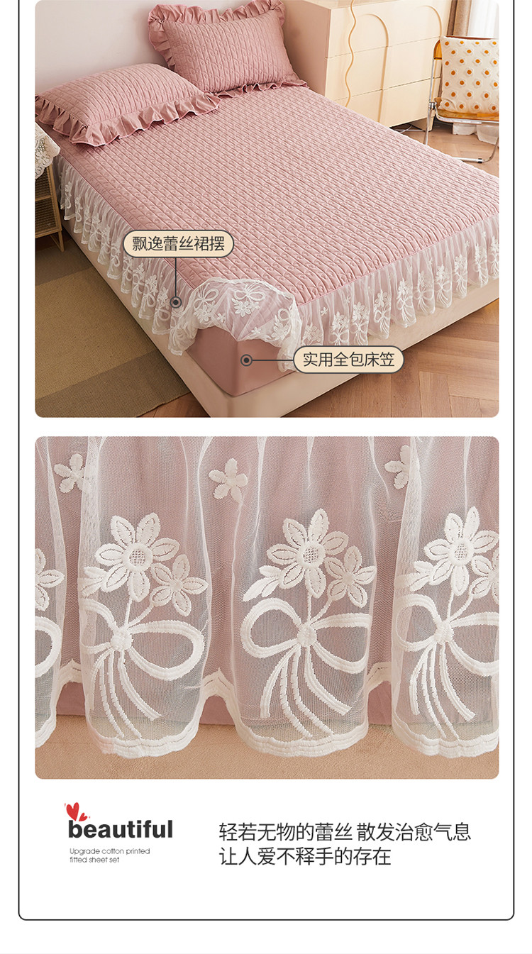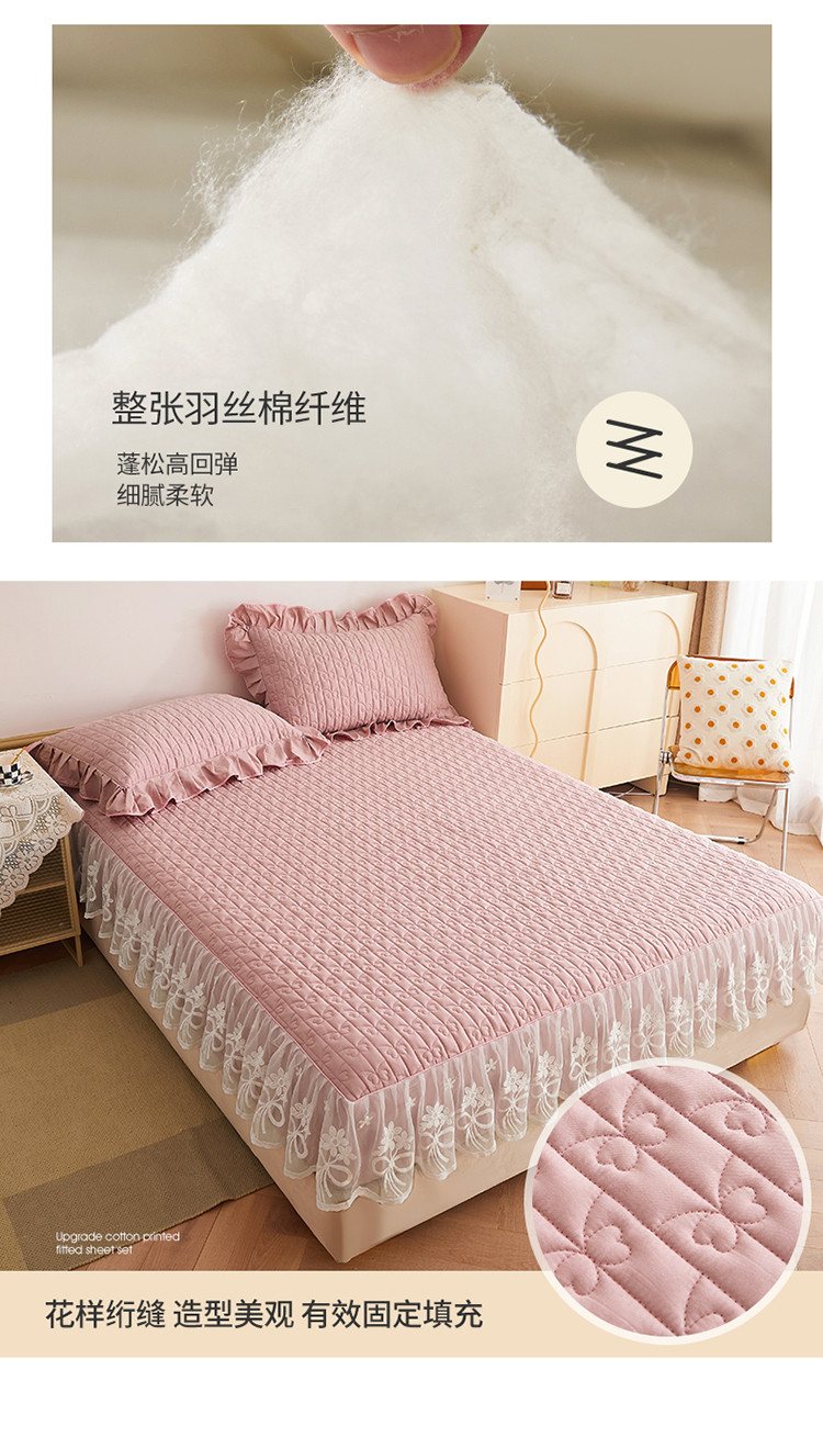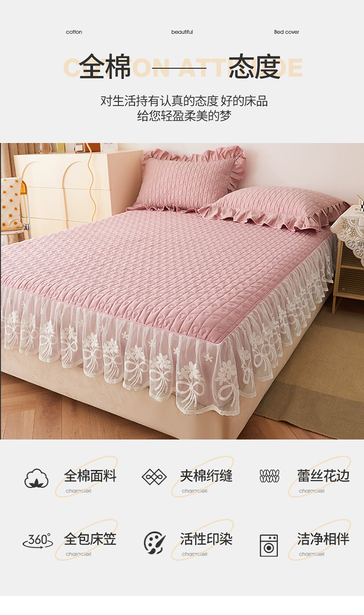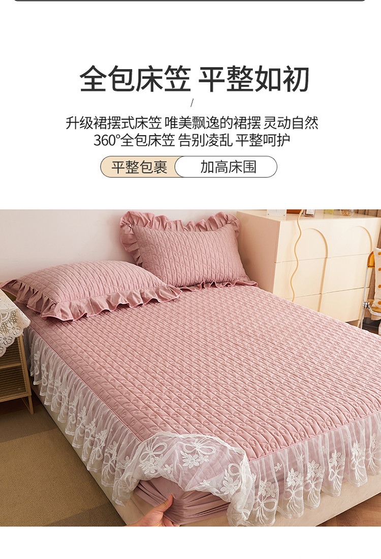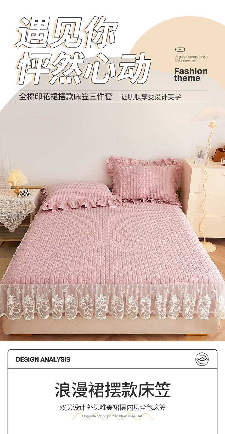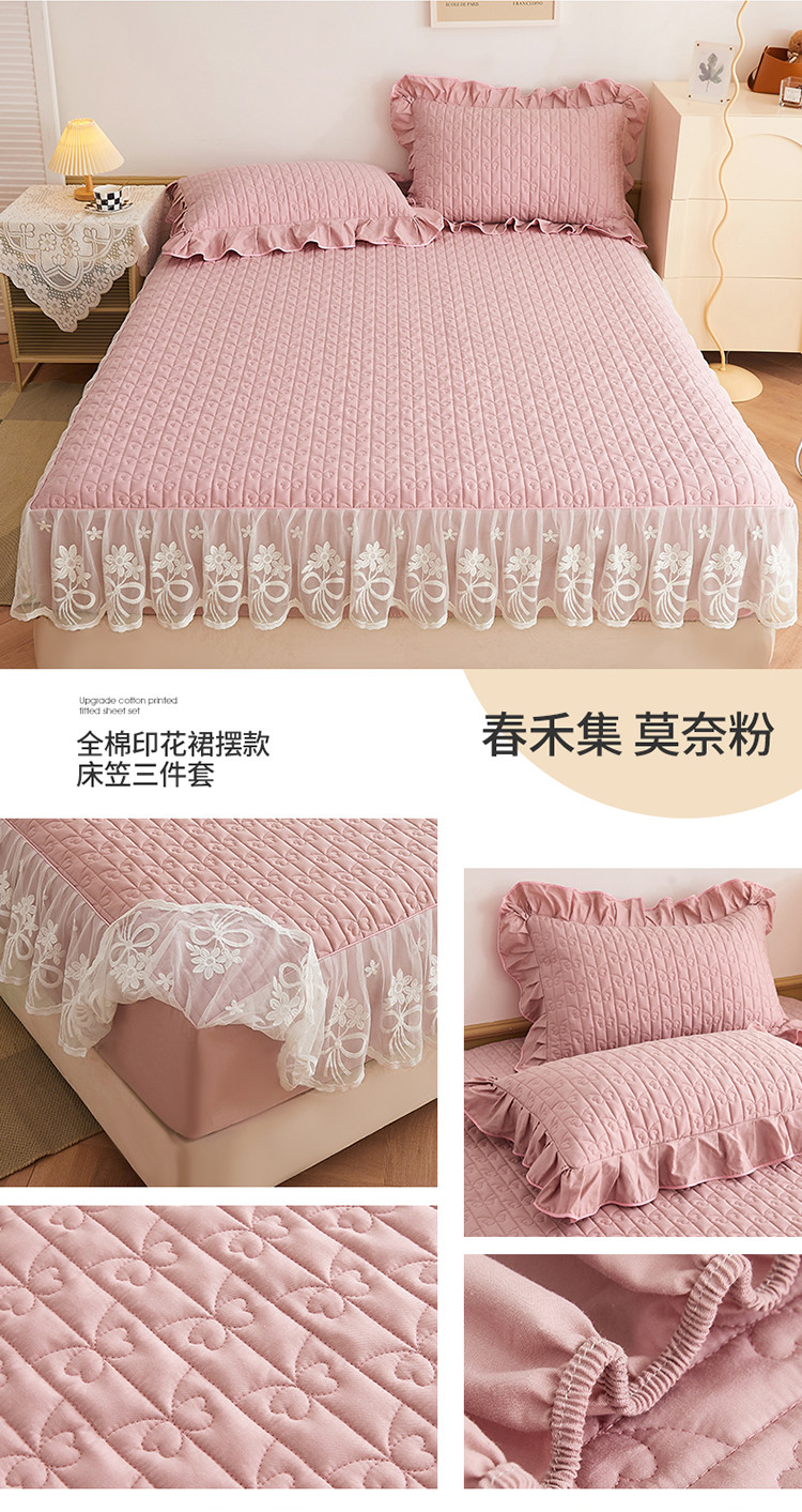 宜凡 2023新款四季款夹棉小清新床笠三件套 春禾集 莫奈粉