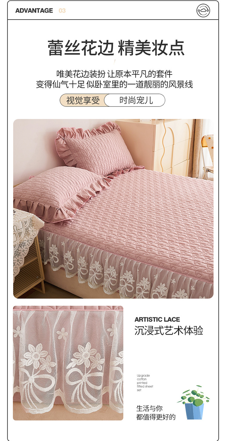 商品名称:宜凡 2023新款四季款夹棉小清新床笠三件套 春禾集 莫奈粉