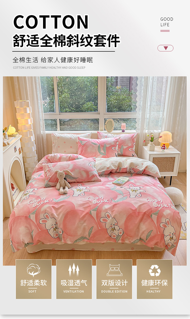 商品名称:金丝鸟 2023新款全棉小清新四件套 蜜桃园子