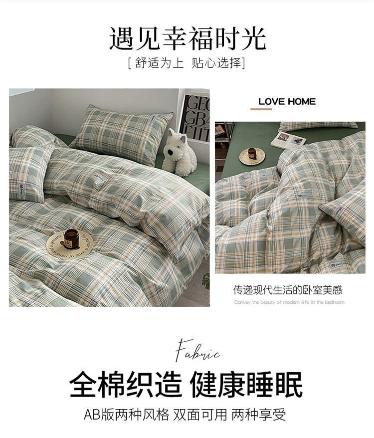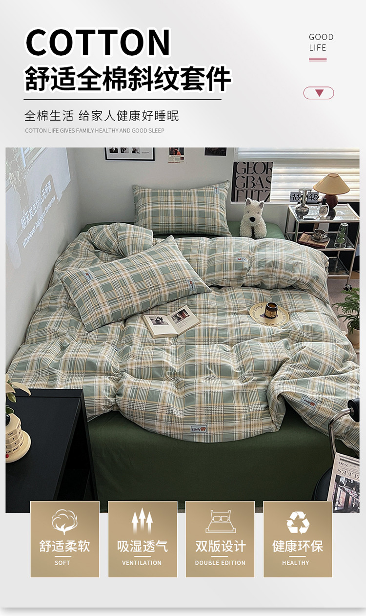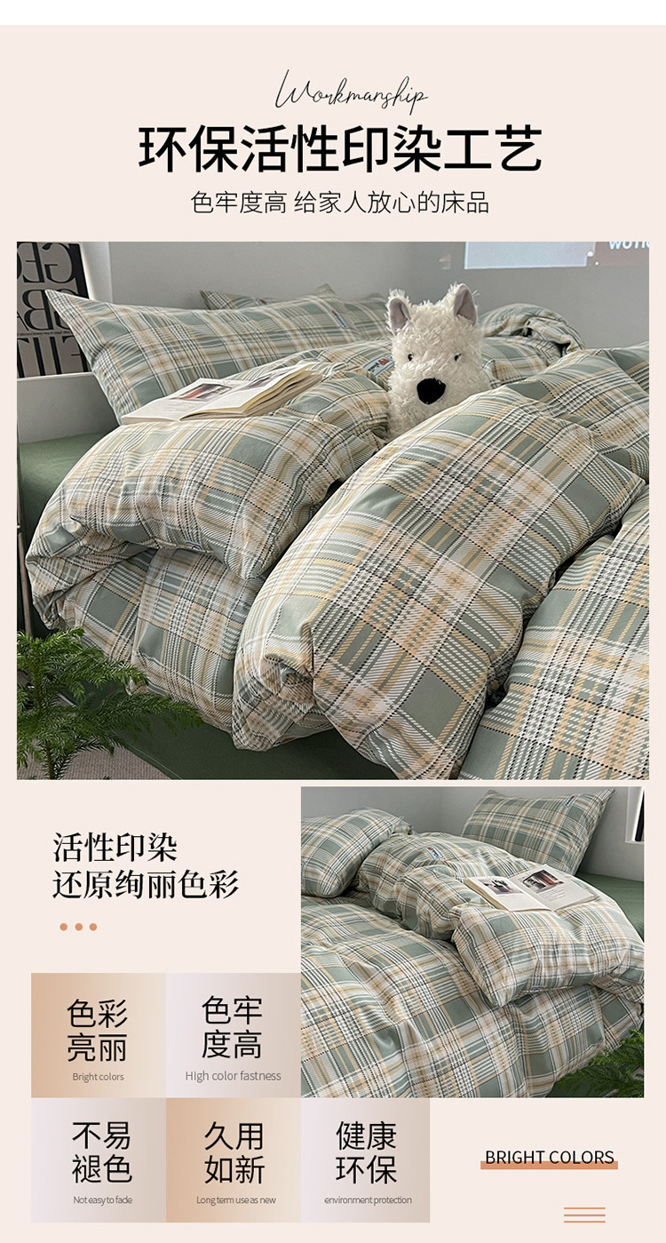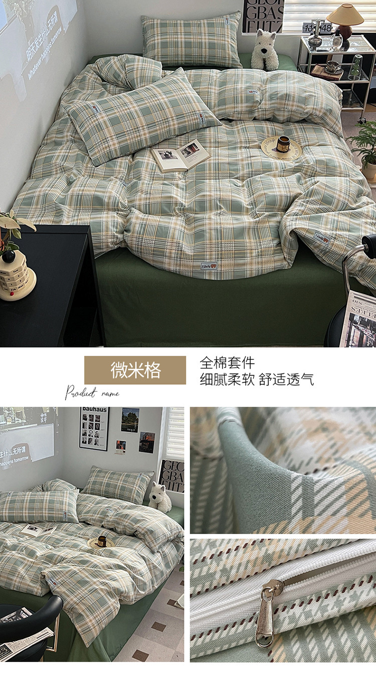 商品名称:金丝鸟家纺 2023新款全棉简约斜纹四件套 微米格