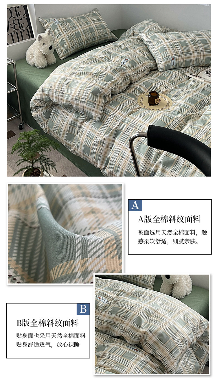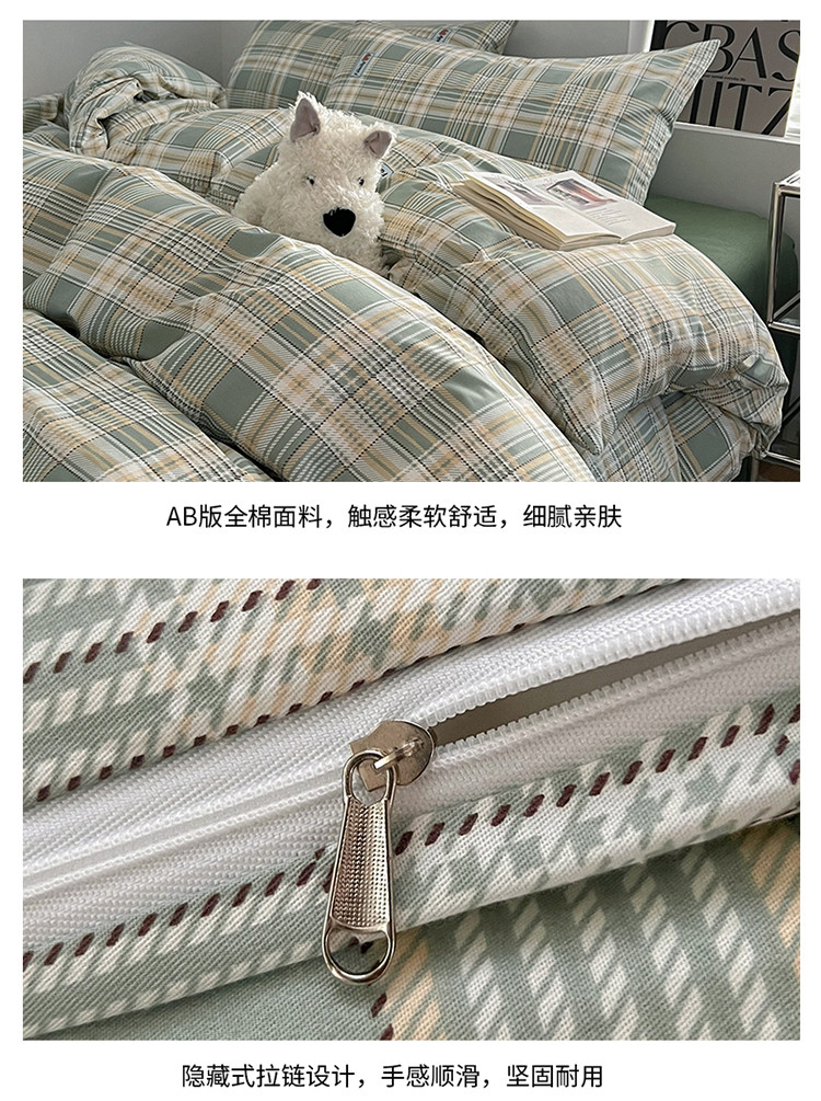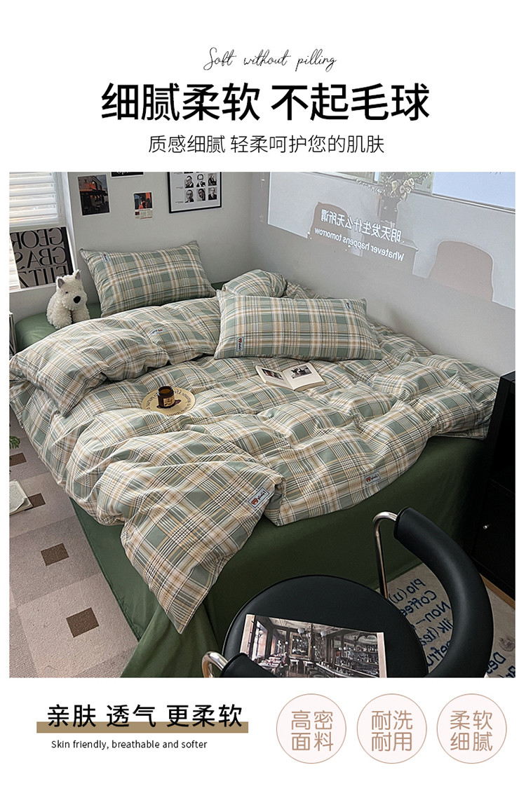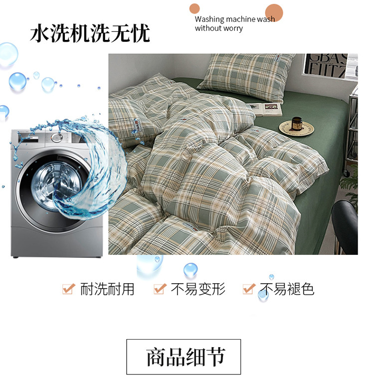 商品名称:金丝鸟家纺 2023新款全棉简约斜纹四件套 微米格