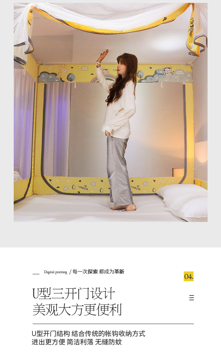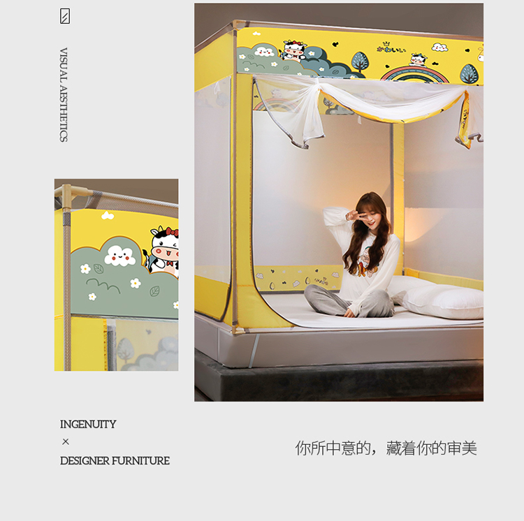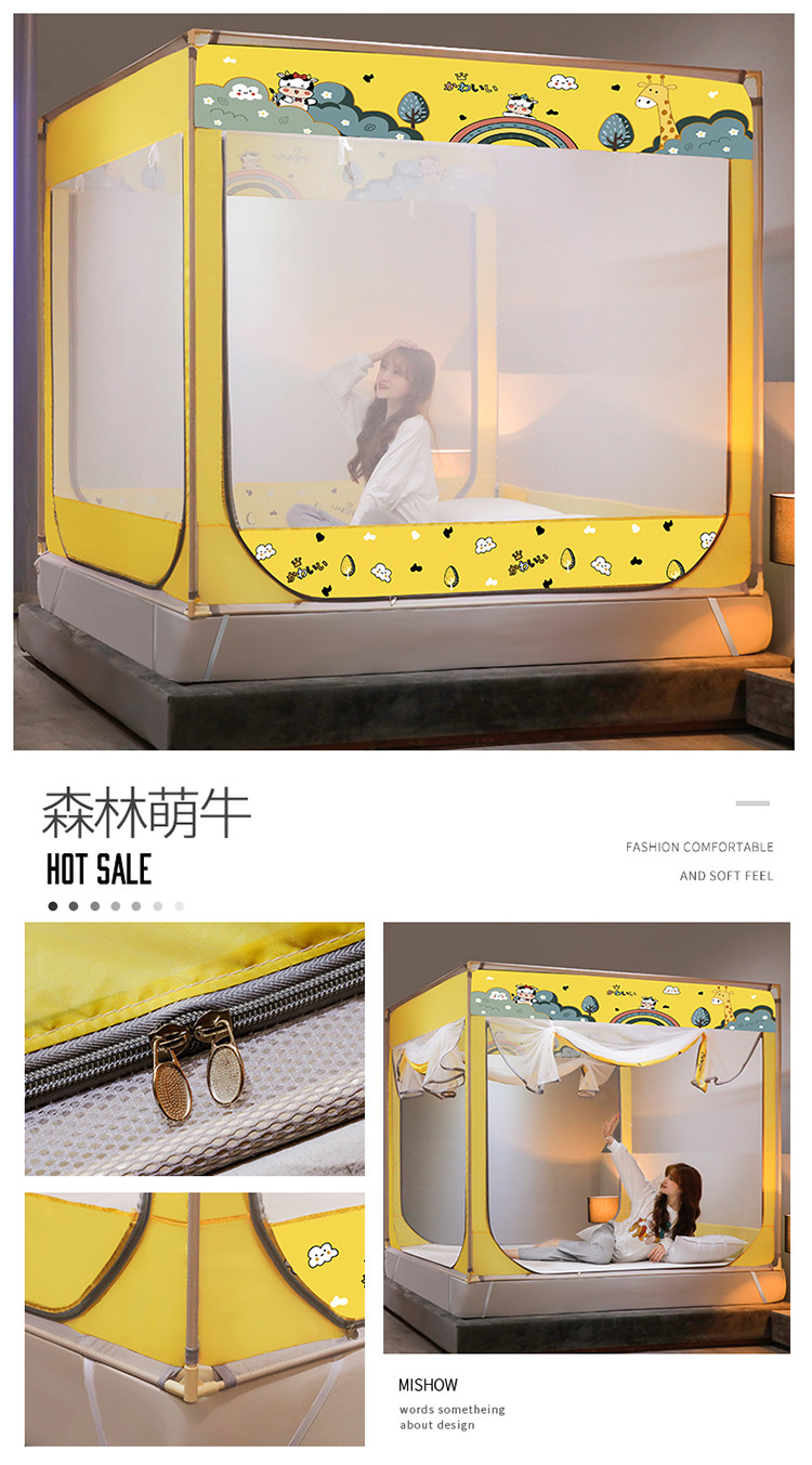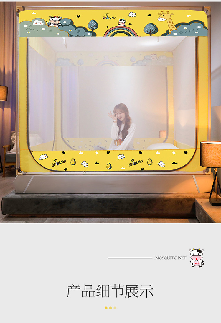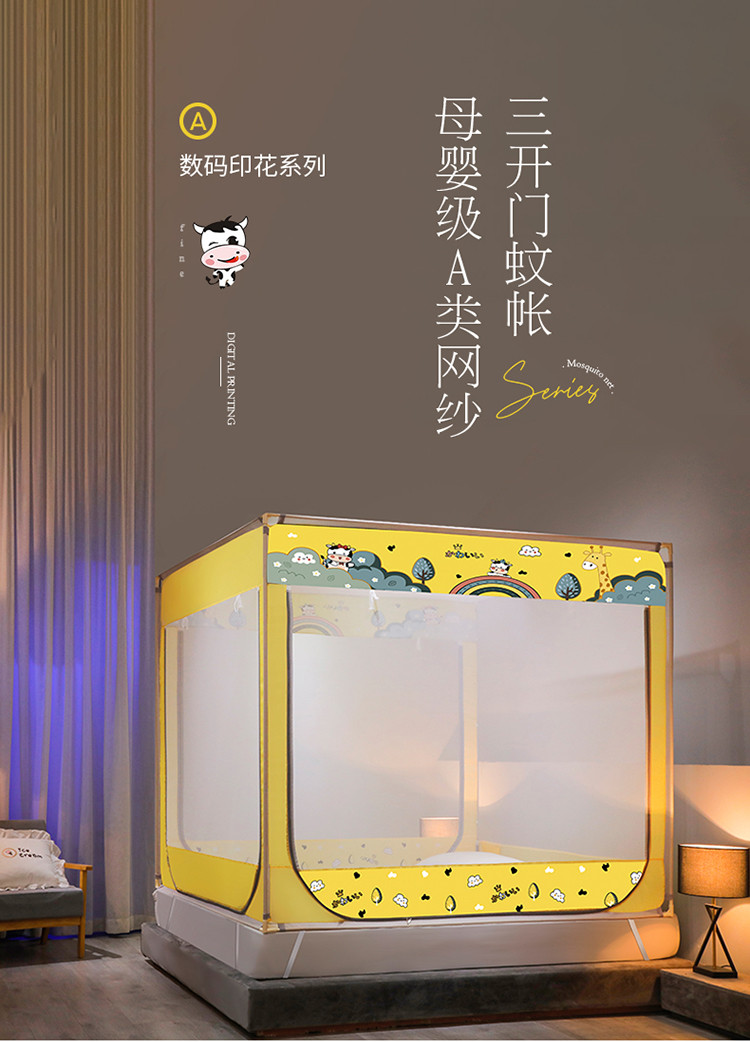 (总)飞轮海蚊帐 2025新款三开门方顶花边防摔遮光蚊帐-Z39,你好蛙,不许动,快乐家族,生活有趣,熊猫宝