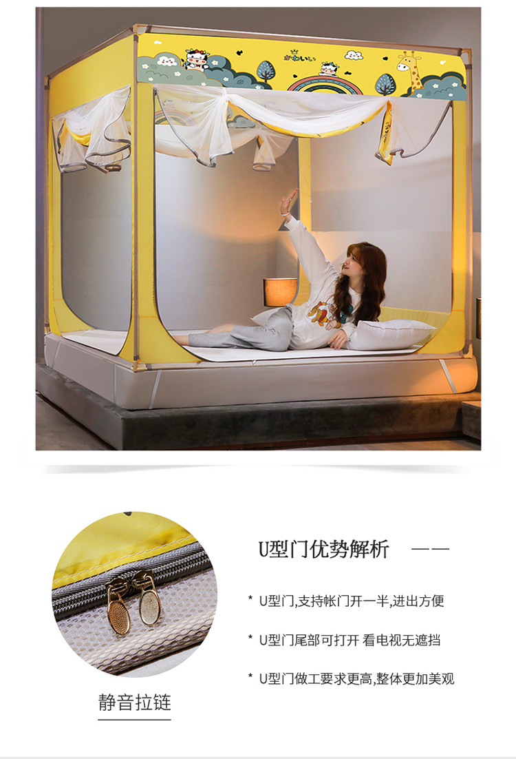 (总)飞轮海蚊帐 2023新款U型三开门遮光坐床蚊帐-Z-75,黛蓝,奶油黄,香槟