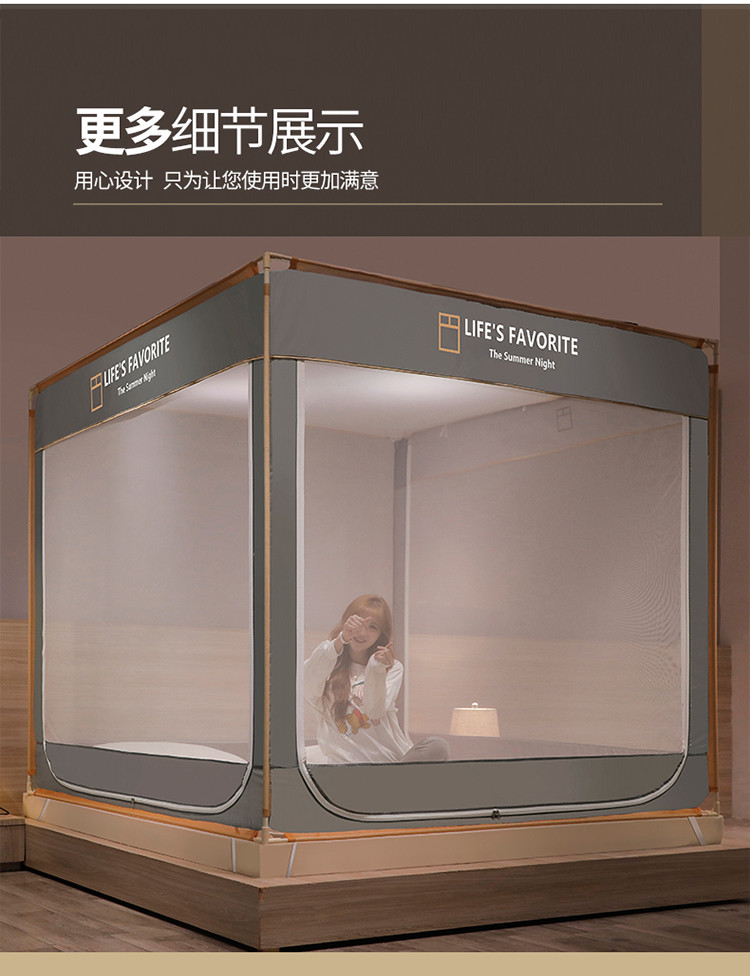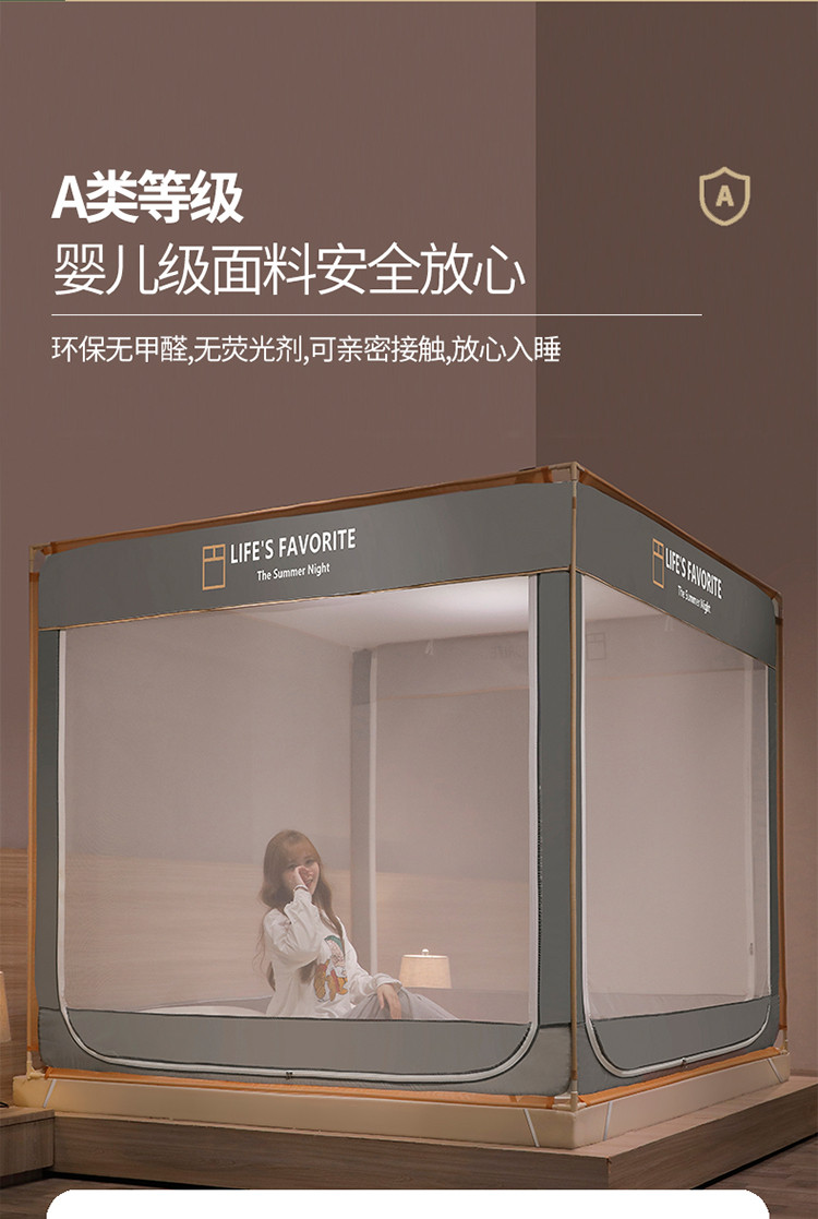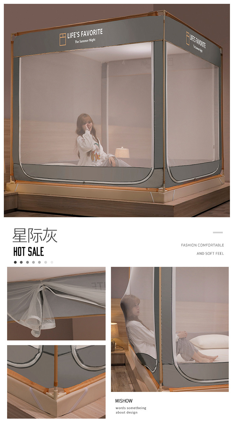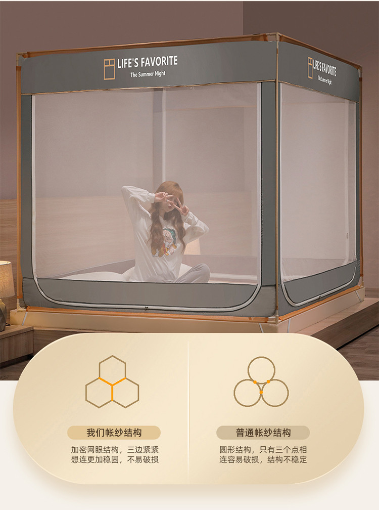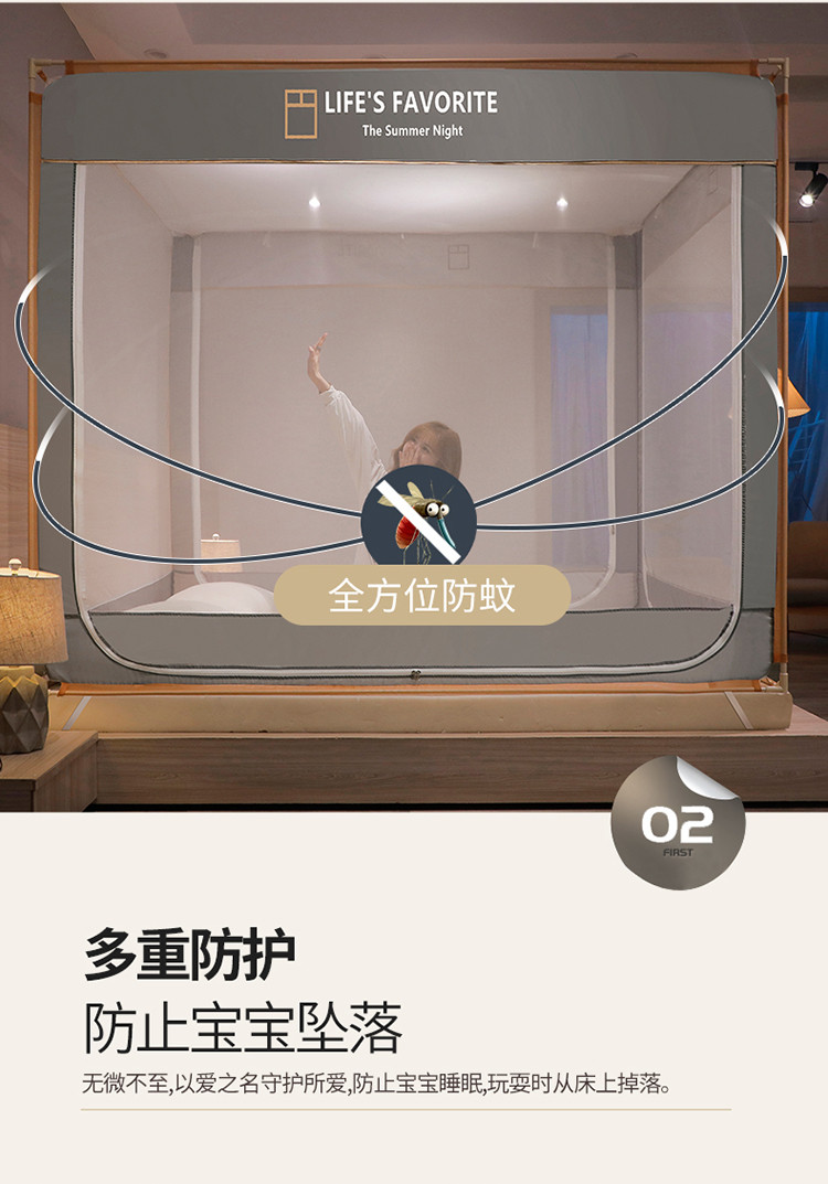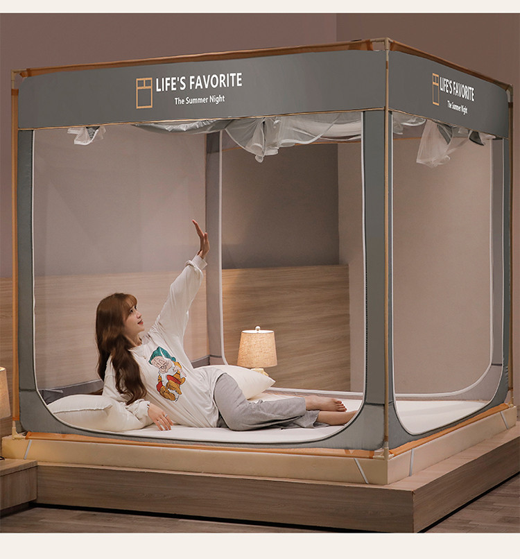 (总)飞轮海蚊帐 2023新款三开门落地遮光蚊帐-L-93,高级灰,芥末绿,奶油黄,香槟