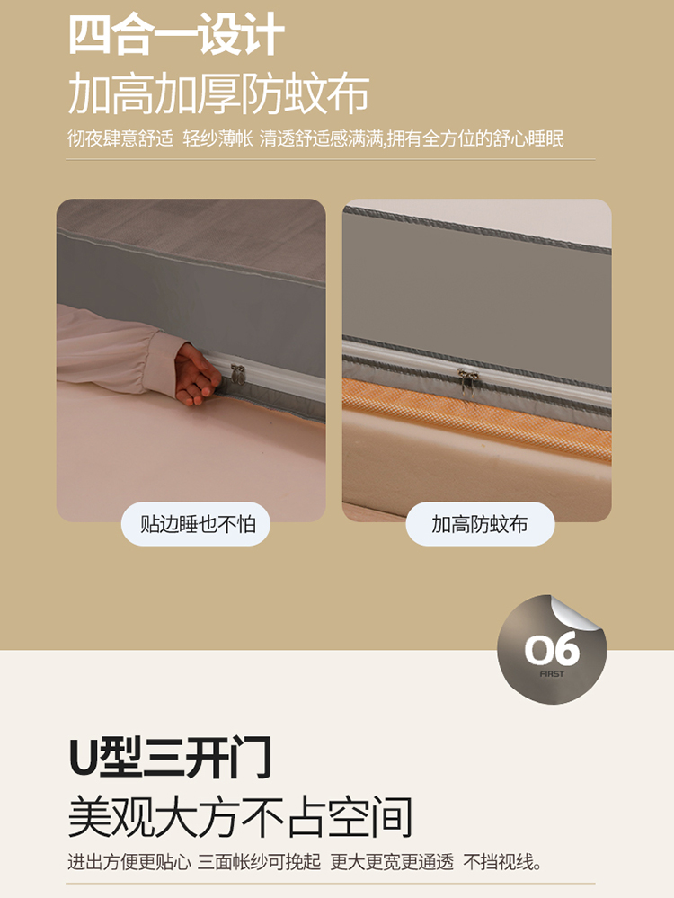 (总)飞轮海蚊帐 2023新款U型三开门遮光坐床蚊帐-Z-75,黛蓝,奶油黄,香槟