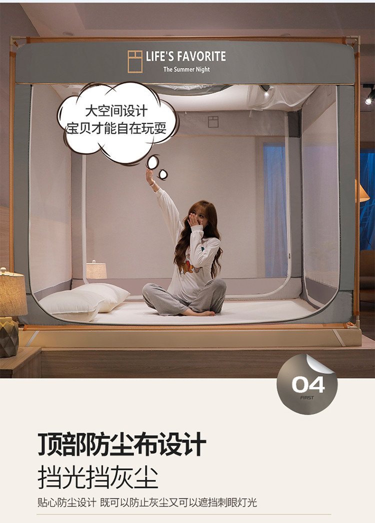 商品名称:飞轮海 2023新款拉链式坐床蚊帐-Z81 星际灰