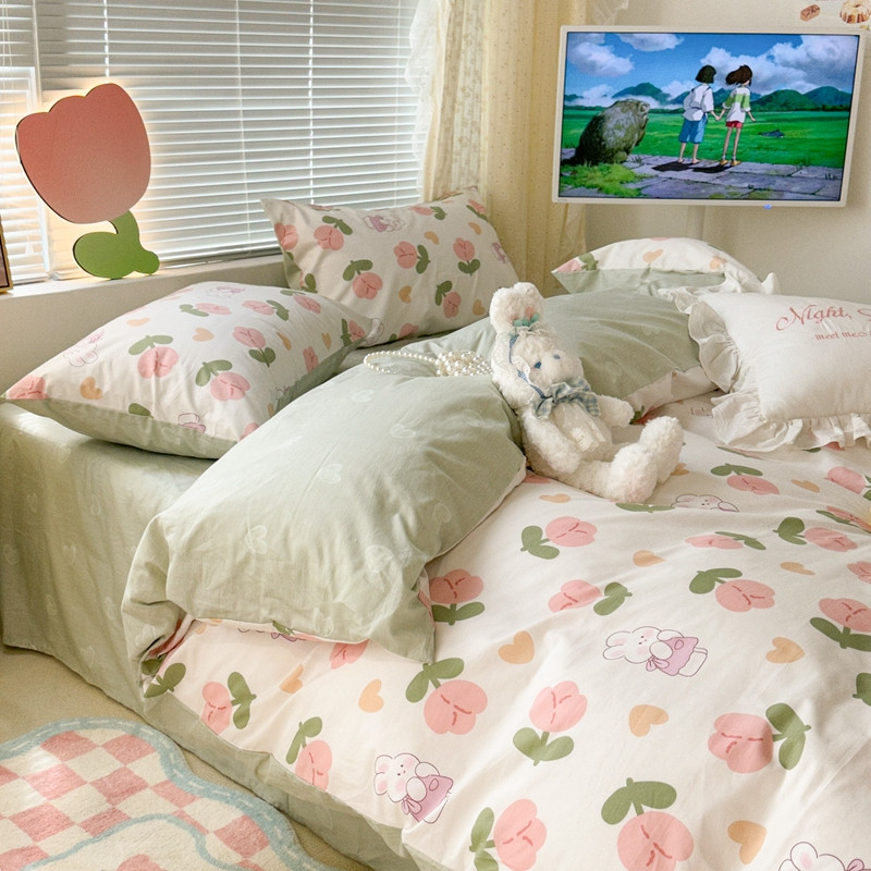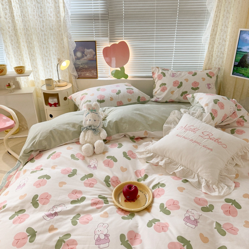 商品名称:昔可 2023新款全棉少女心系列四件套 爱心粉郁金安妮