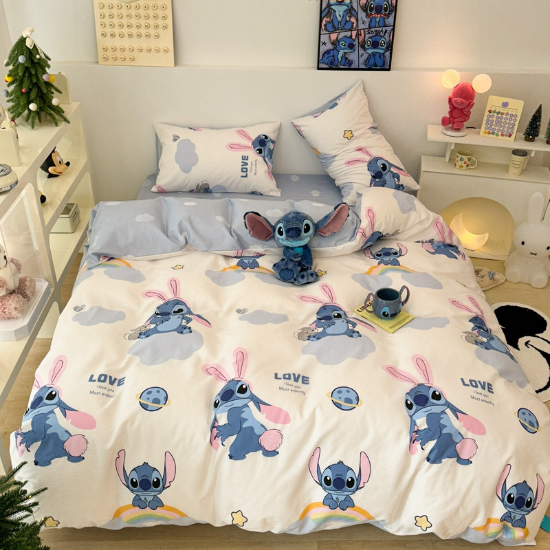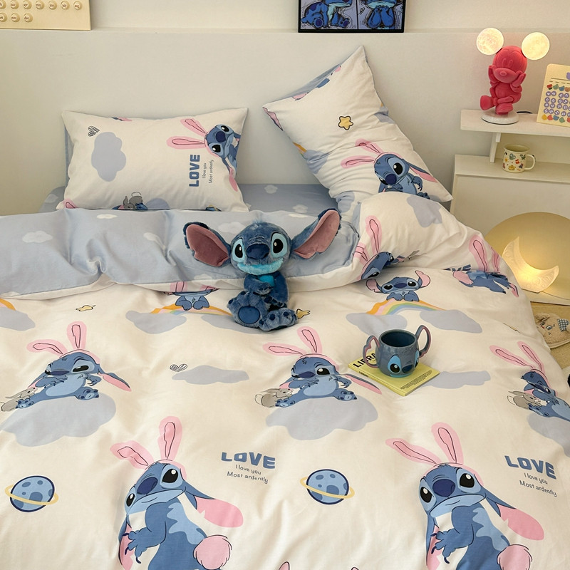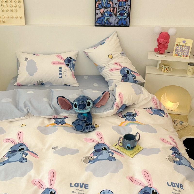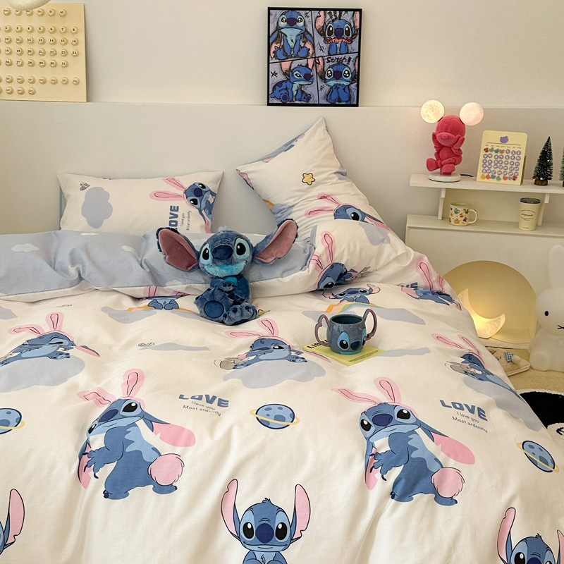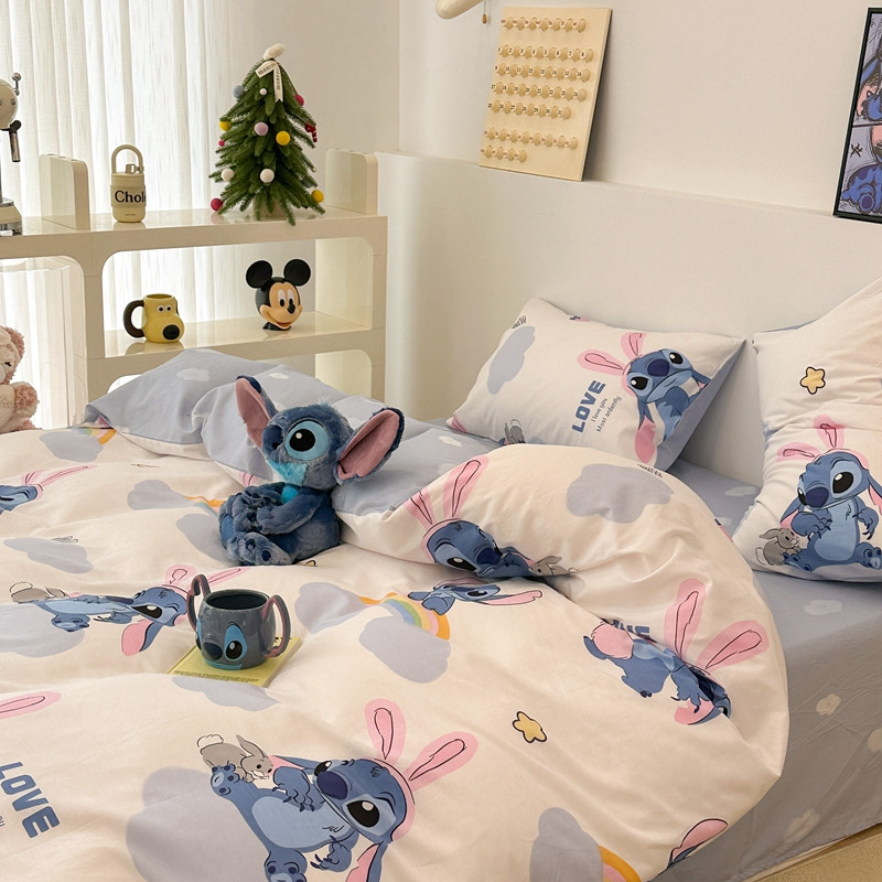 昔可家纺 2023新款迪士尼系列全棉四件套 粉耳朵史迪奇