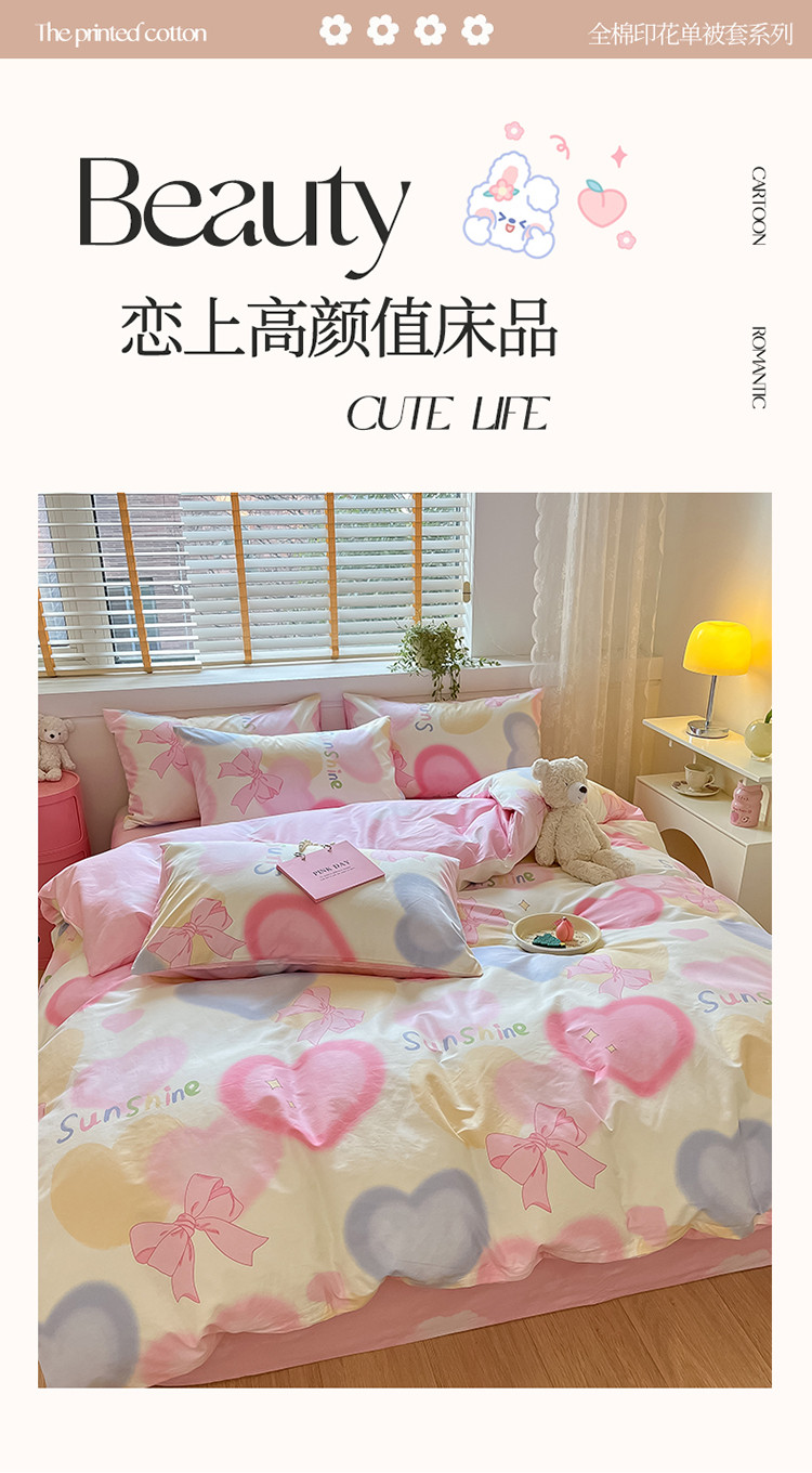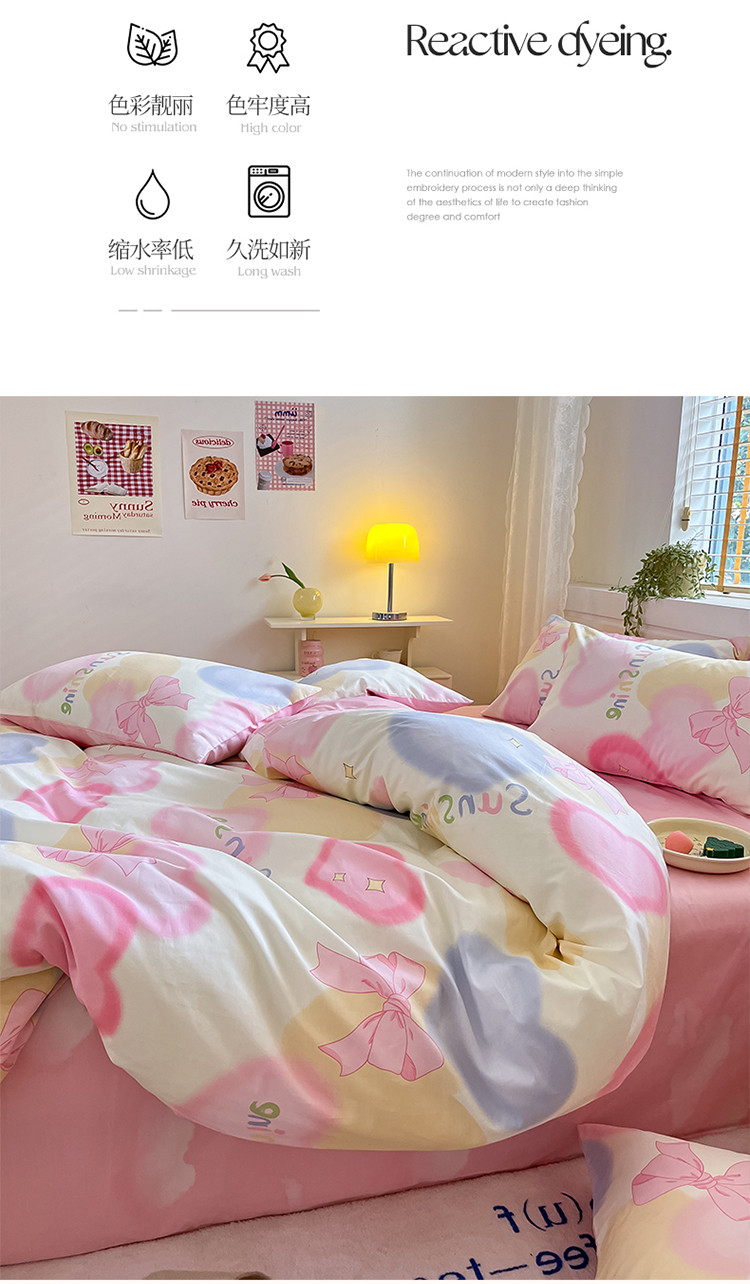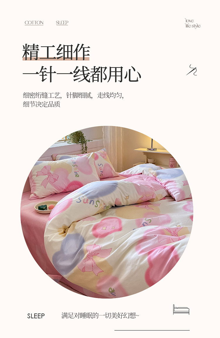 (总)蓝邻家纺 2024新款小清新印花全棉四件套学生宿舍三件套,茶园兔,风翩,机灵兔熊,可妮露,藤蔓兔,筱薇