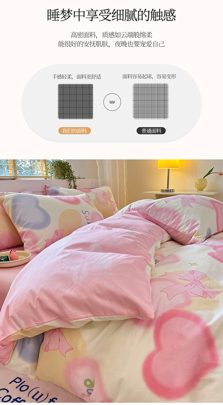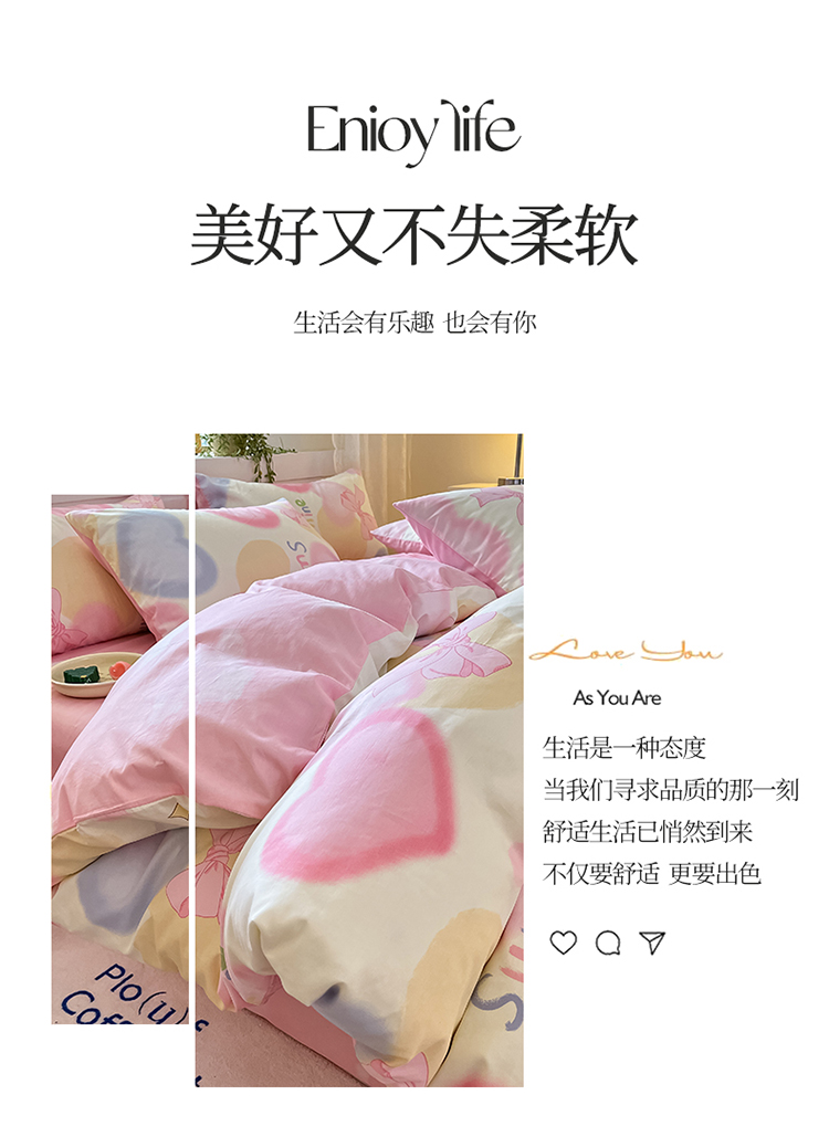 (总)蓝邻家纺 2025新款全棉纯棉磨毛简约系列四件套,白桃麻薯,冰海蓝,豆沙,蓝莓,奶油黄,浅灰,青绿,清新绿,水蓝,水云蓝,桃花粉