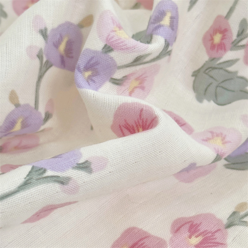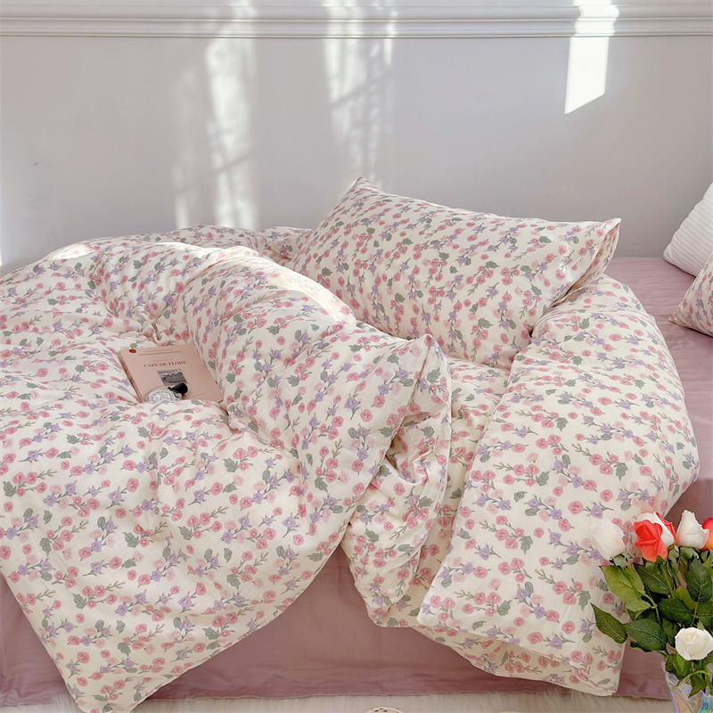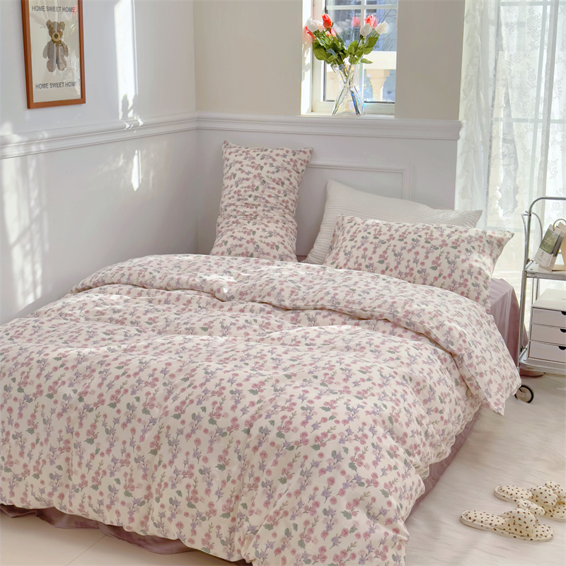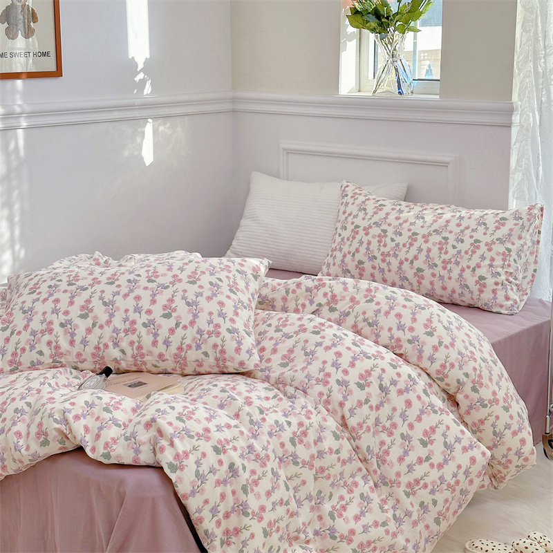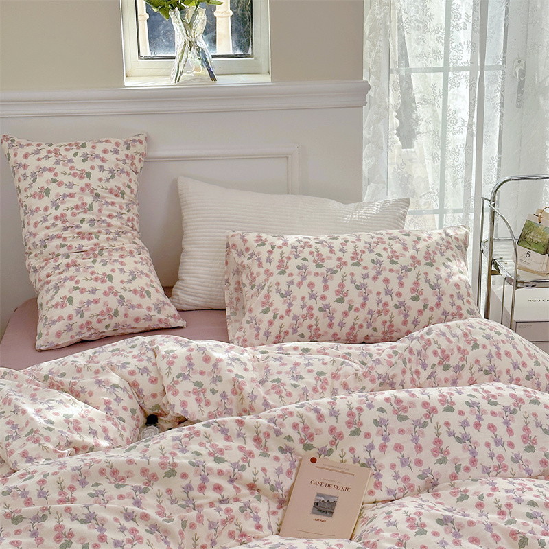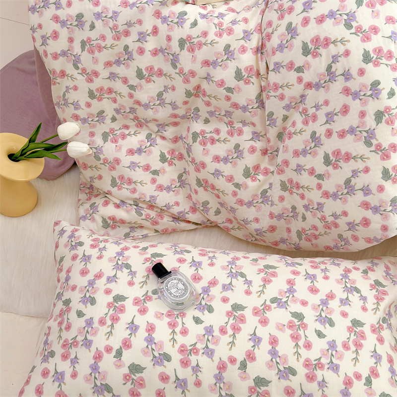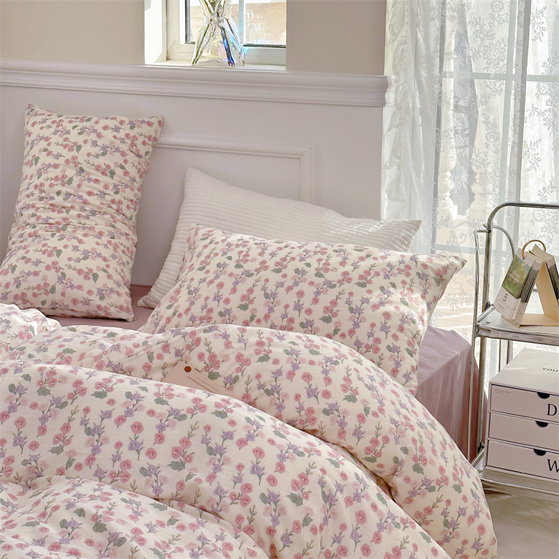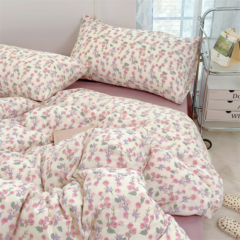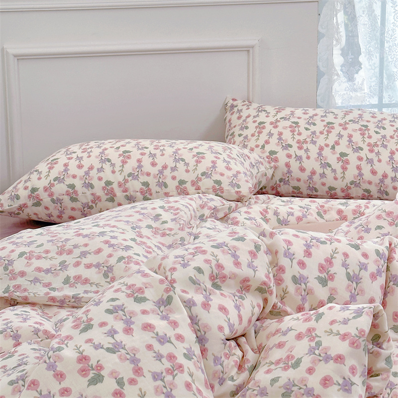 源启生活 新原创A类双层纱布全棉印花四件套纯棉三件套紫色花香
