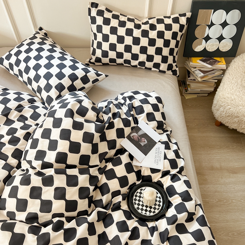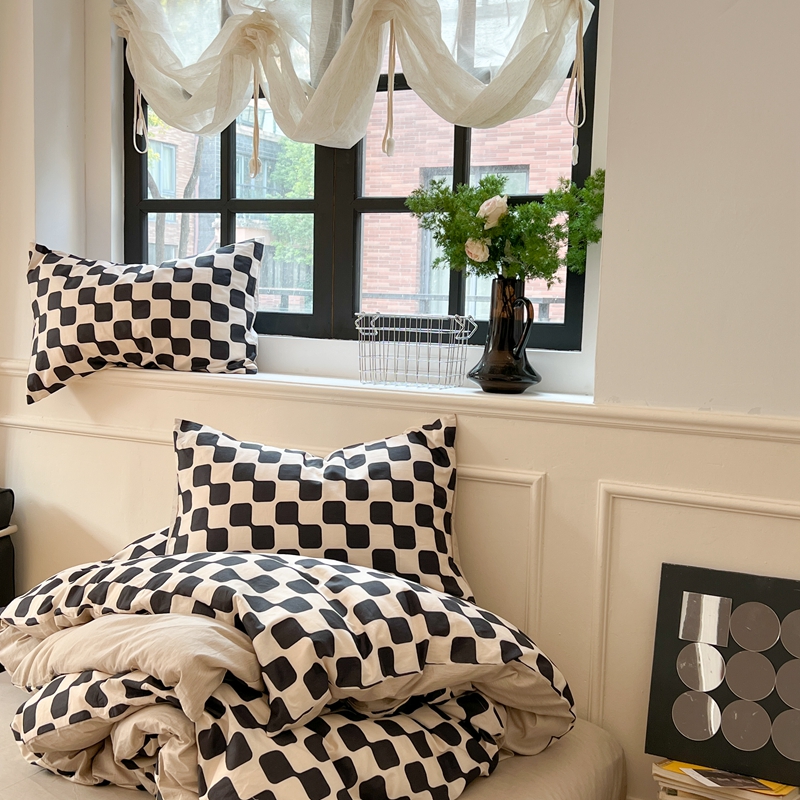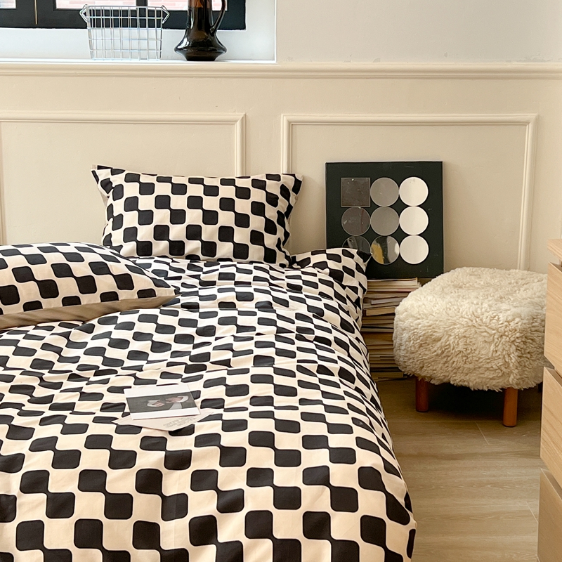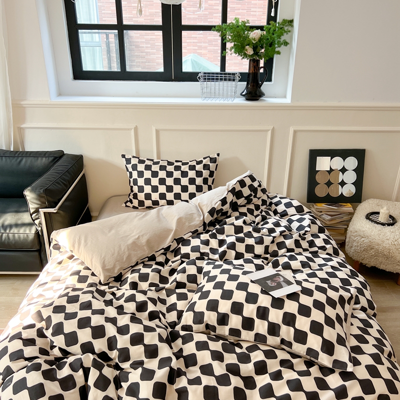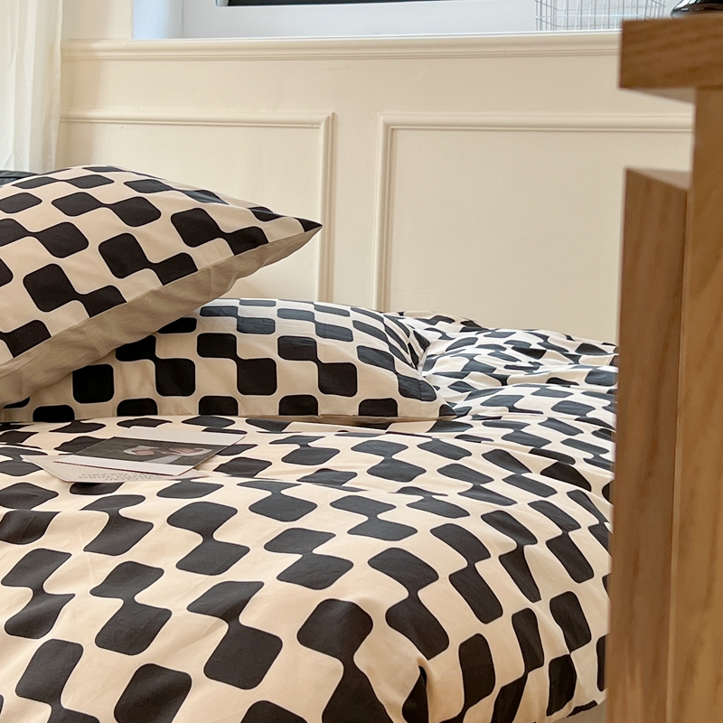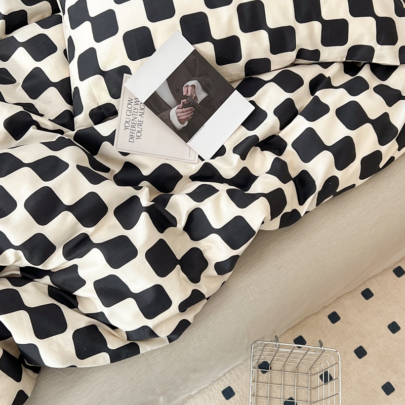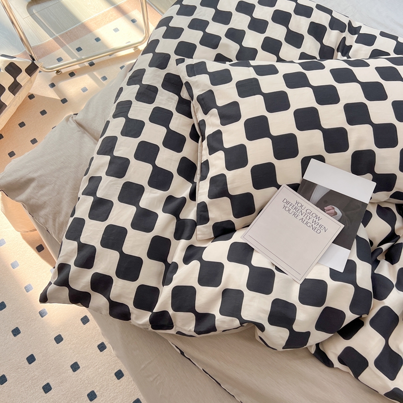 商品名称:时年 2023新款全棉四件套热爱生活系列第一期 黑米格