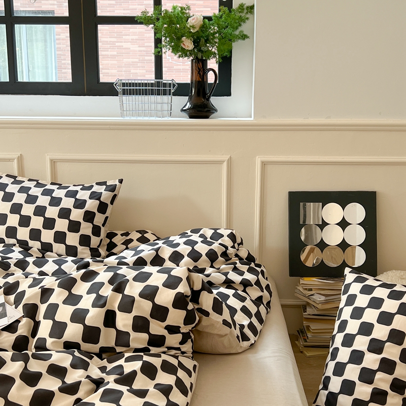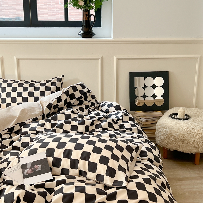 时年 2023新款全棉四件套热爱生活系列第一期 黑米格