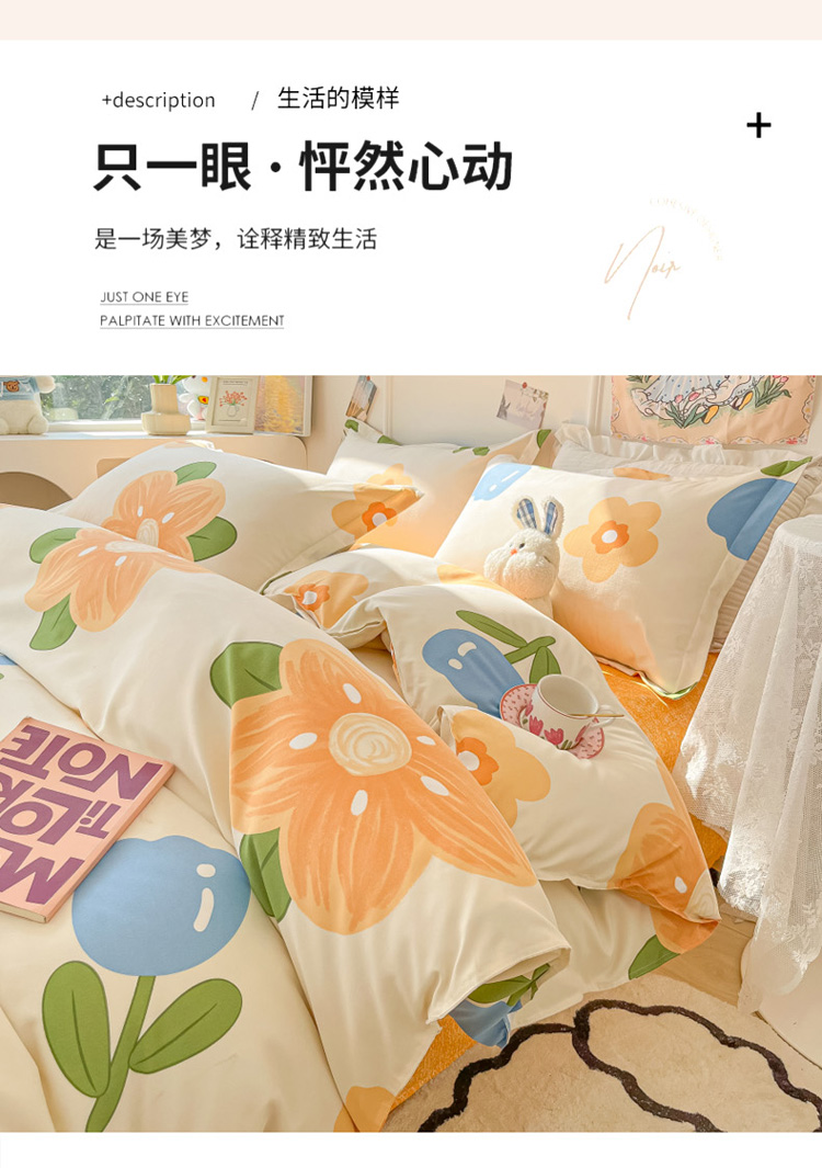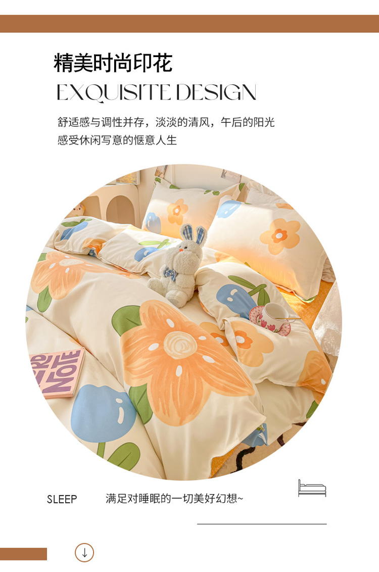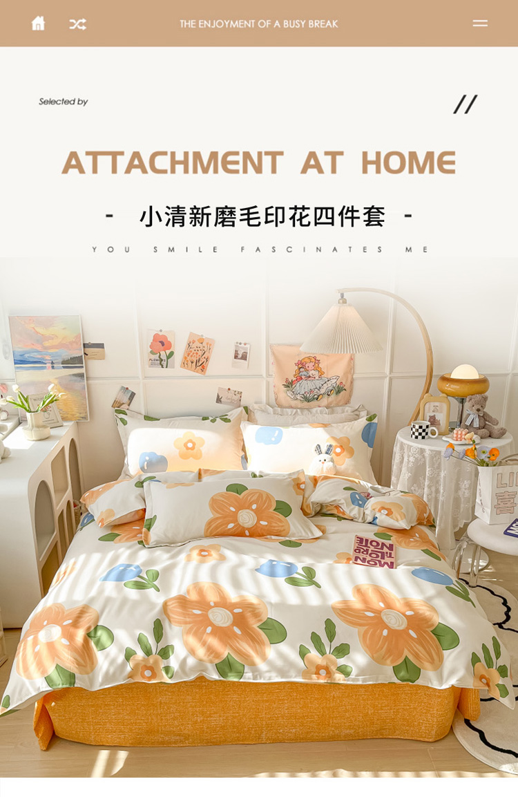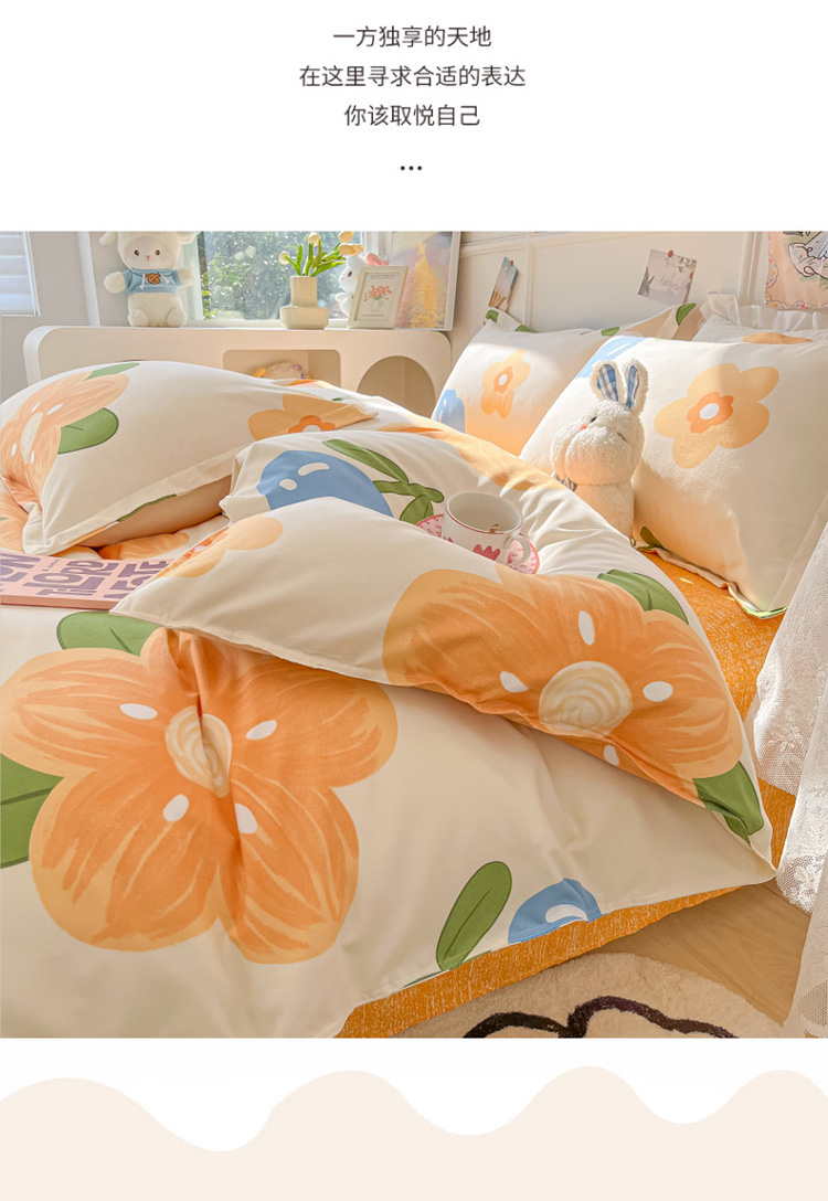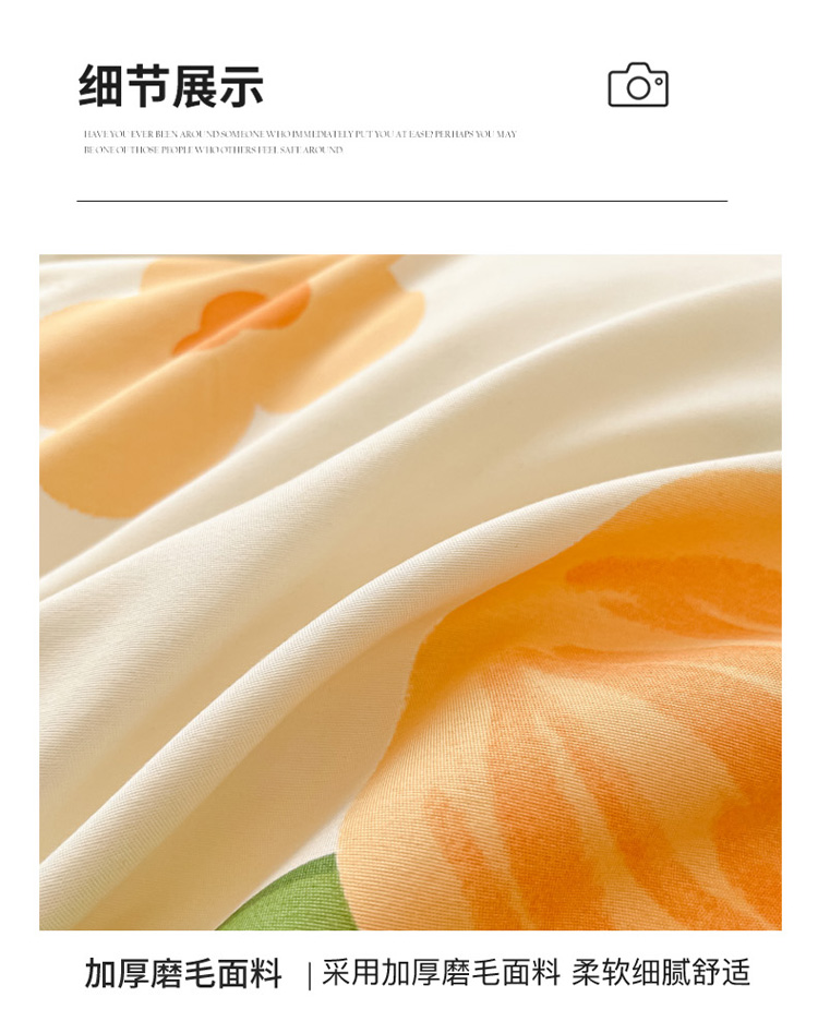 商品名称:花伞家居 2024直播网销斜纹加厚磨毛印花植物羊绒四件套 初夏橘