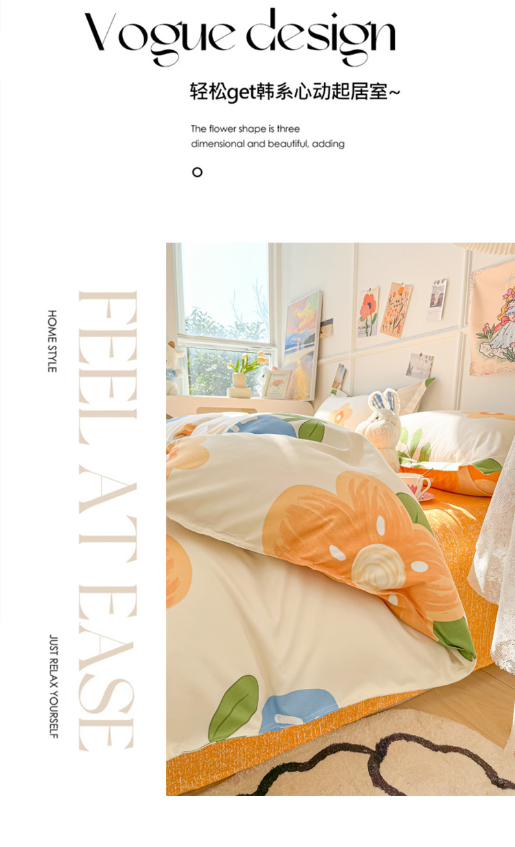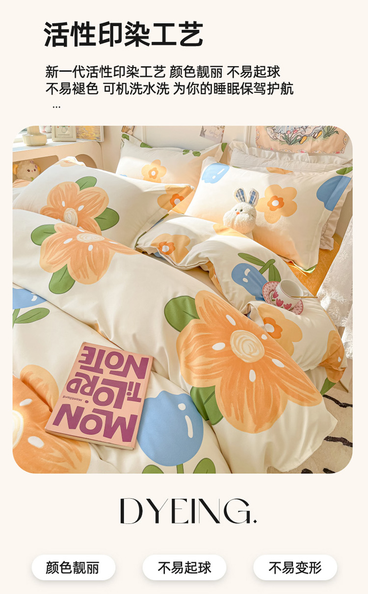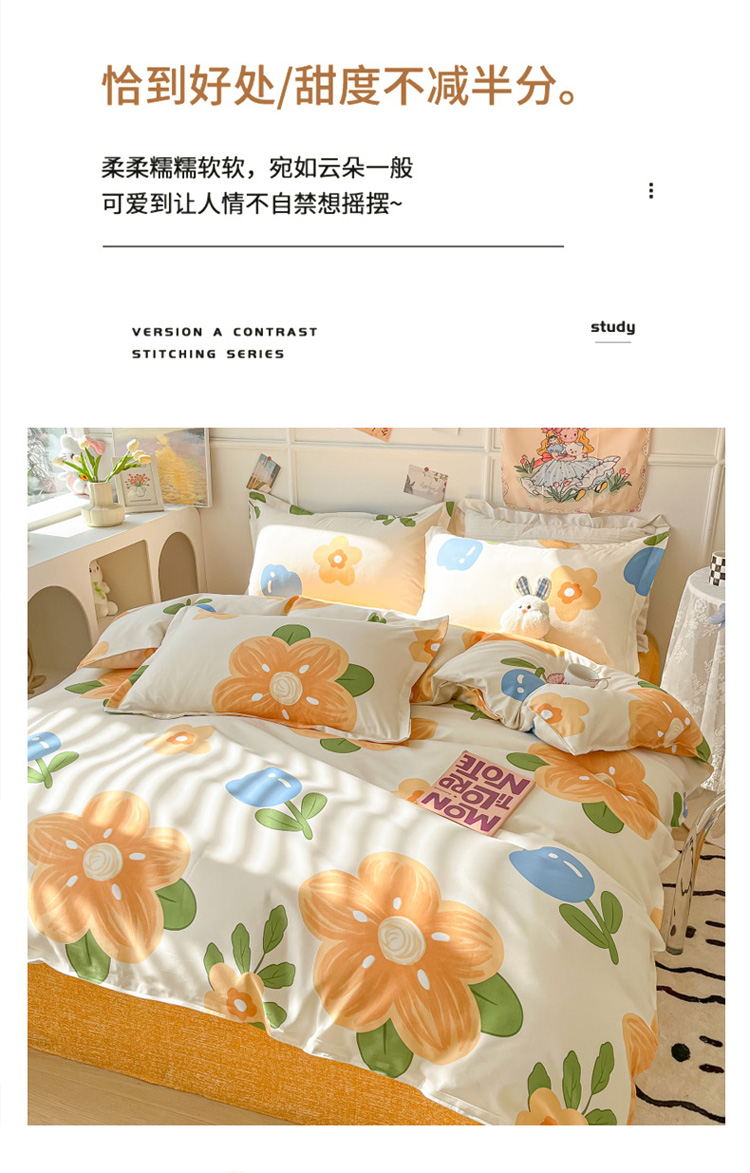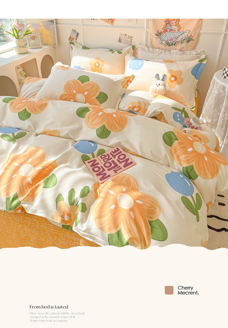 商品名称:花伞家居 2024直播网销斜纹加厚磨毛印花植物羊绒四件套 初夏橘