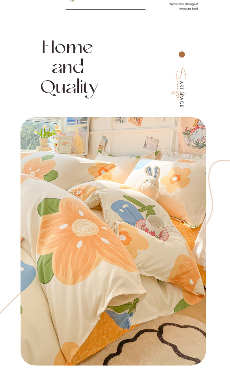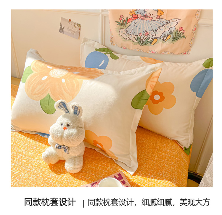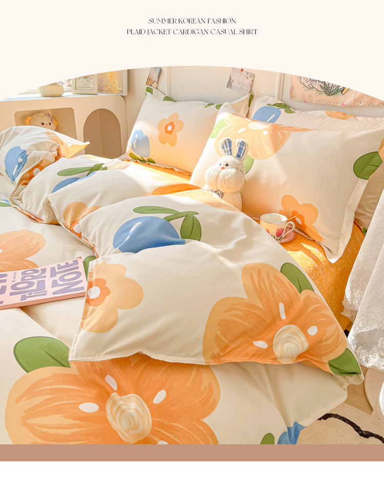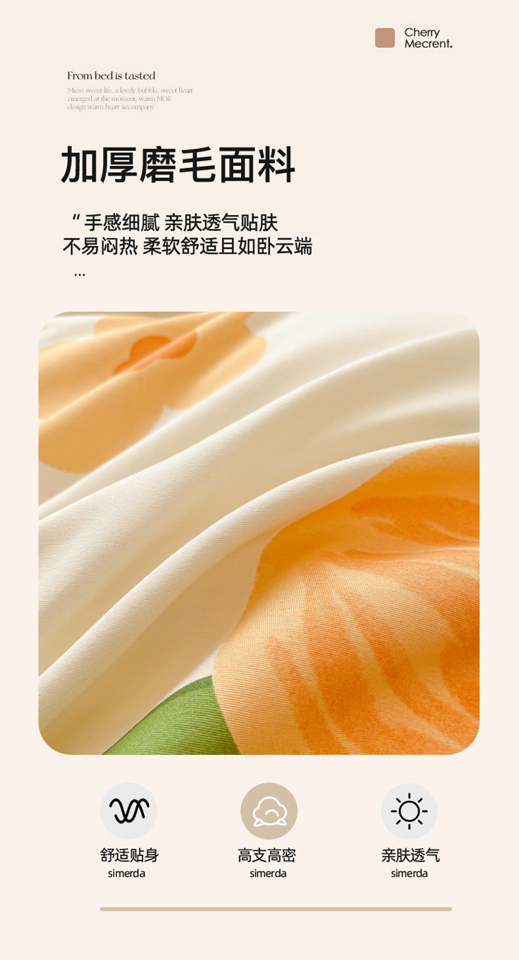 花伞家居 2024直播网销斜纹加厚磨毛印花植物羊绒四件套 初夏橘